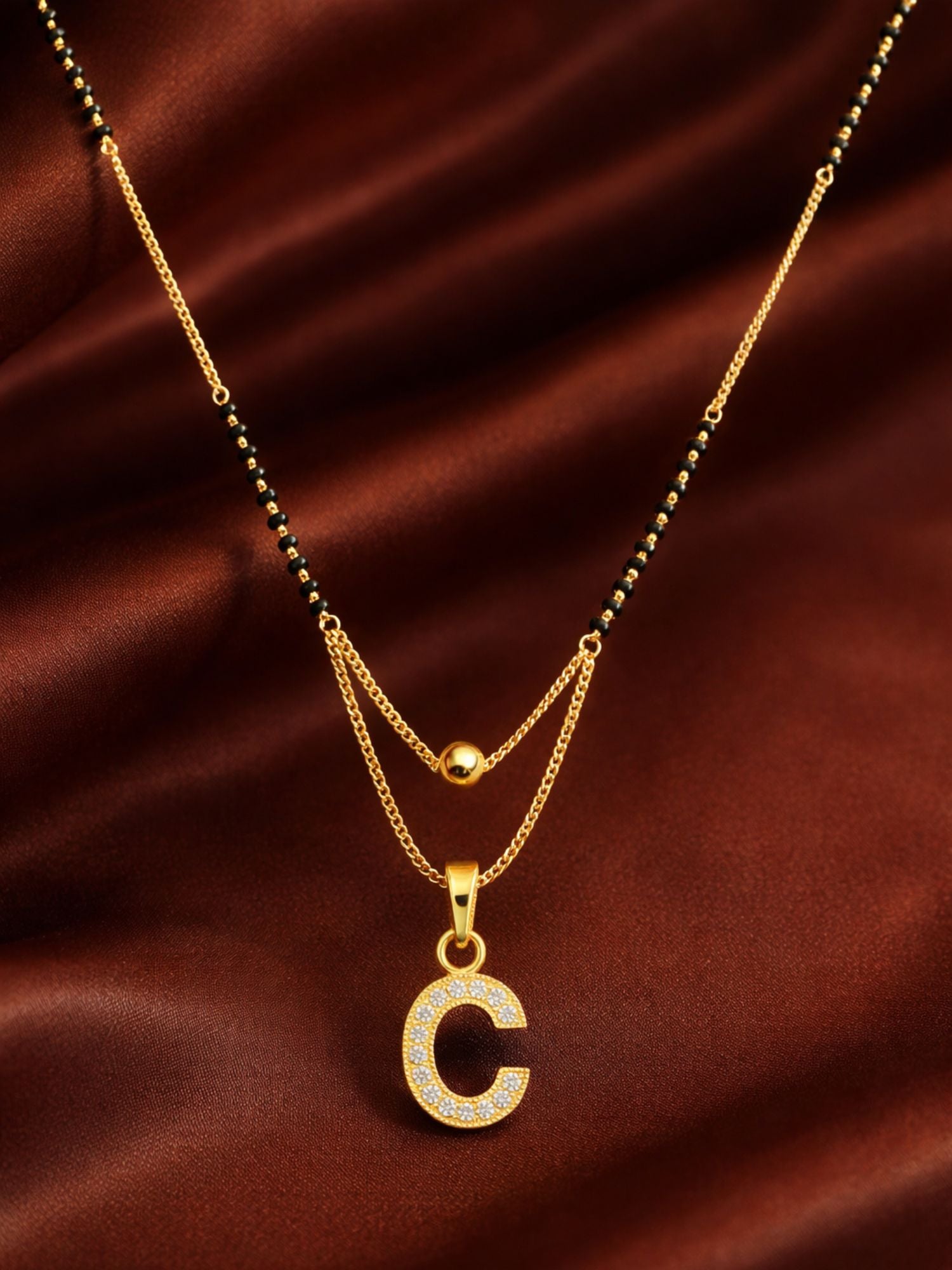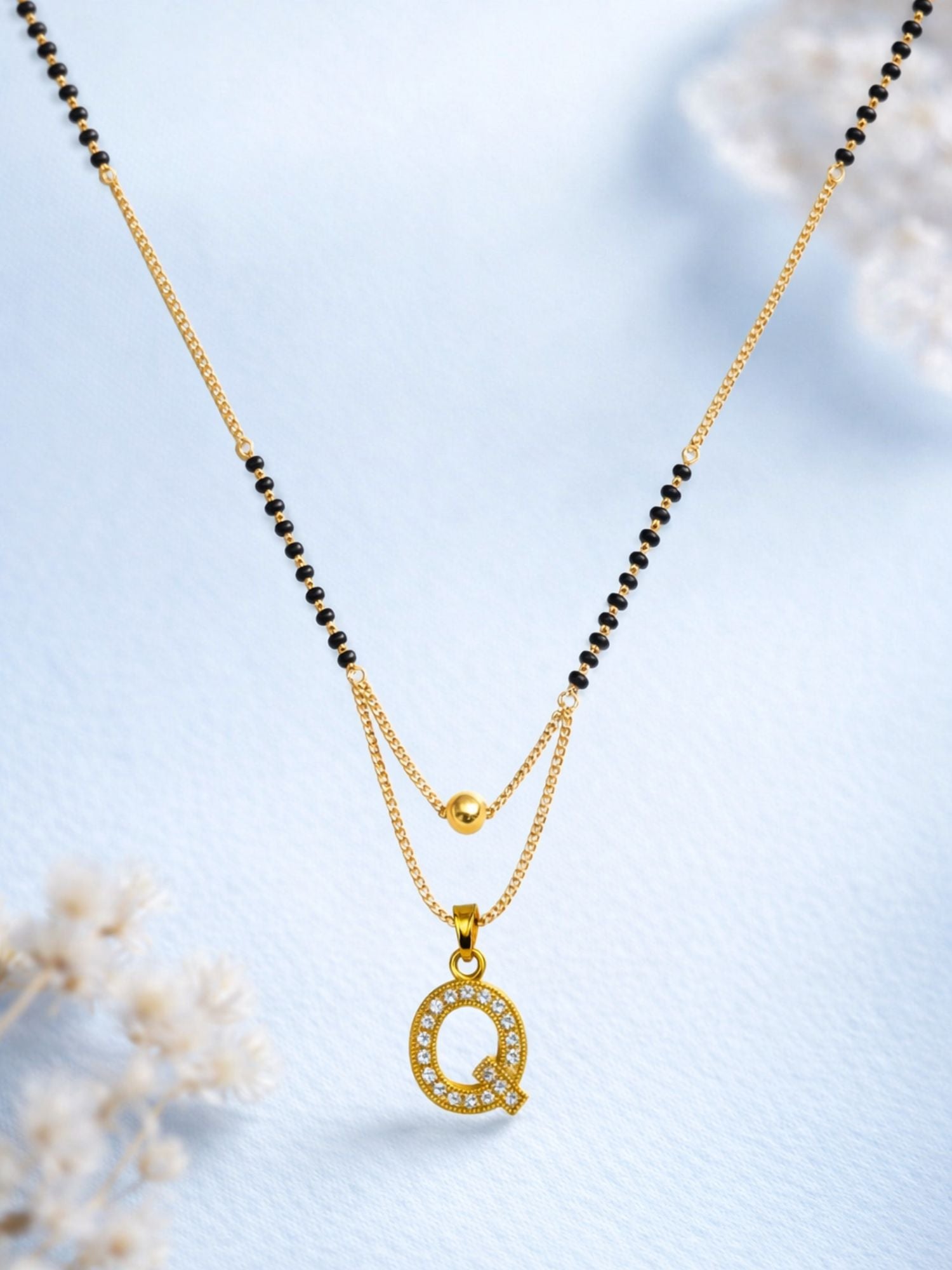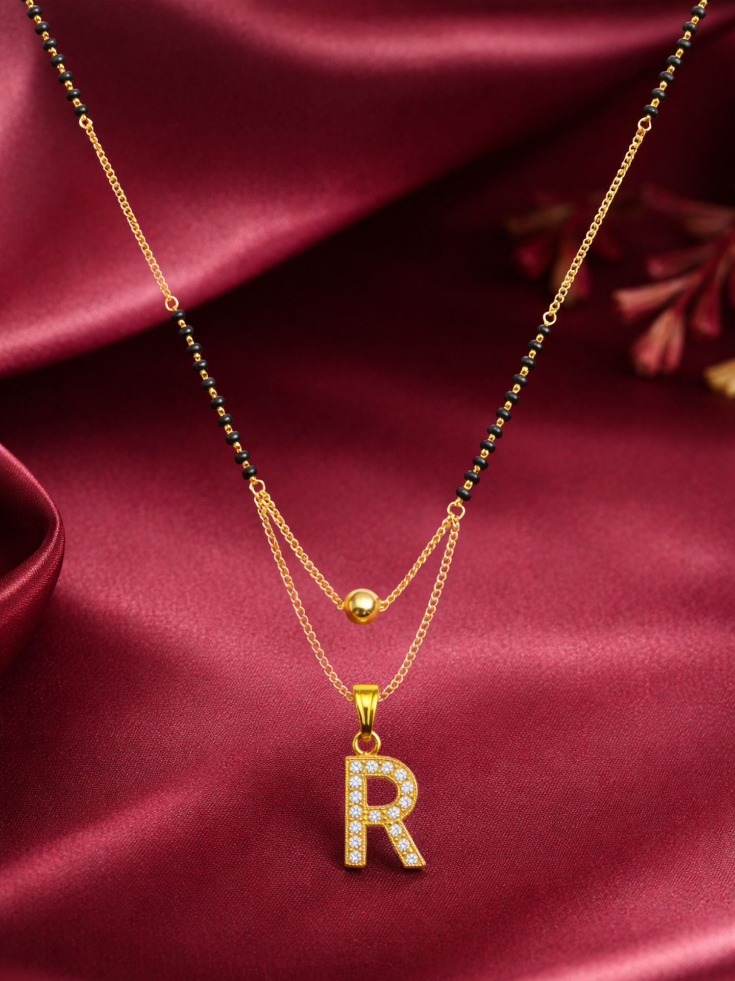"A" To "Z" Letter Short Mangalsutra Designs with Gold Ball