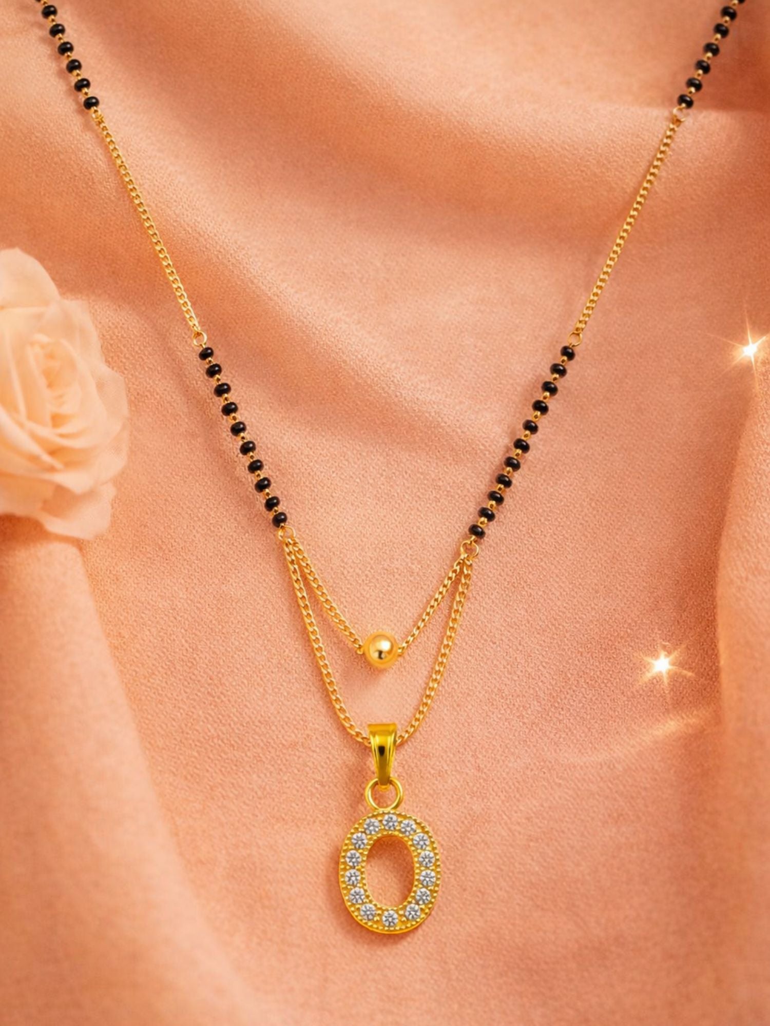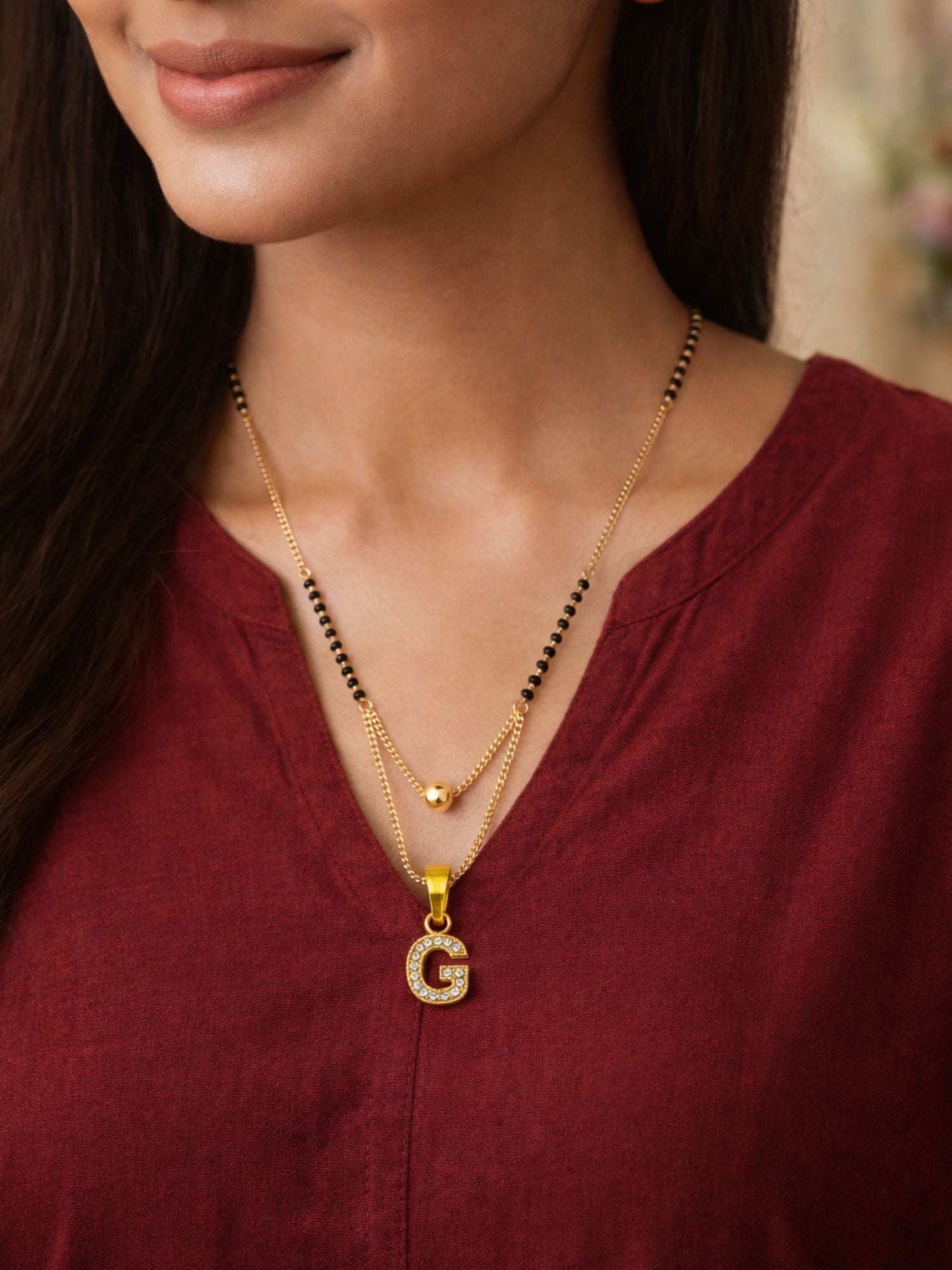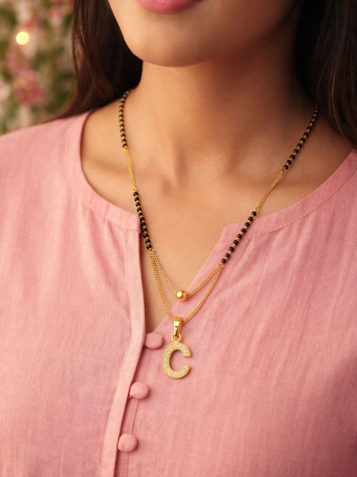 "A" To "Z" Letter Short Mangalsutra Designs with Gold Ball