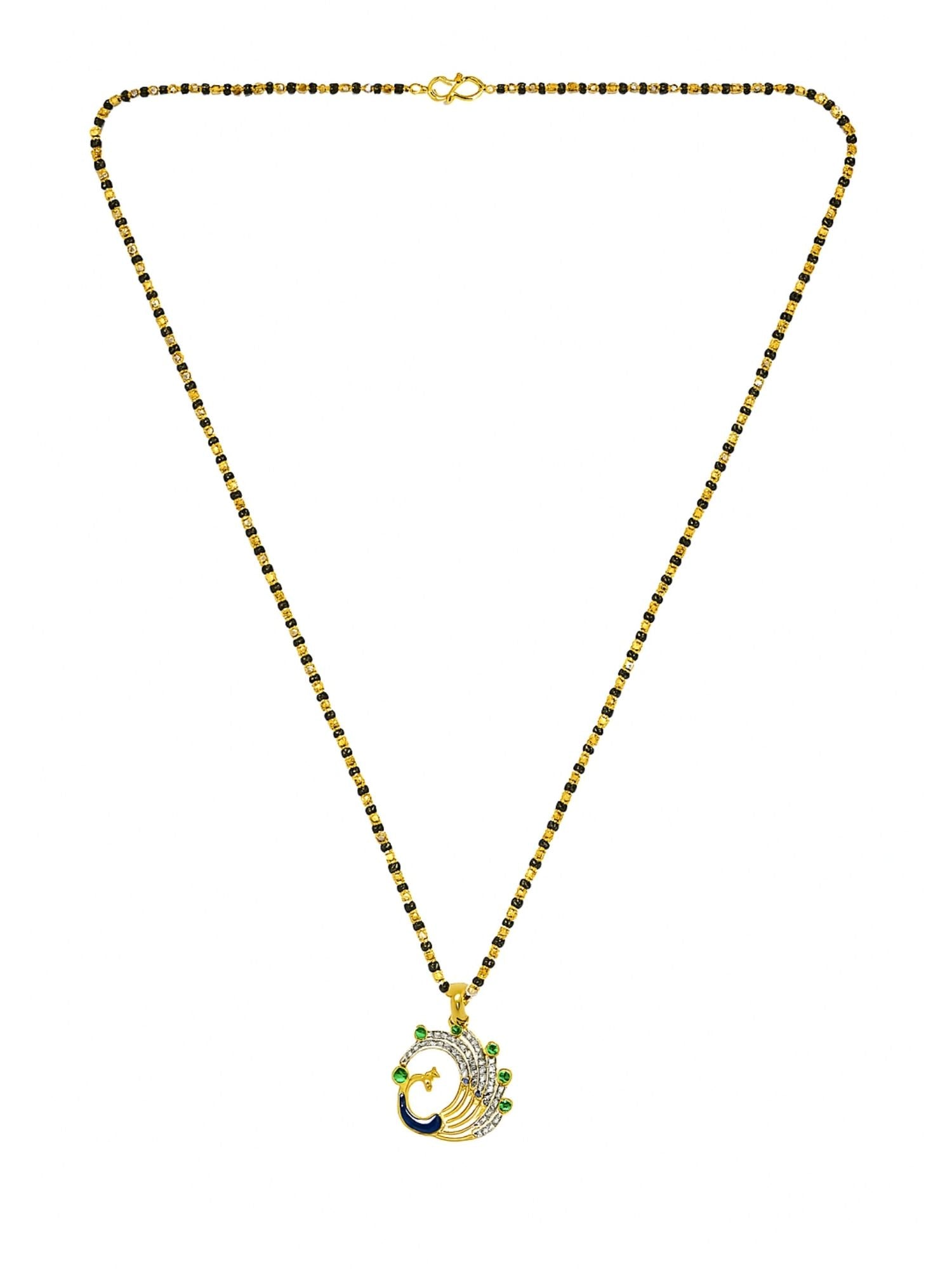 American Diamond Peacock Pendant Long Mangalsutra Designs