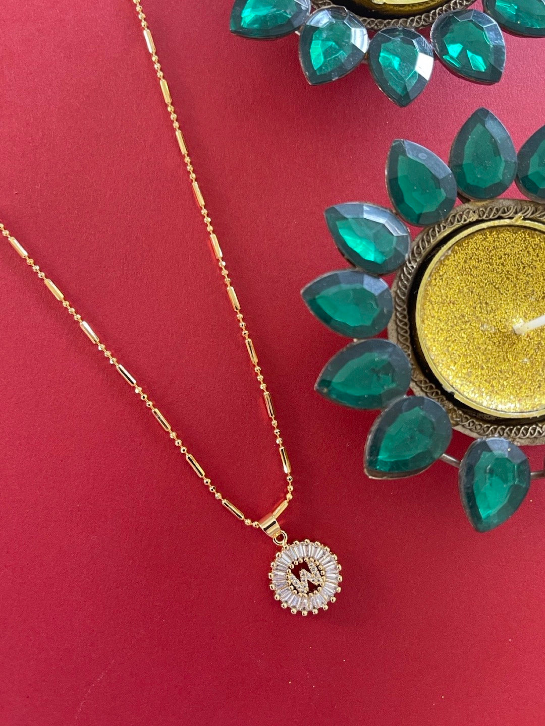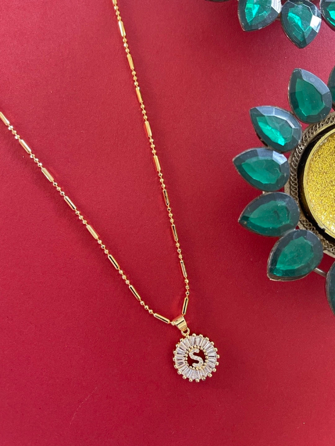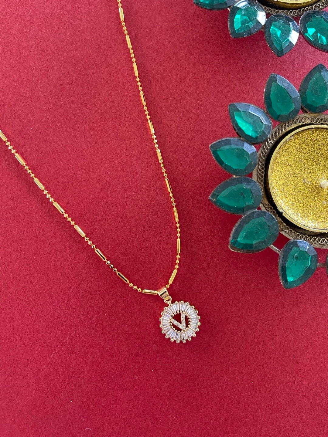 • Letter pendant designs-Perfect Gift for Occasion: Daily Wear, Party Wear, Office Wear, Birthday, Engagement, Anniversary, Jewellery Sets for Wedding. This alphabet pendant necklace gives a glamorous look.