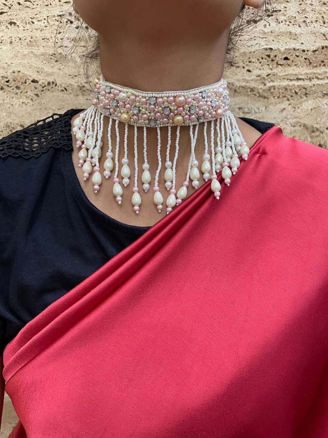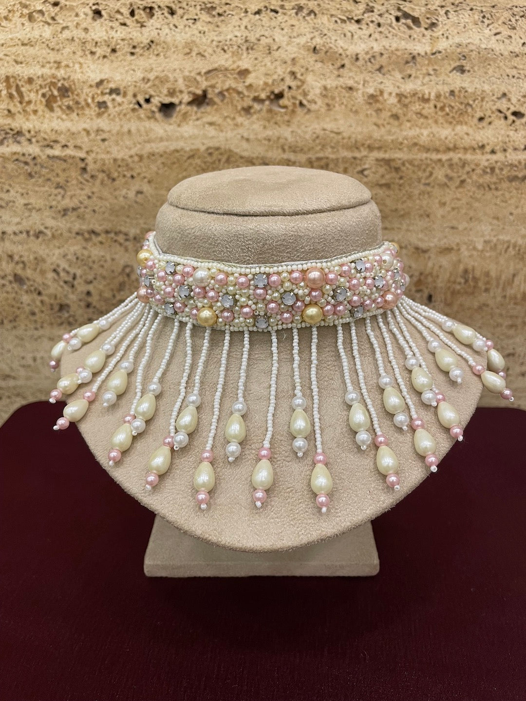 Beaded Choker Necklace Multicolor Beads With Pearl Design Jewellery