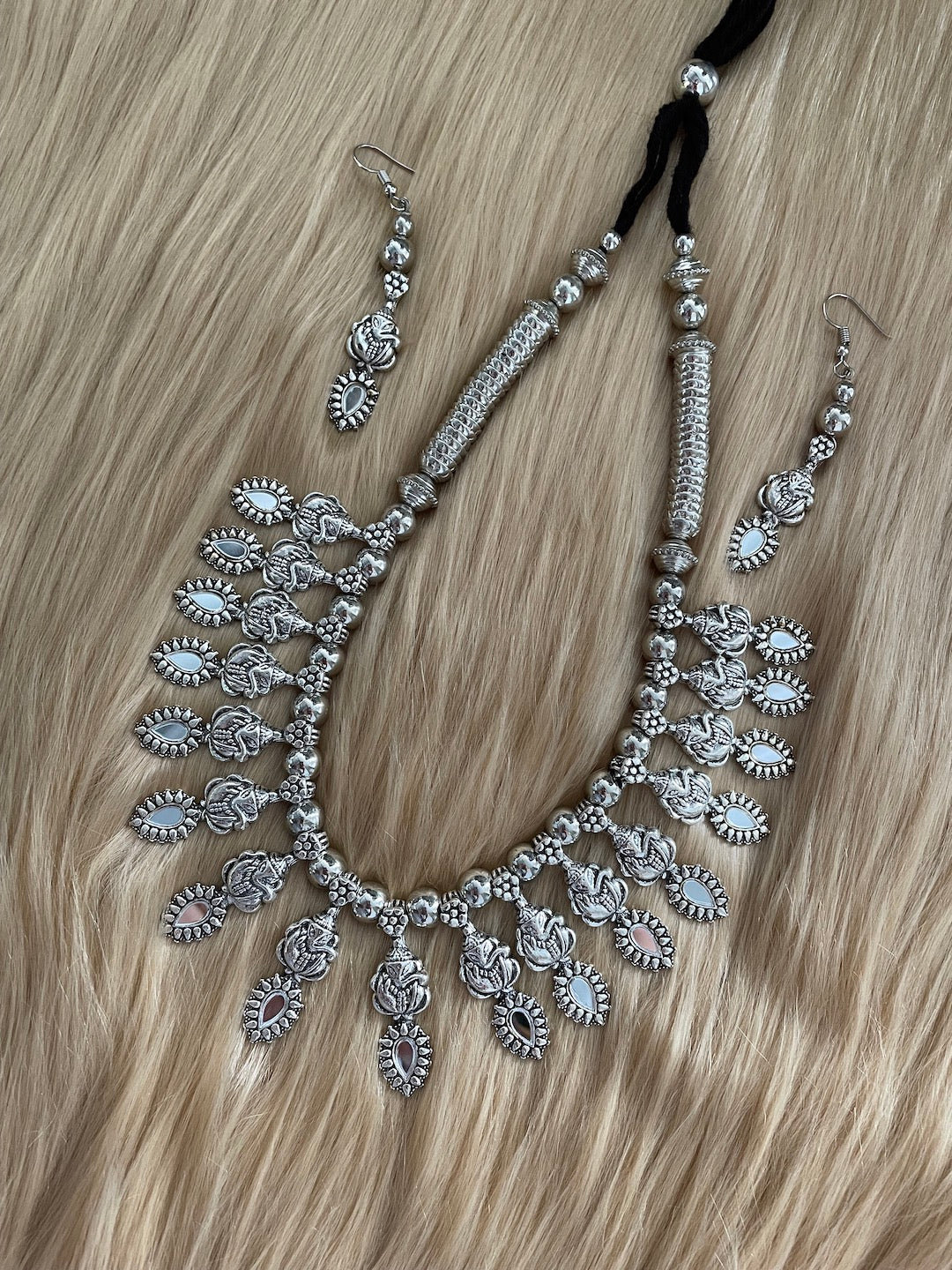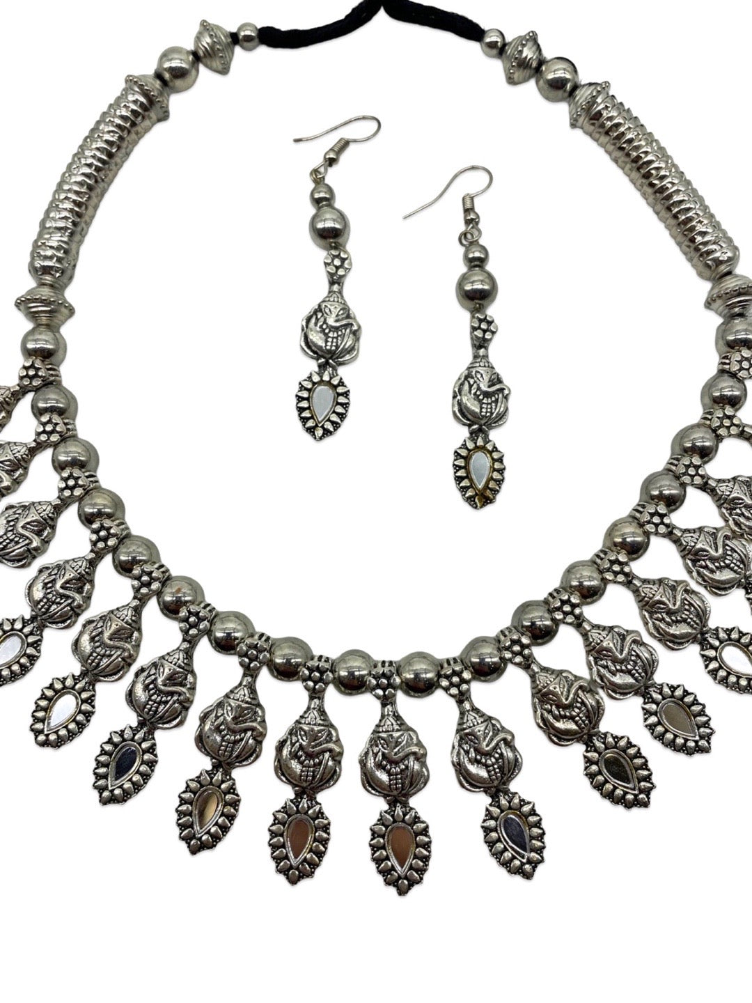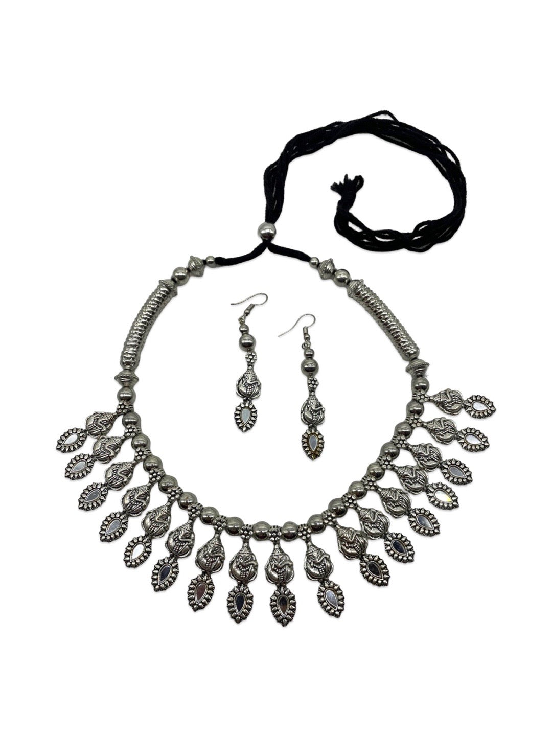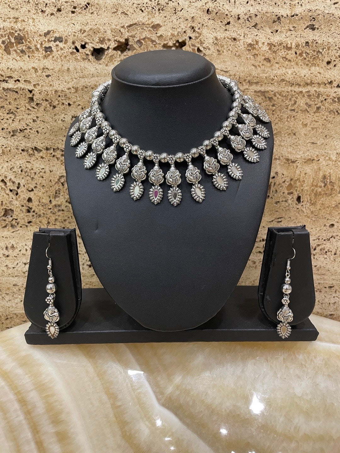 Silver Choker Necklace Set Ganesh Design