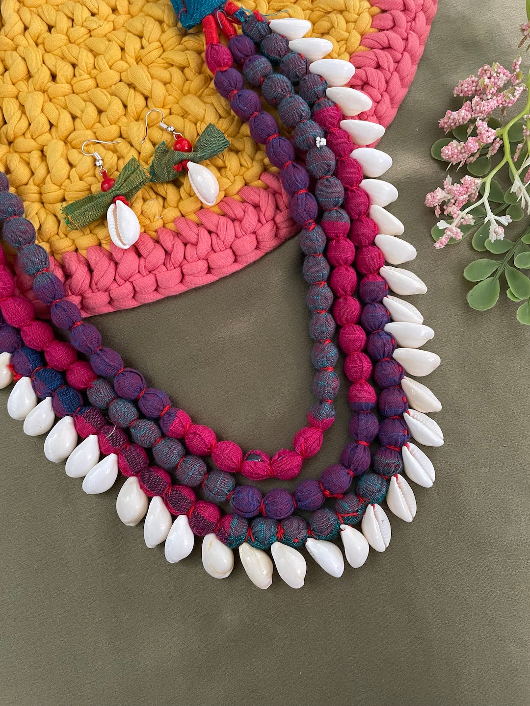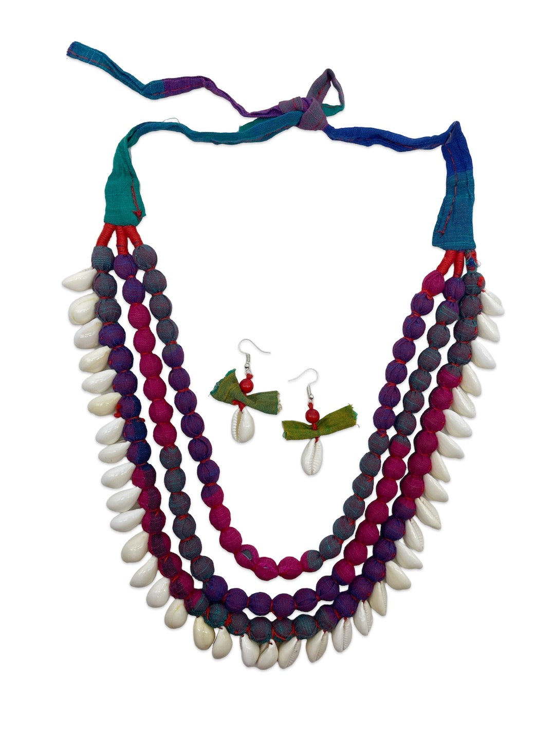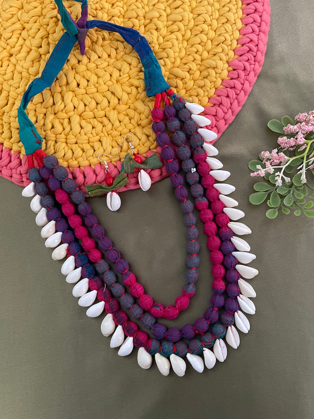 Colourful Fabric Sea Shell Necklace Set
