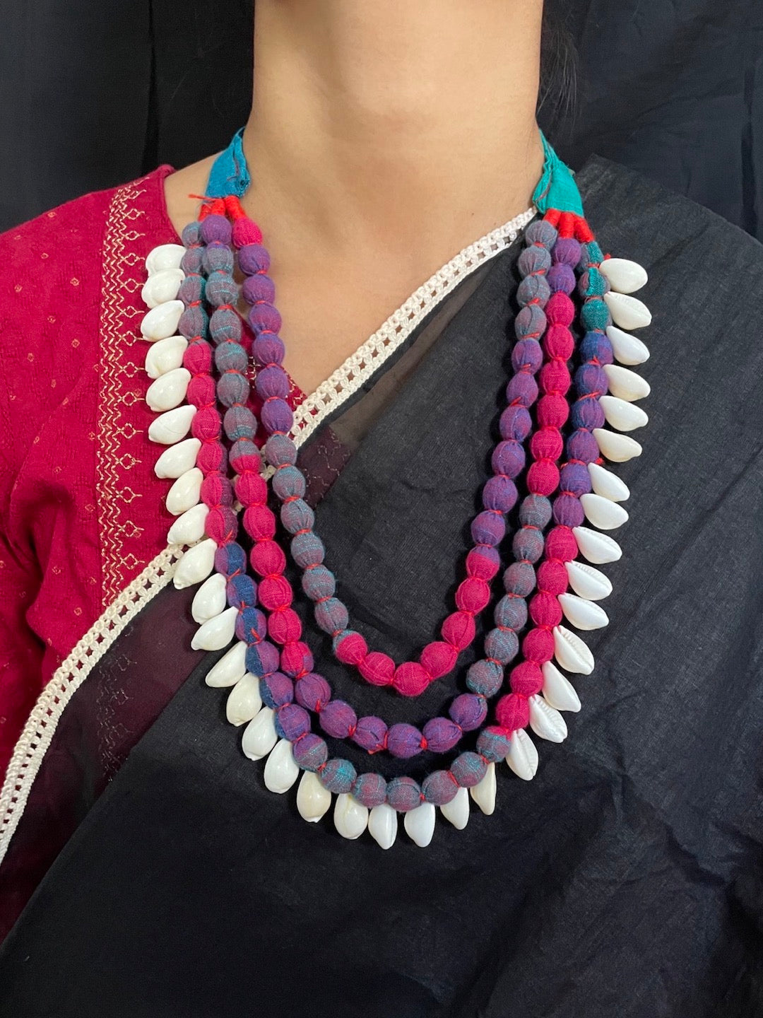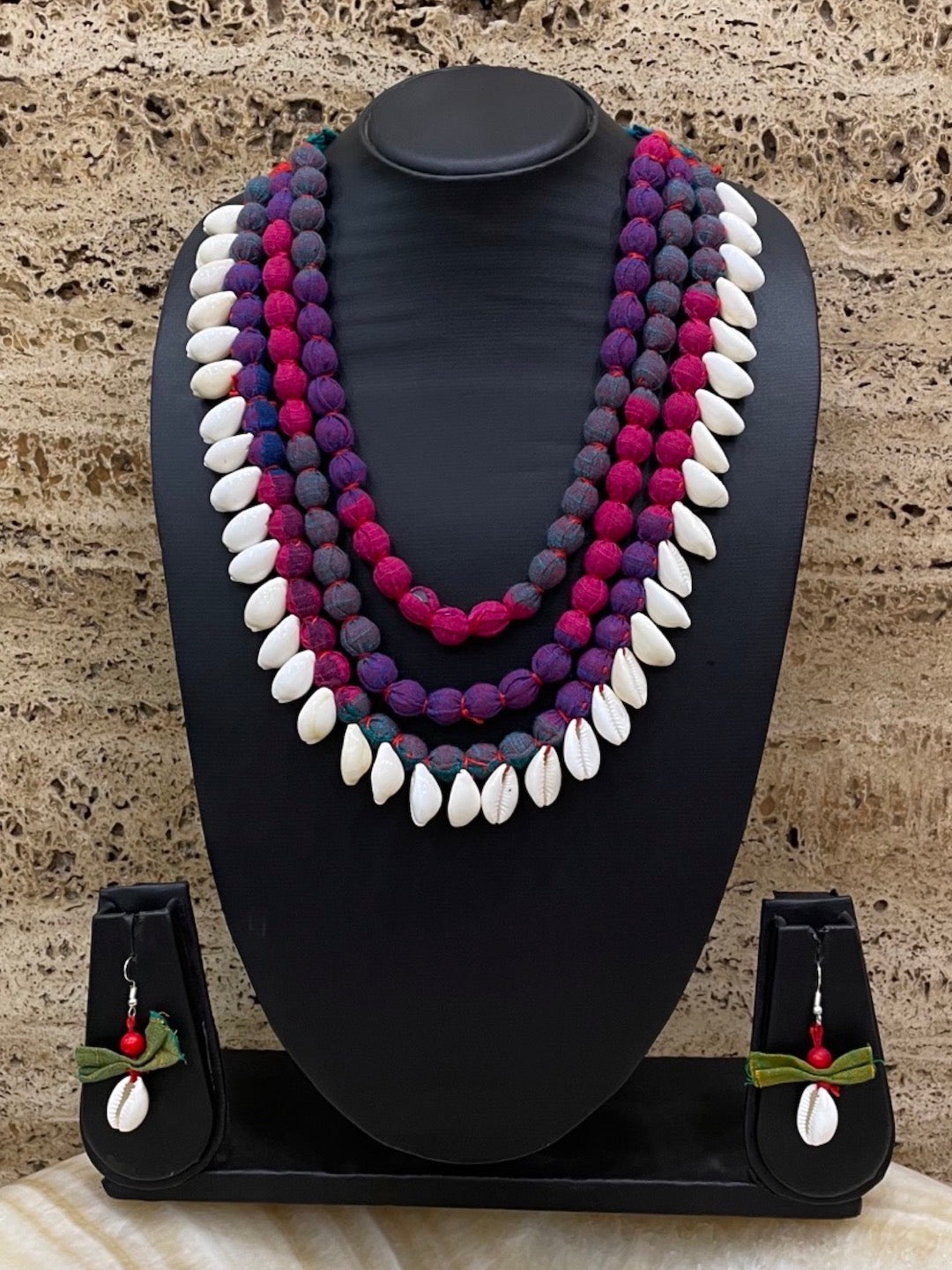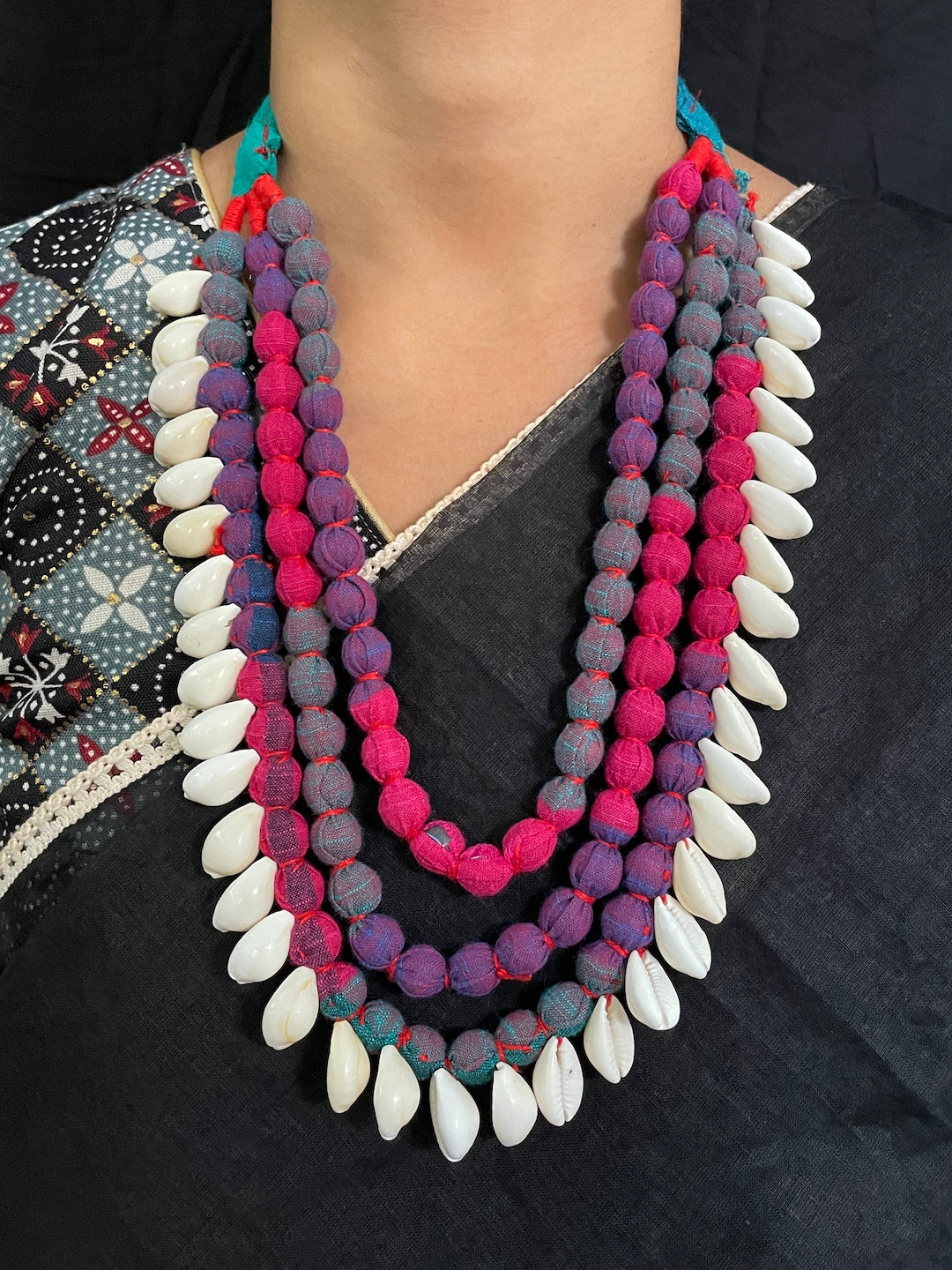Colourful Fabric Sea Shell Necklace Set