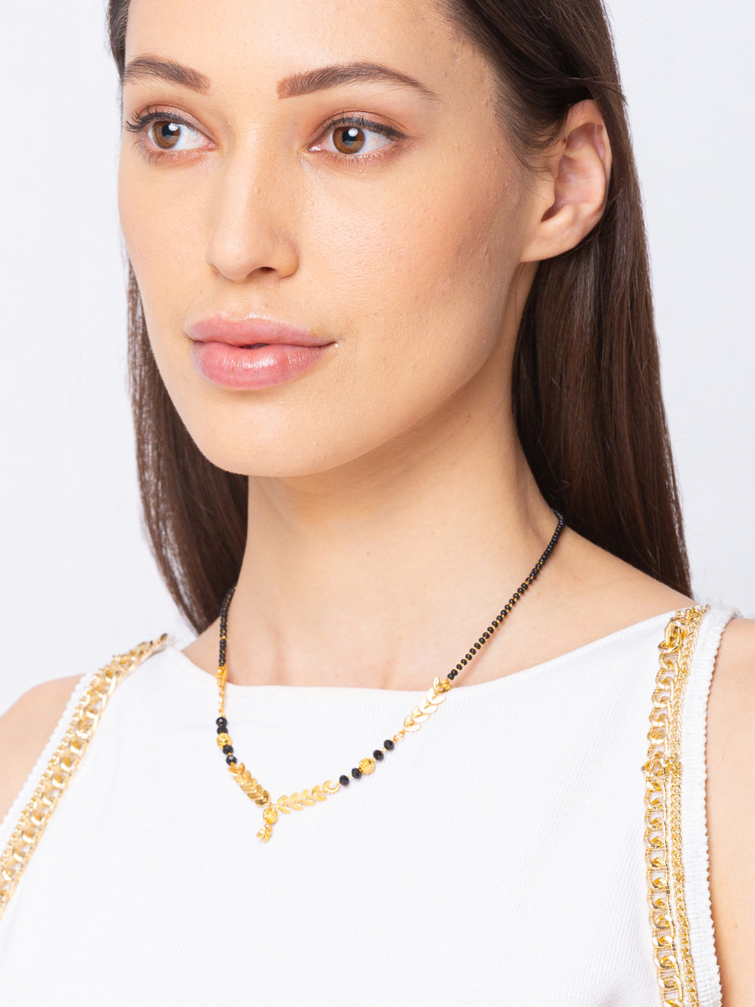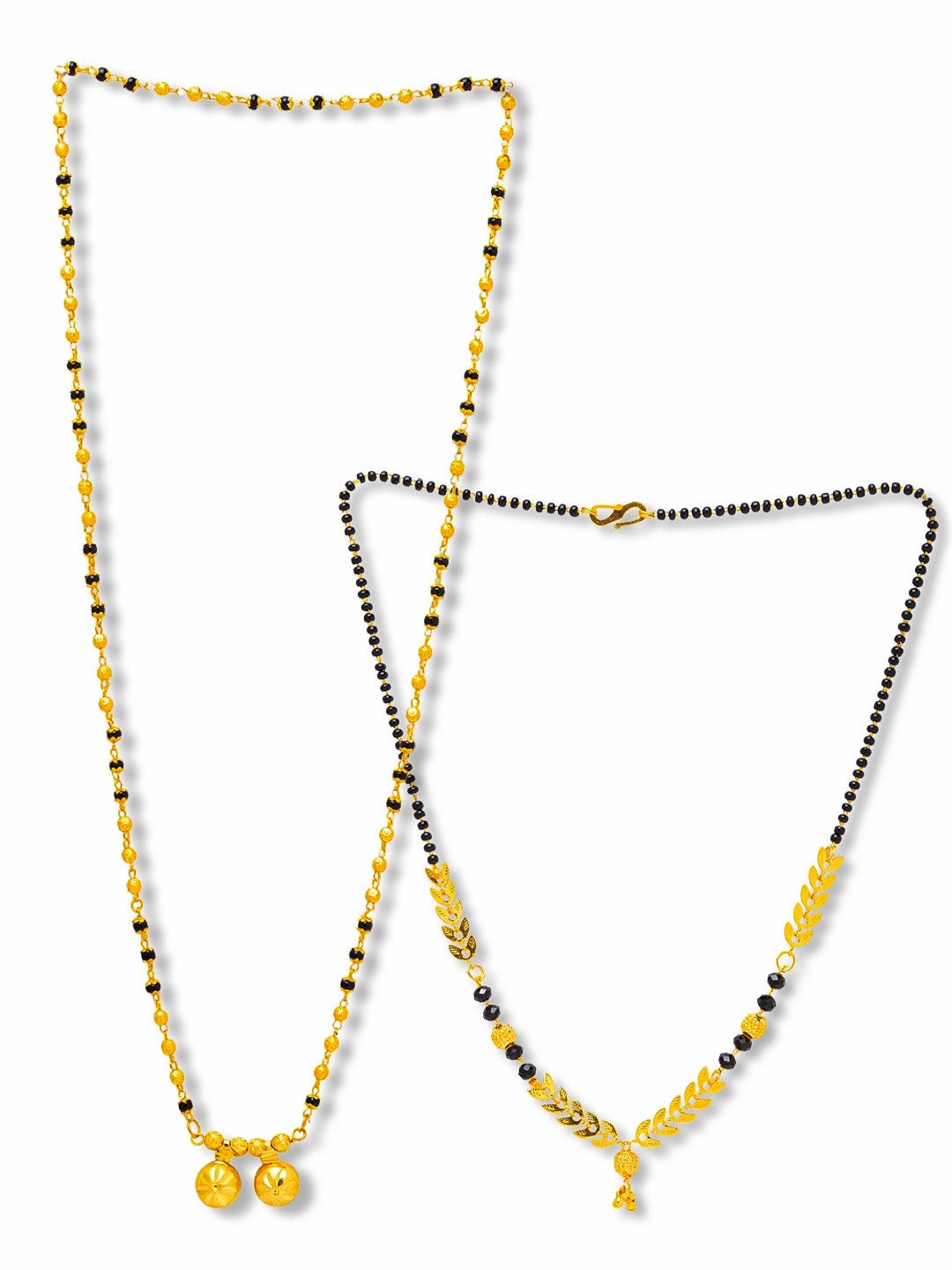 Combo Set of 2 Gold Plated Long Mangalsutra Designs and Short Mangalsutra Designs with Leaf Pendant