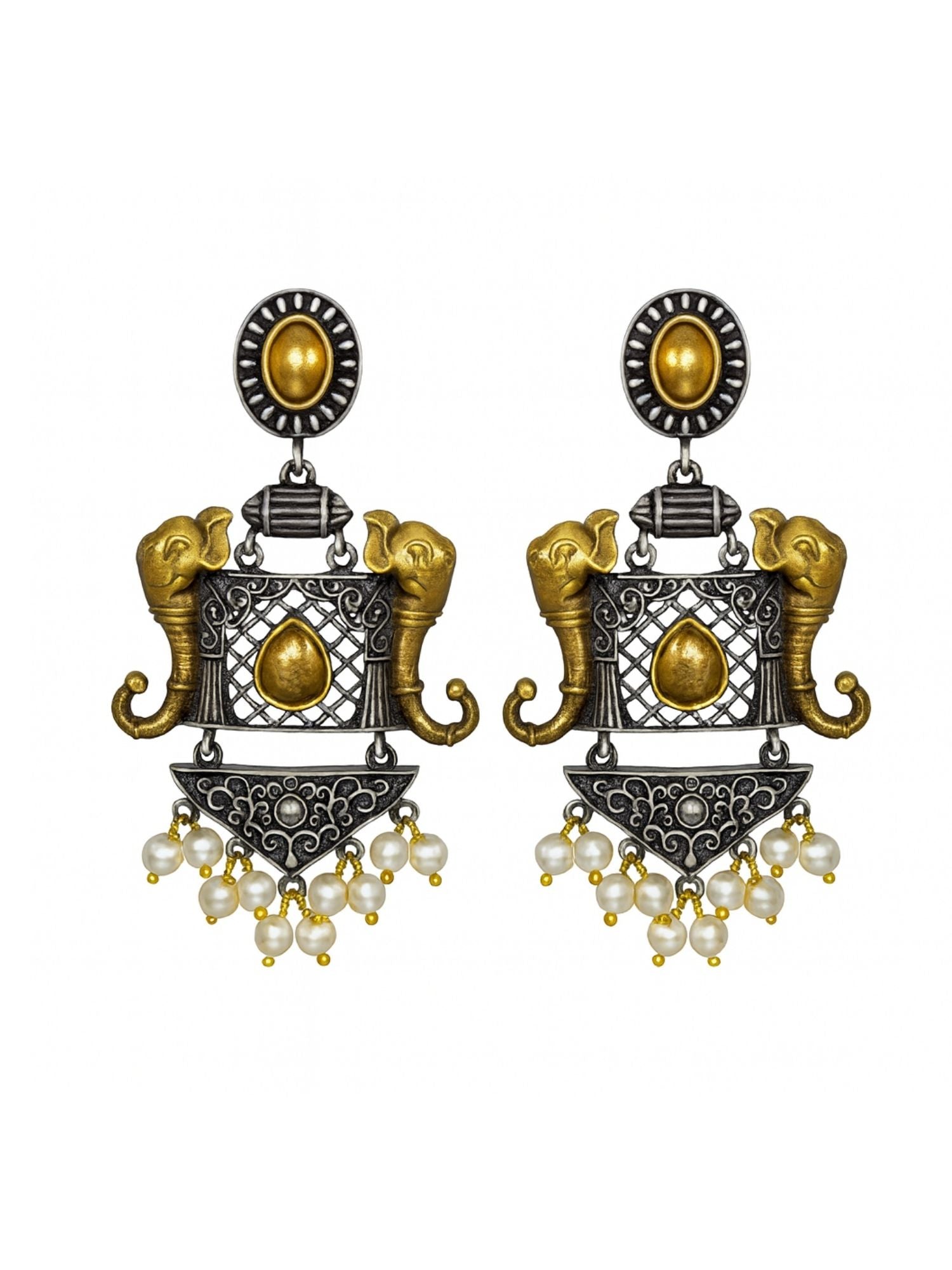 Drop Afghani Jhumka Earrings Elephant With Pearl Design