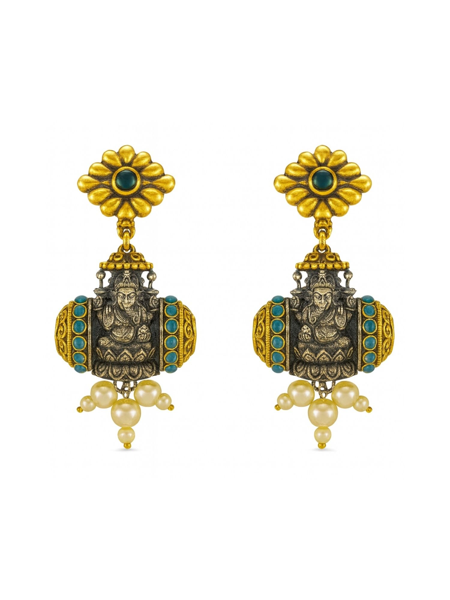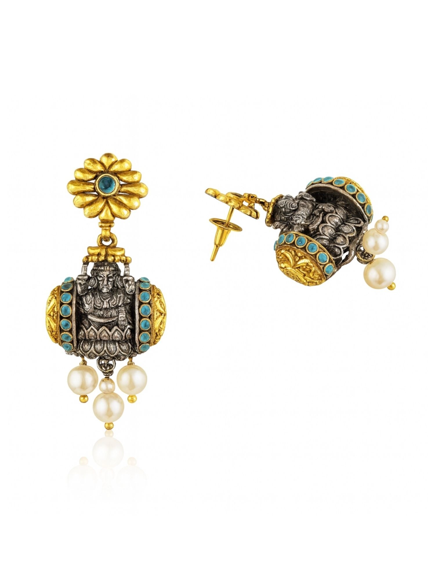 Drop Afghani Jhumka Earrings Mata Laxmi With Pearl Design