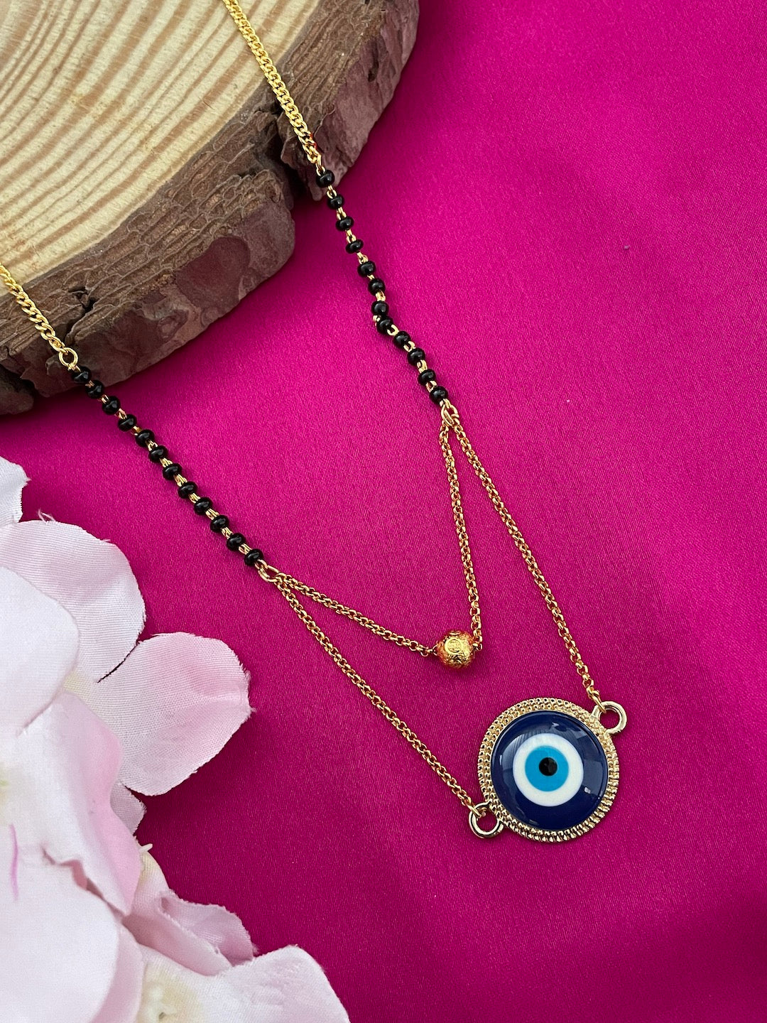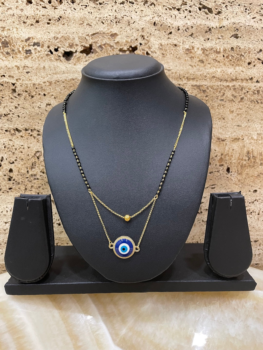 Simple Modern Short Mangalsutra Designs Evil Eye Layered Pendant Black Beads Gold Chain