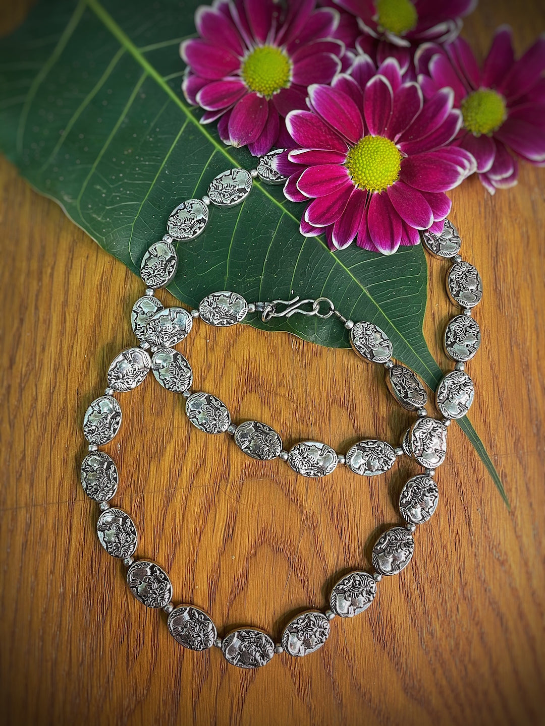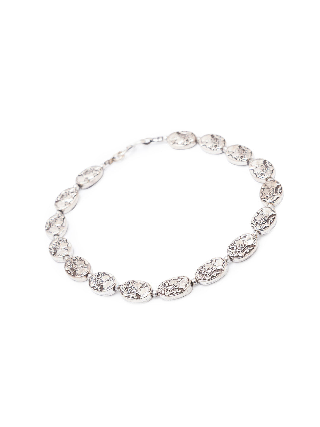 German Oxidised Silver Anklets Engraved Face Design Coins Payal Silver Plating & Beads Foot Jewellery
