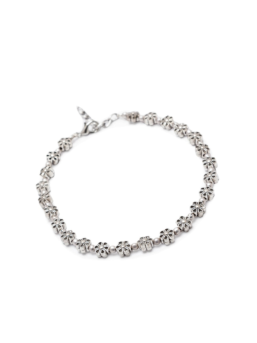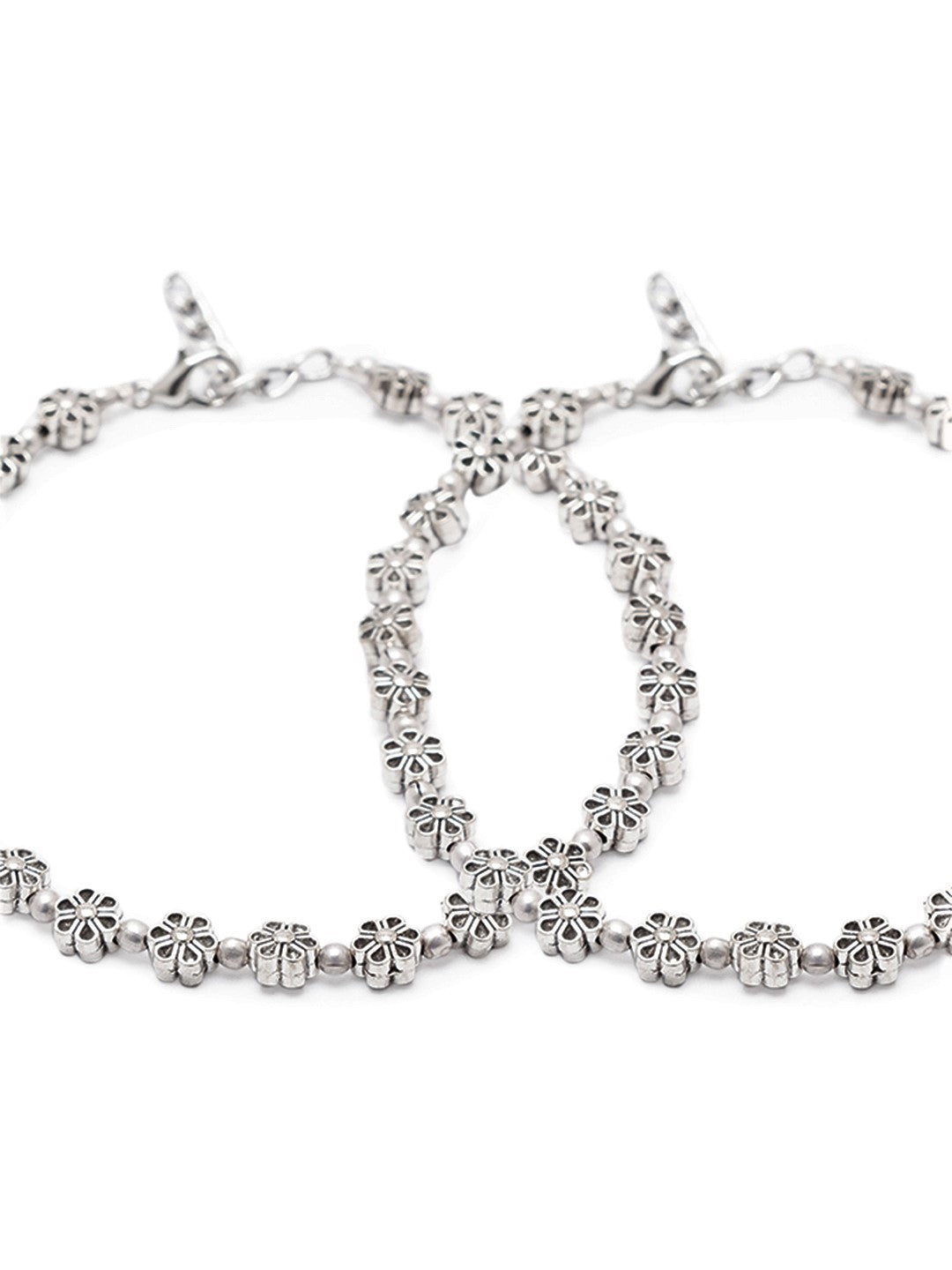 German Oxidised Silver Anklets Engraved Flower Design Payal Silver Plating With Beads Foot Jewellery