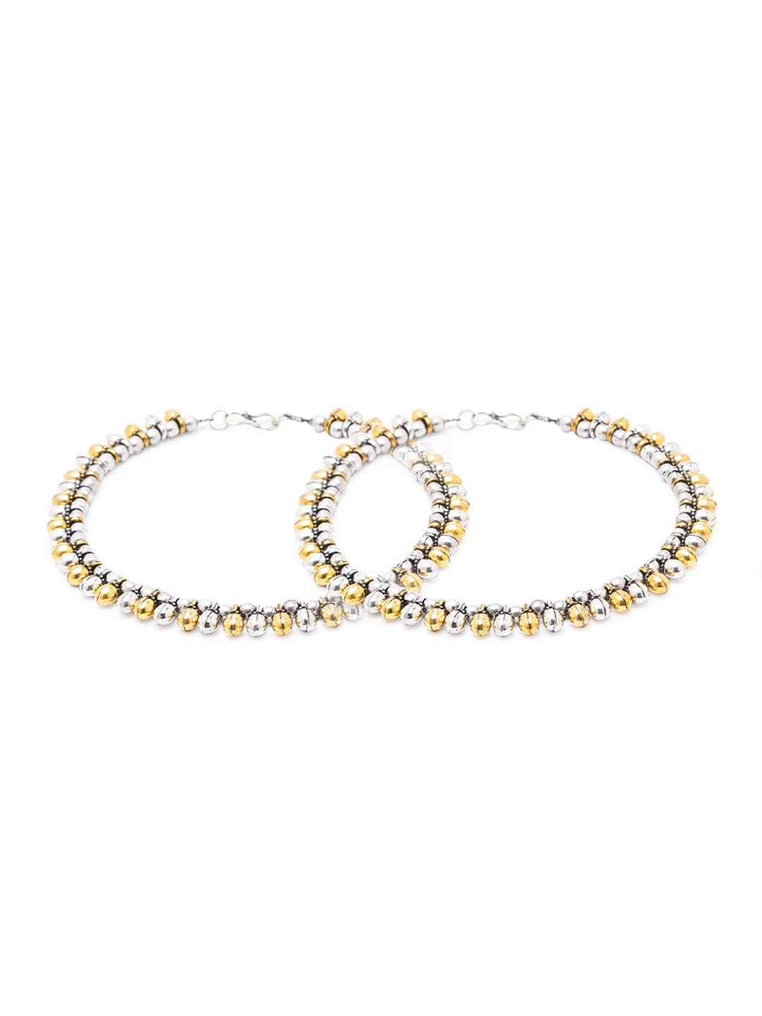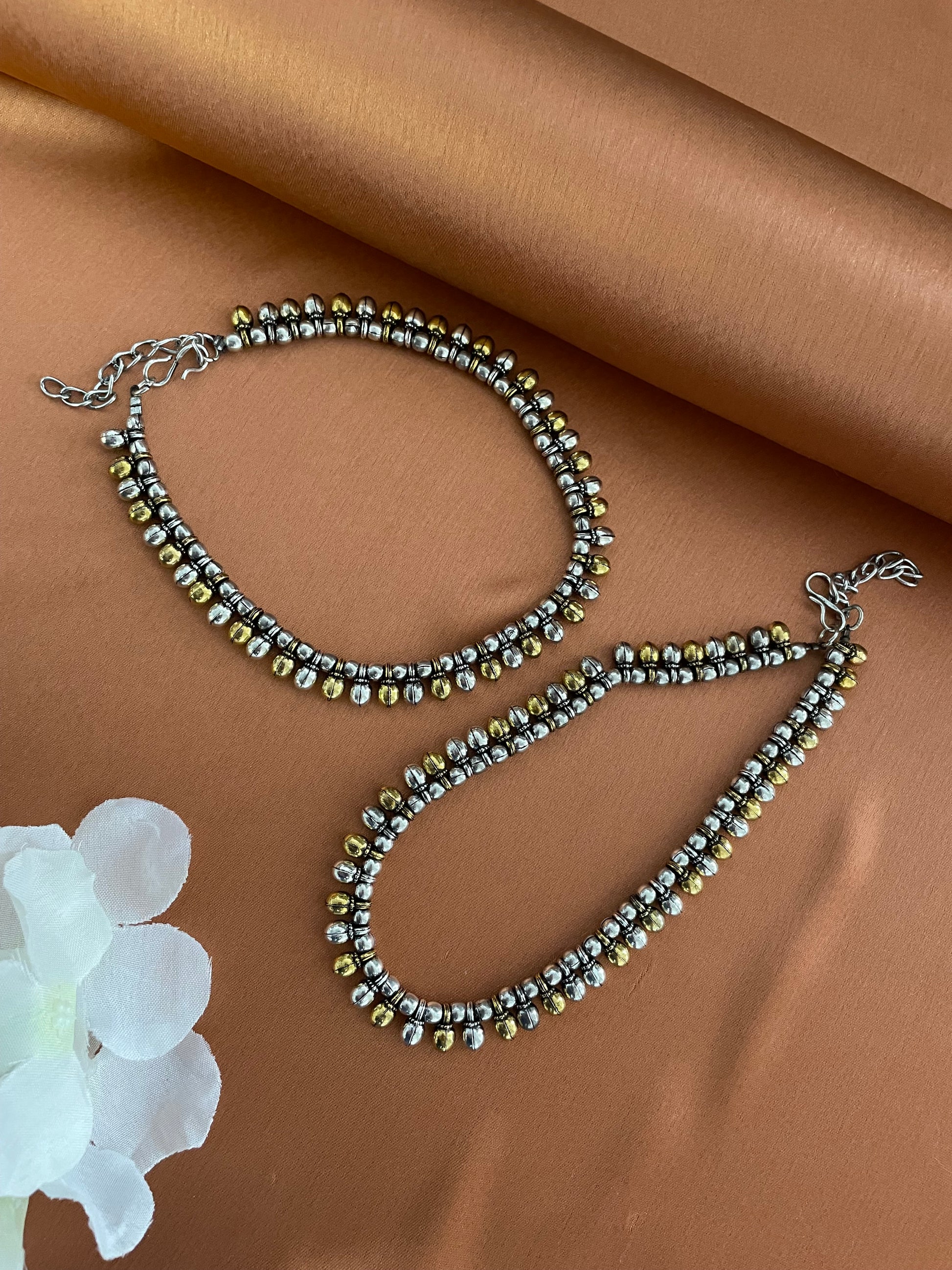 German Oxidised Silver Anklets Gold/Silver Plating Payal With Beads/Ghungroo Paijan Foot Jewellery