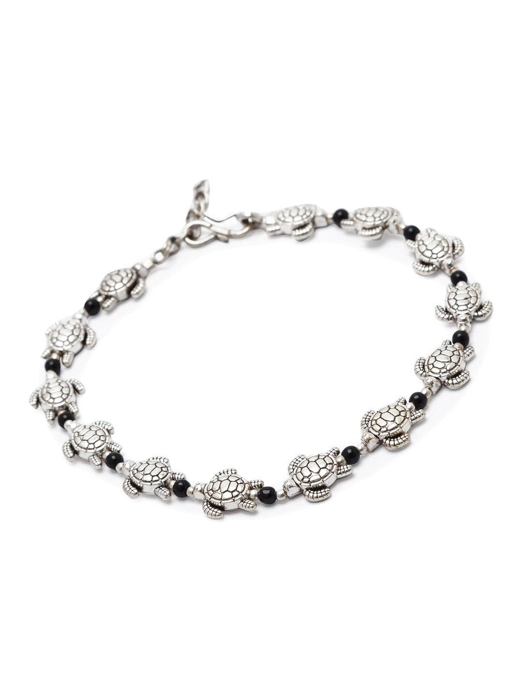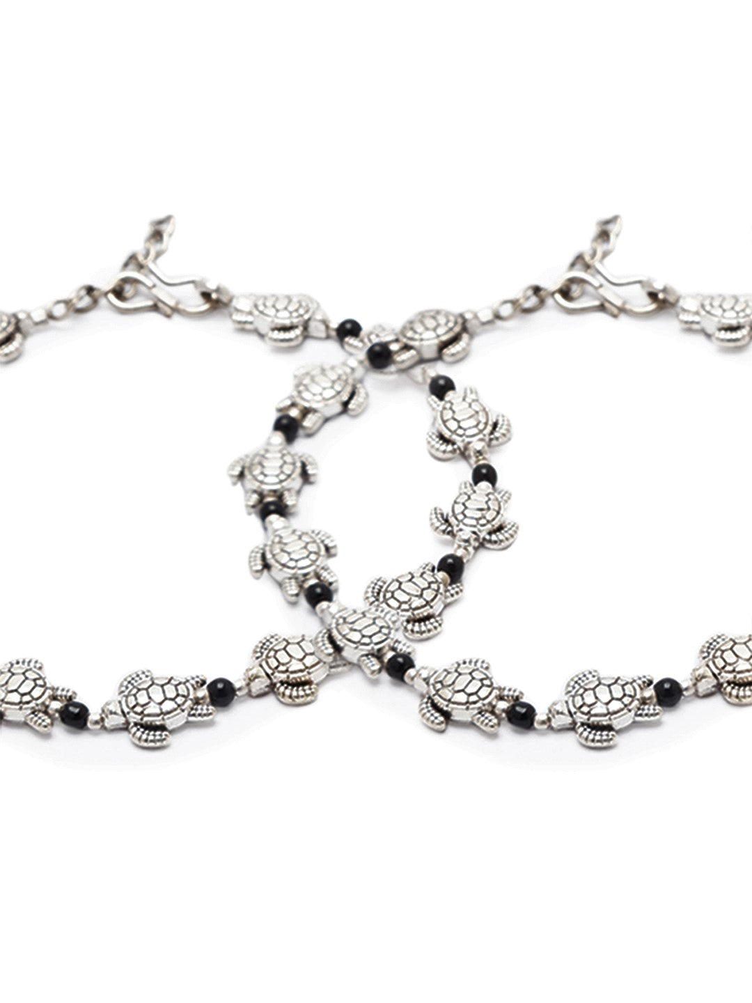 German Oxidised Silver Anklets Tortoise Payal Silver Plating Pazeb With Black beads Foot Jewellery