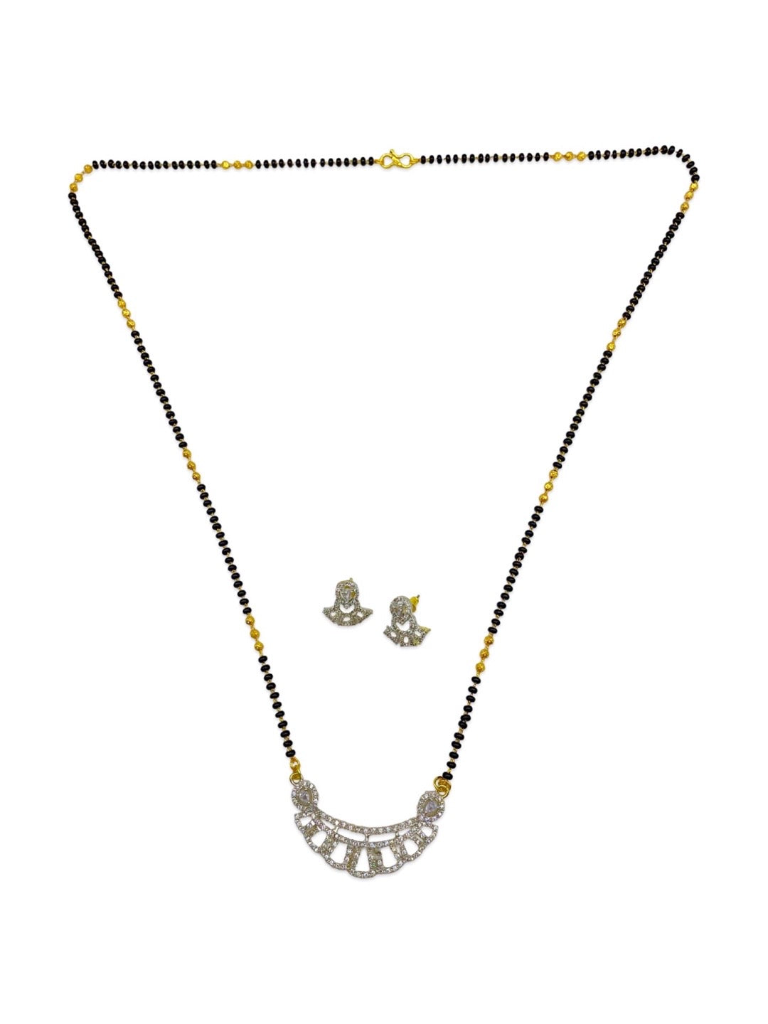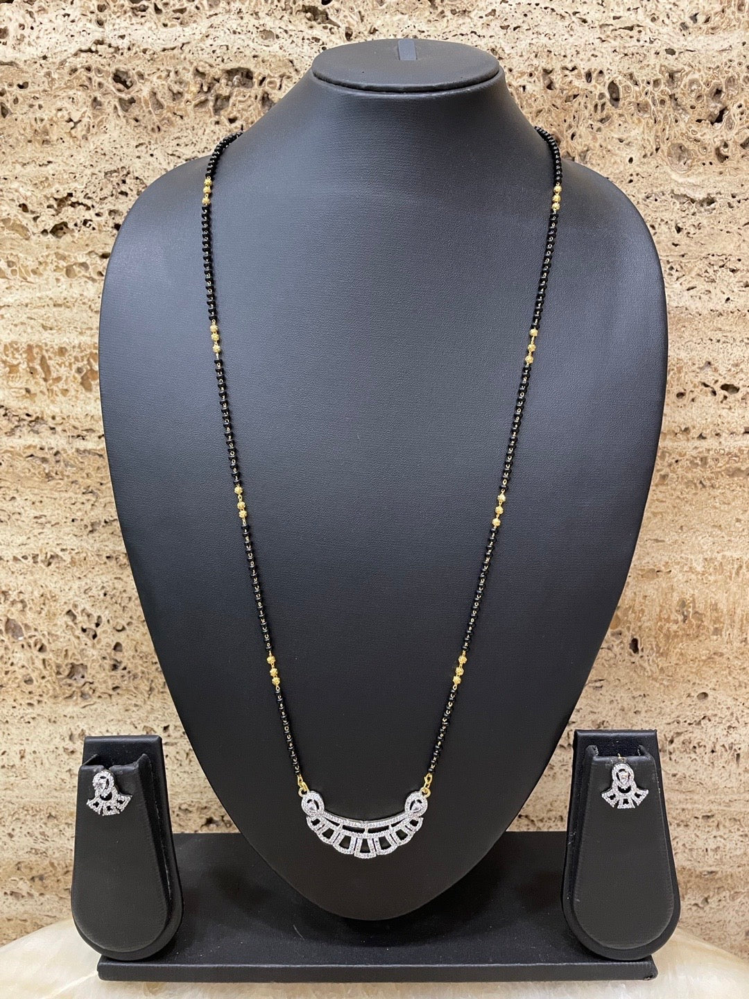 Gold Plated American Diamond Long Mangalsutra & Earrings Set