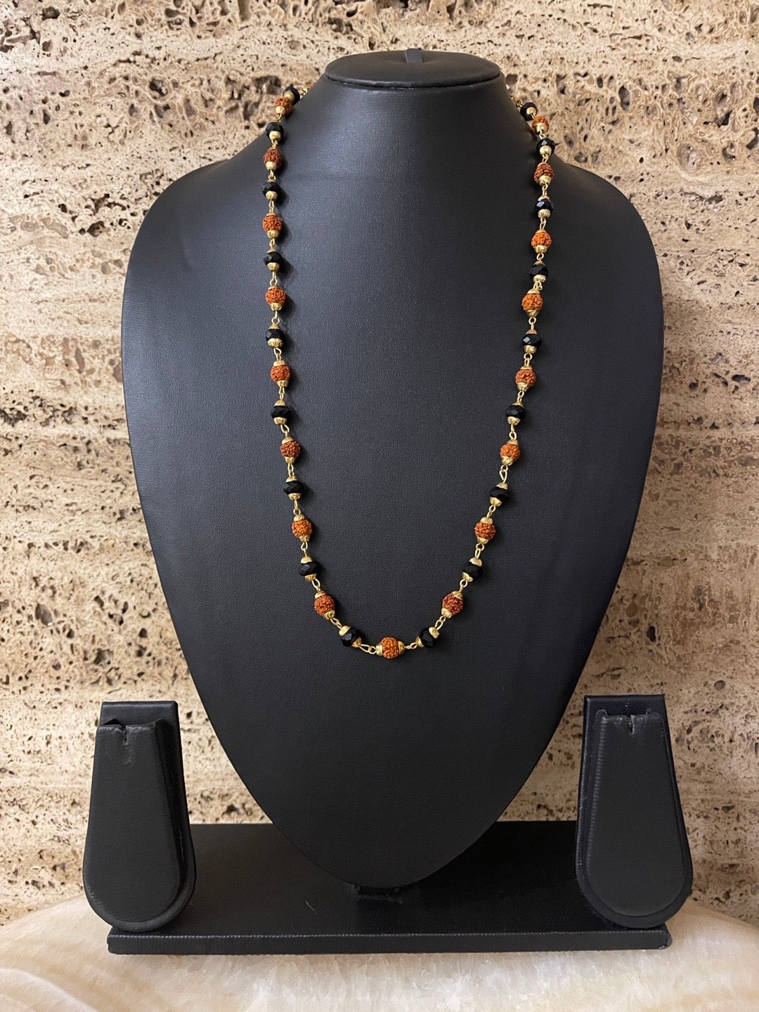 Gold Plated Rudraksha Mala Mens Jewelry Big Black Crystal Bead Design Necklace