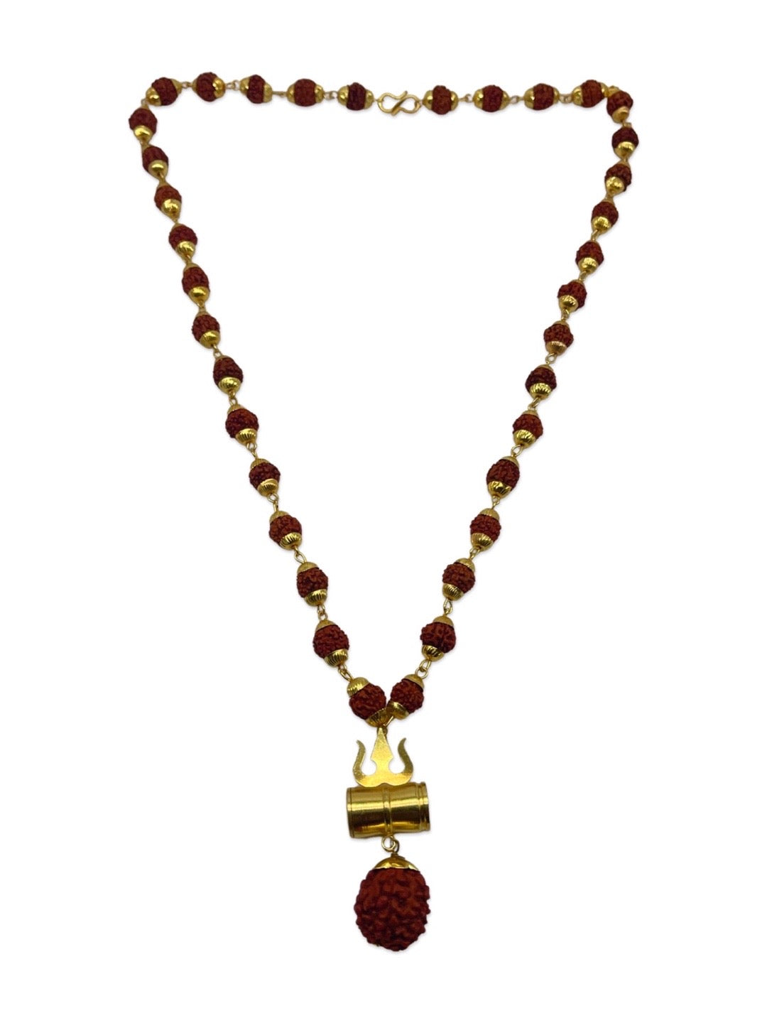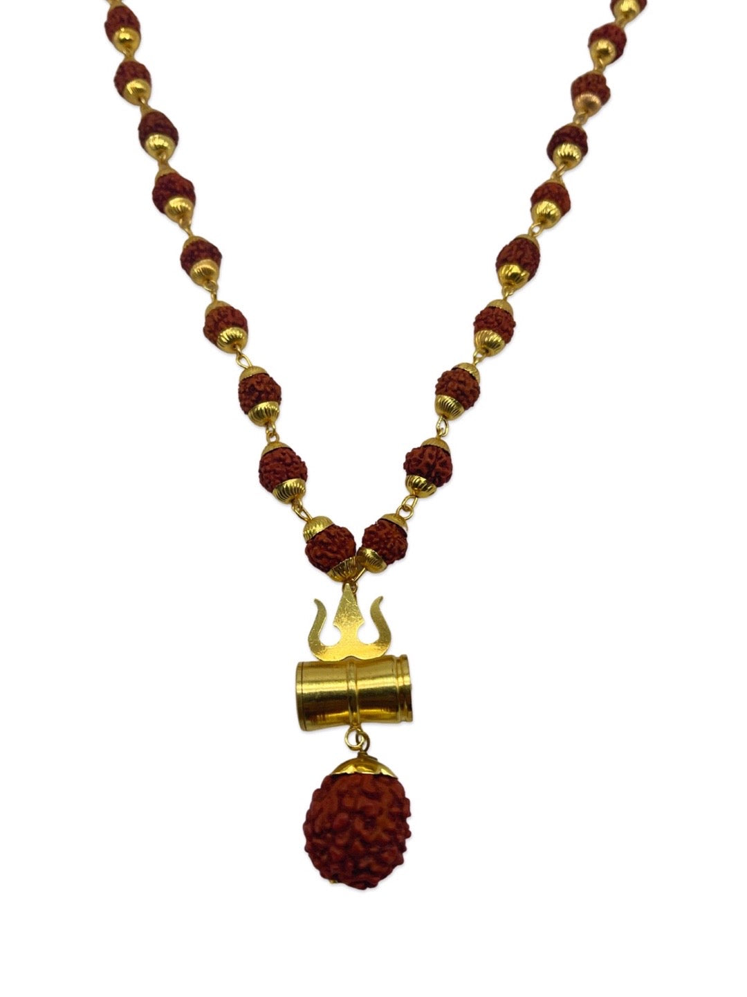 Gold Plated Rudraksha Mala Trishul damaru Design