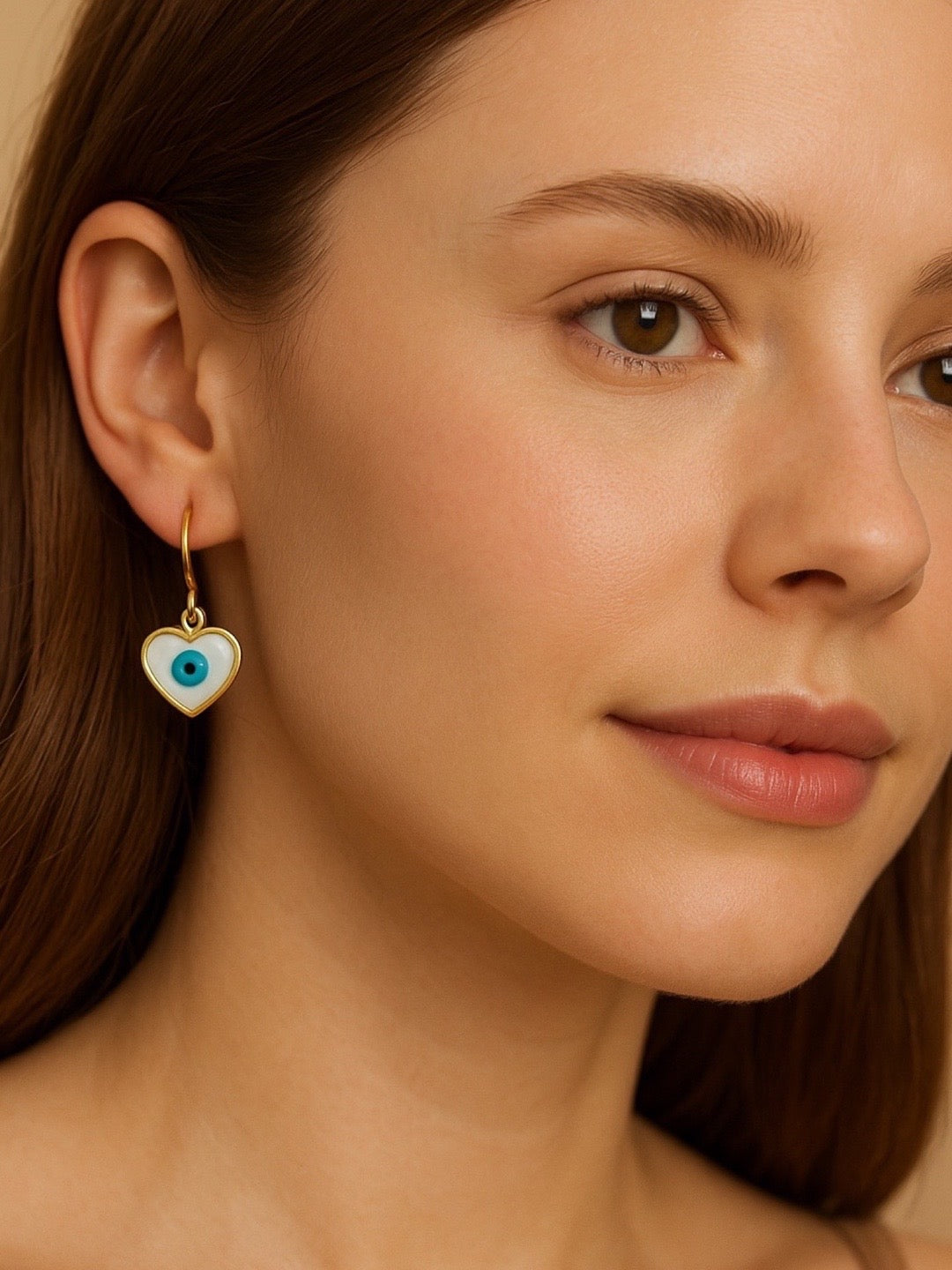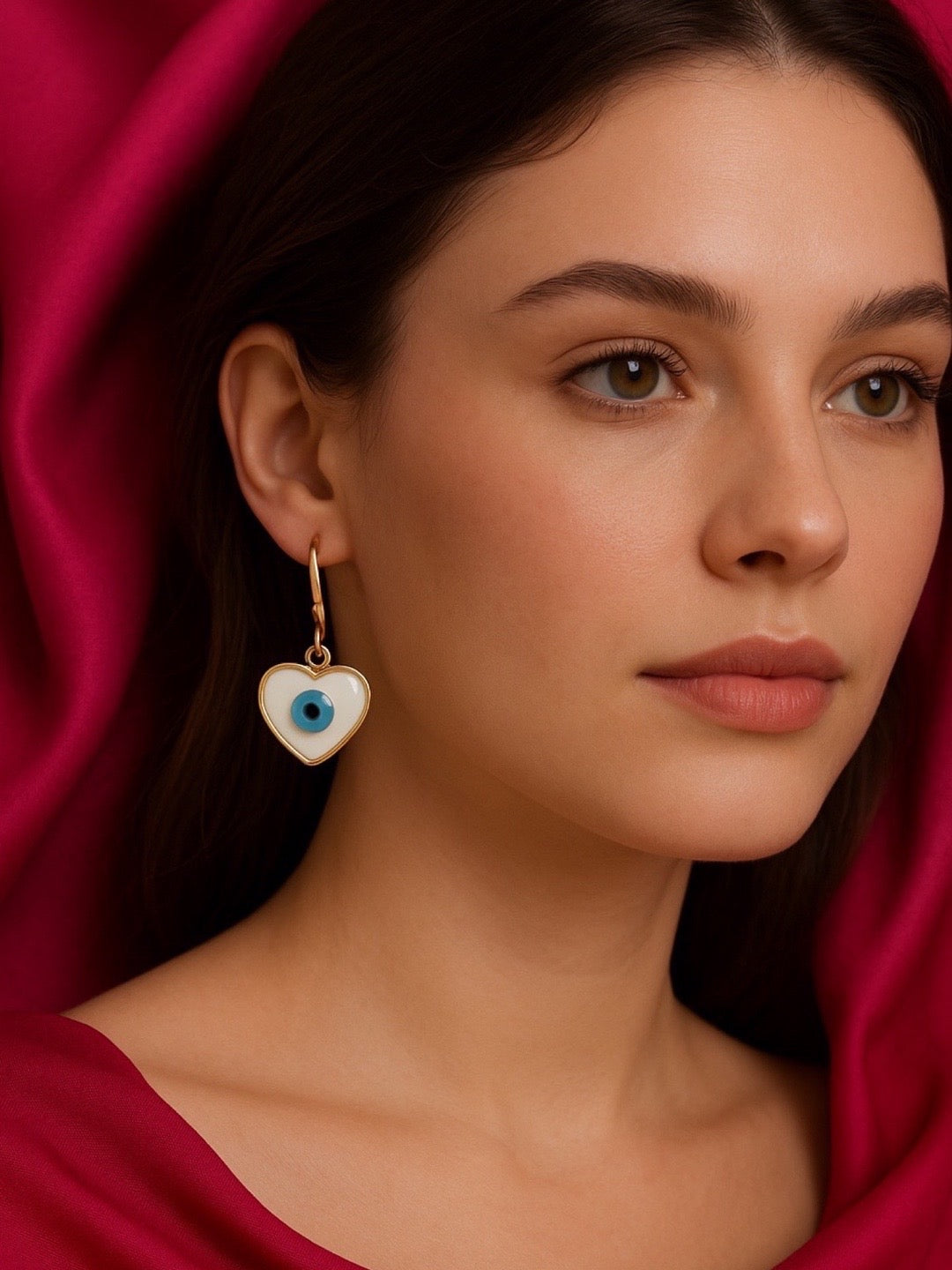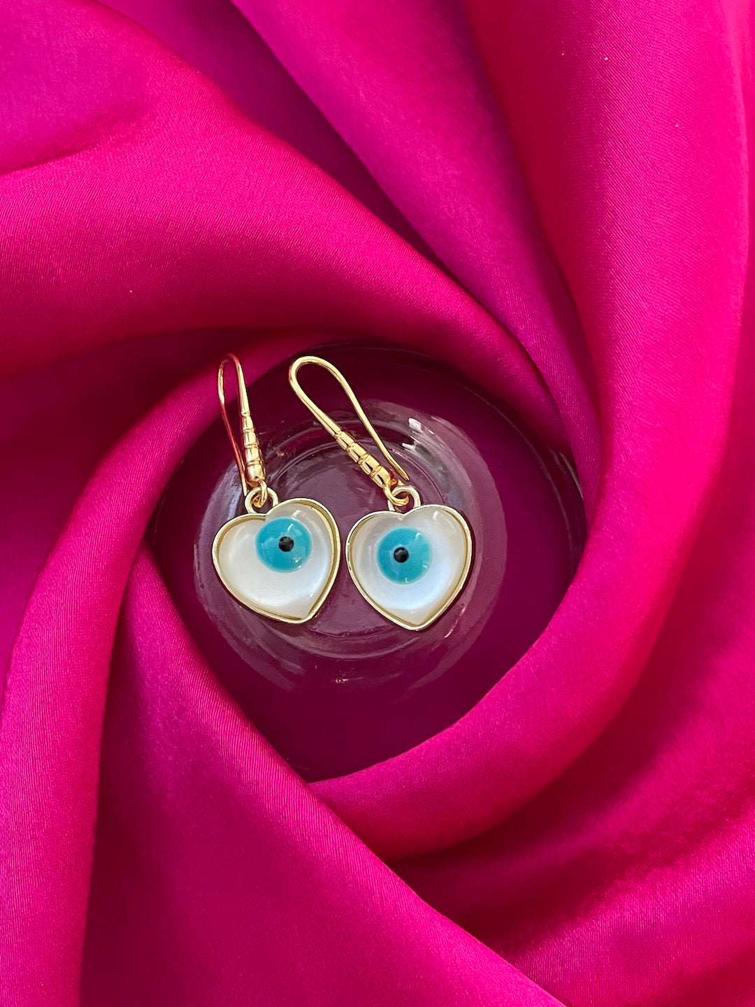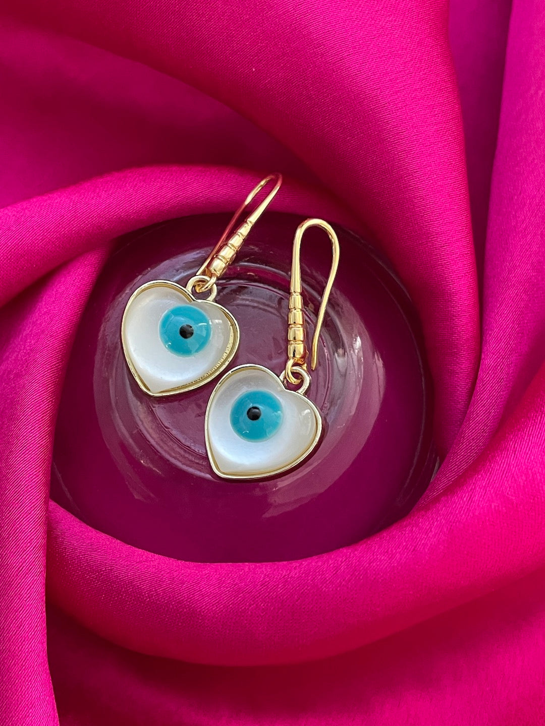 Heart Evil Eye Dangler Earrings