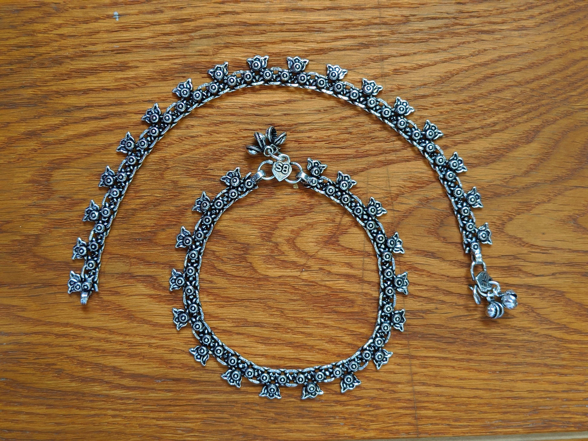 • Fashionable Attractive Indian Style Silver Oxidized Colour Polished Anklet Adjustable Length. Get can be Worn with Western and Indian Outfit
