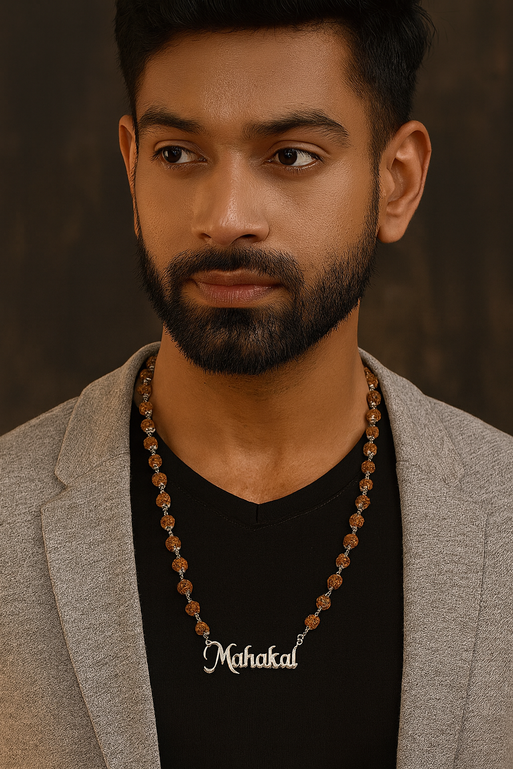 "Mahakal" Name Pendant Rudraksha Mala Necklace