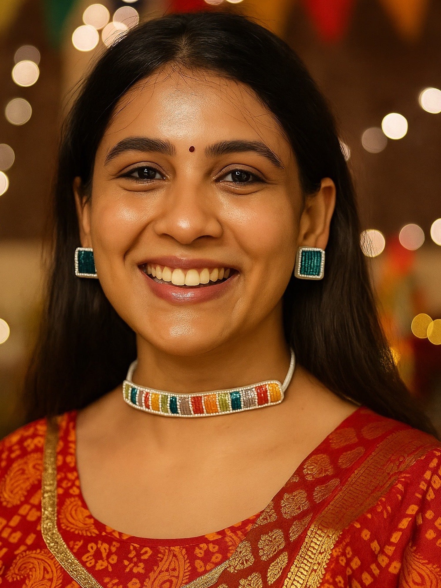 Multi Color Beaded Choker Necklace & Earring Set