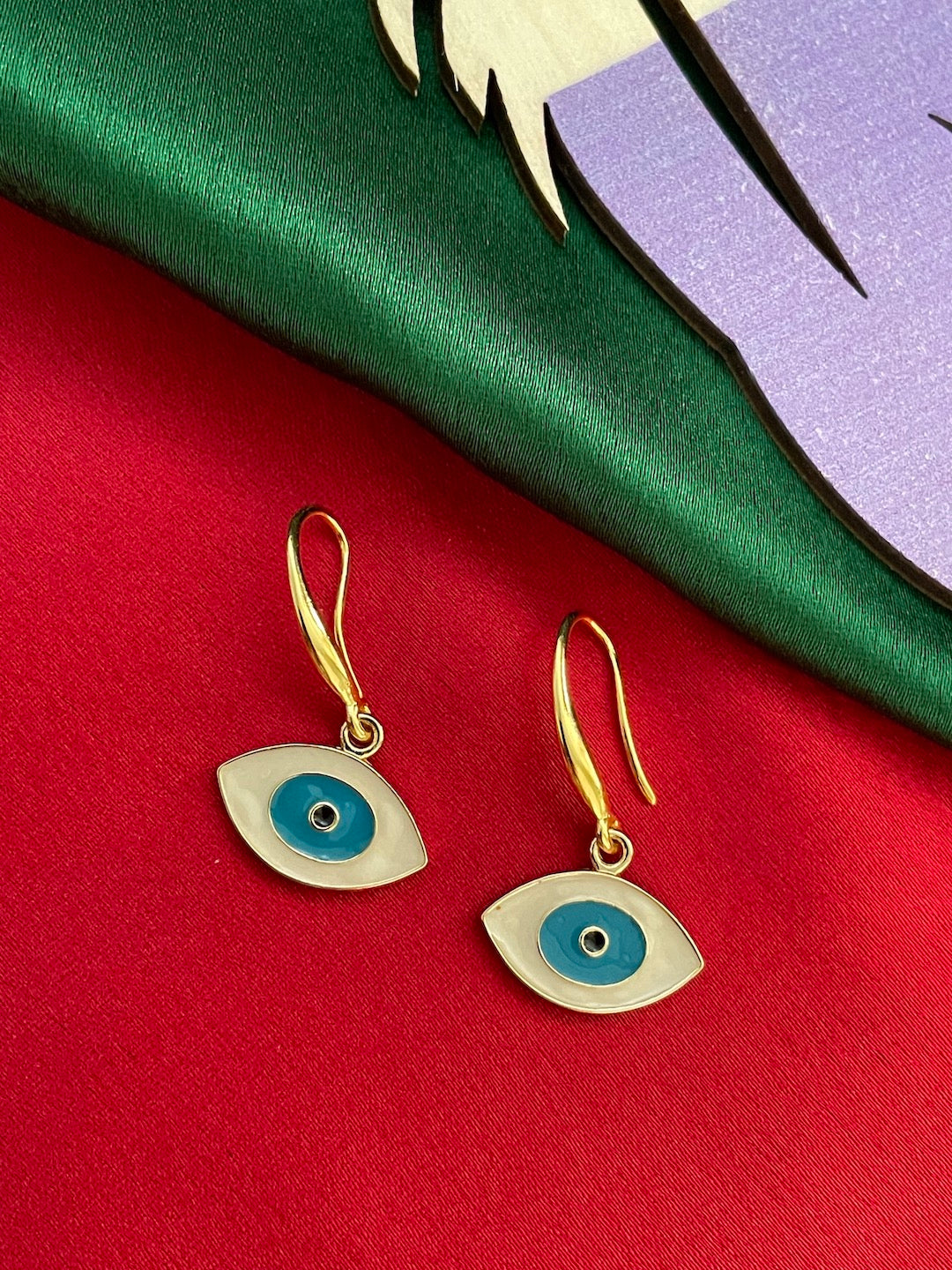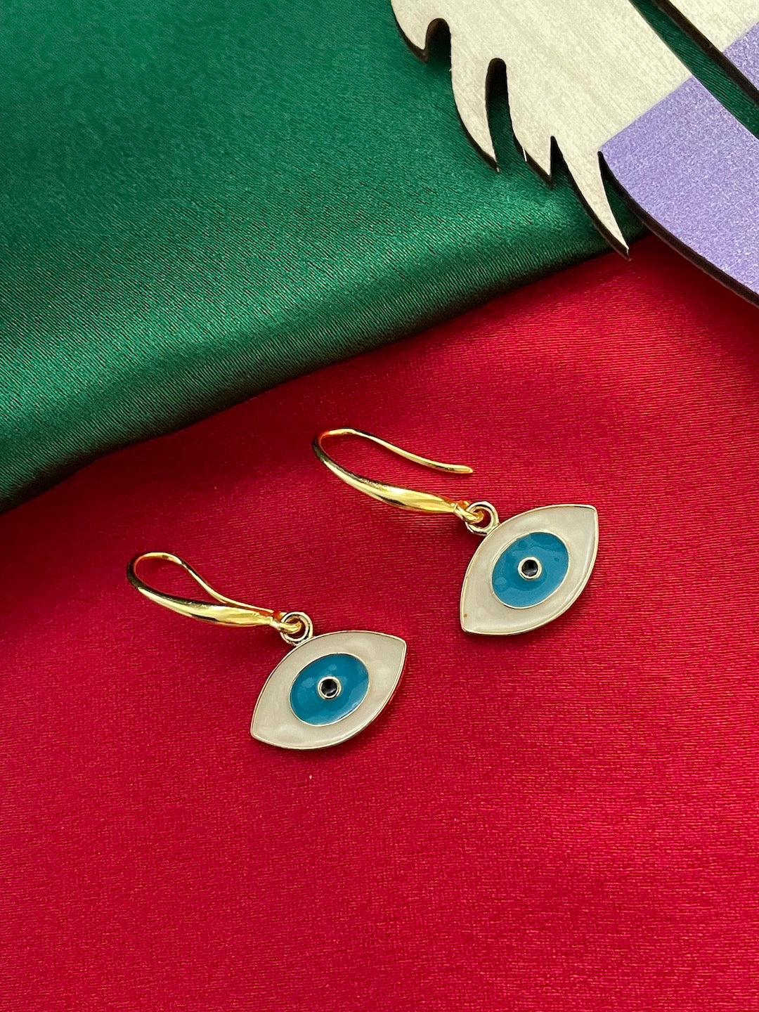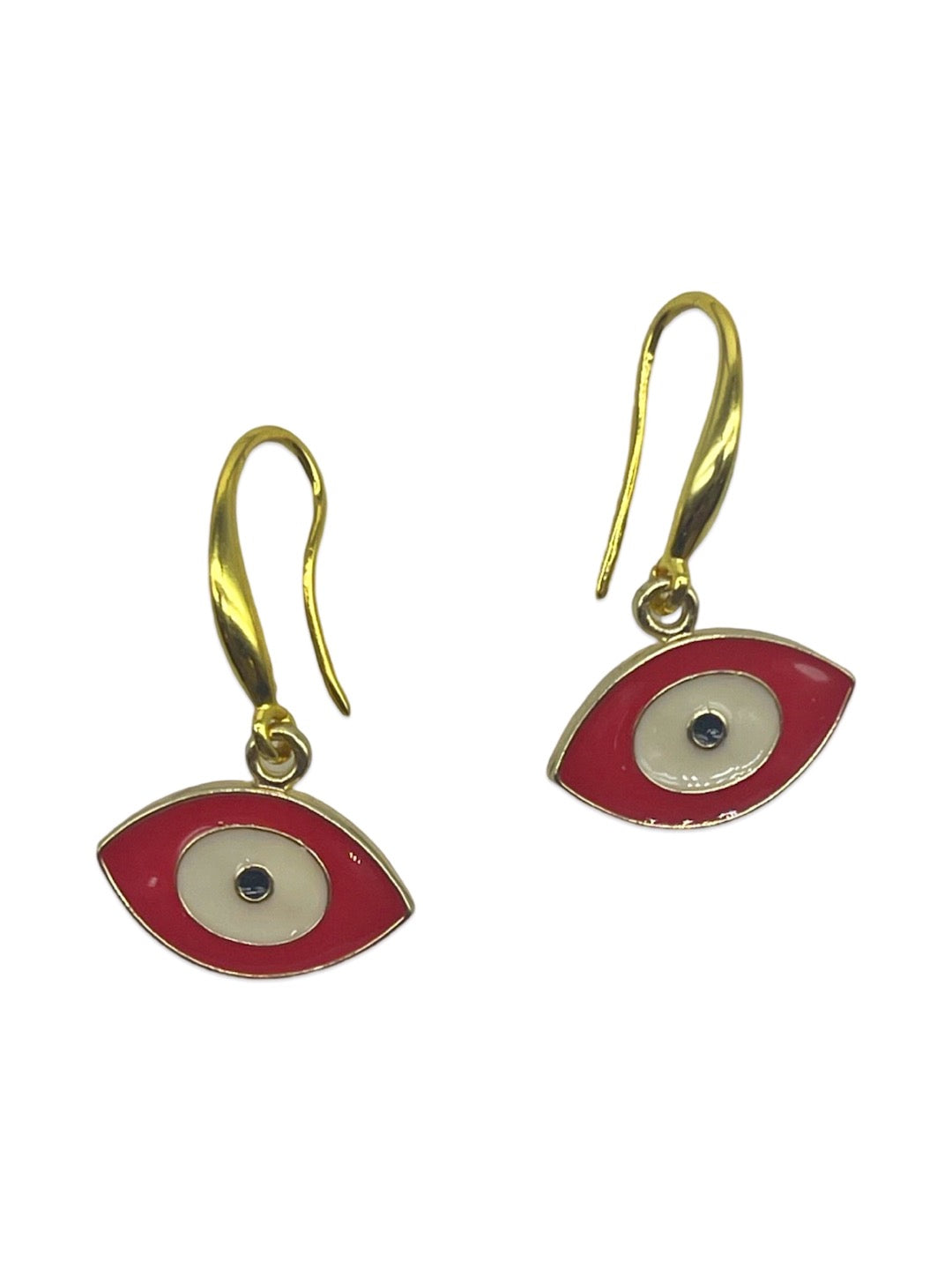 Oval White & Red Evil Eye Dangler Earrings