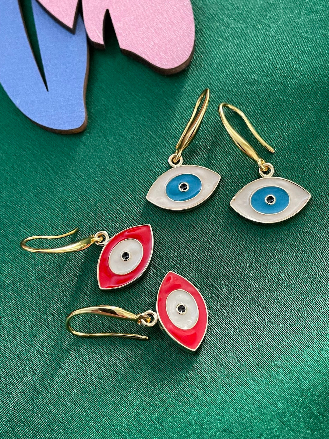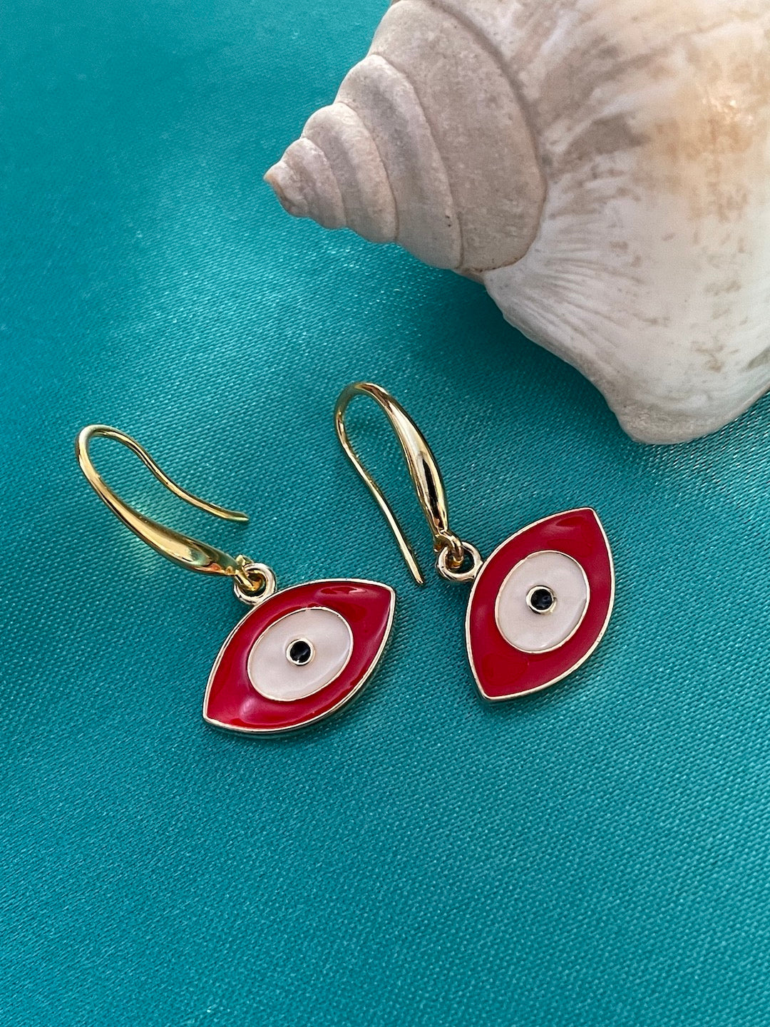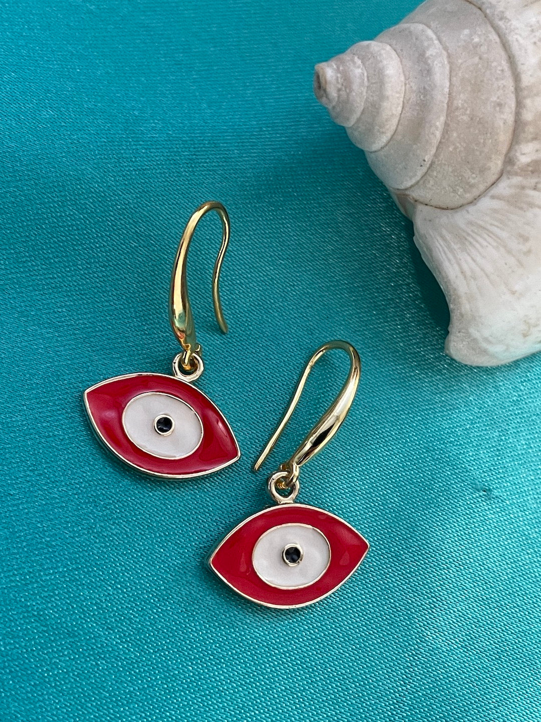Oval White & Red Evil Eye Dangler Earrings