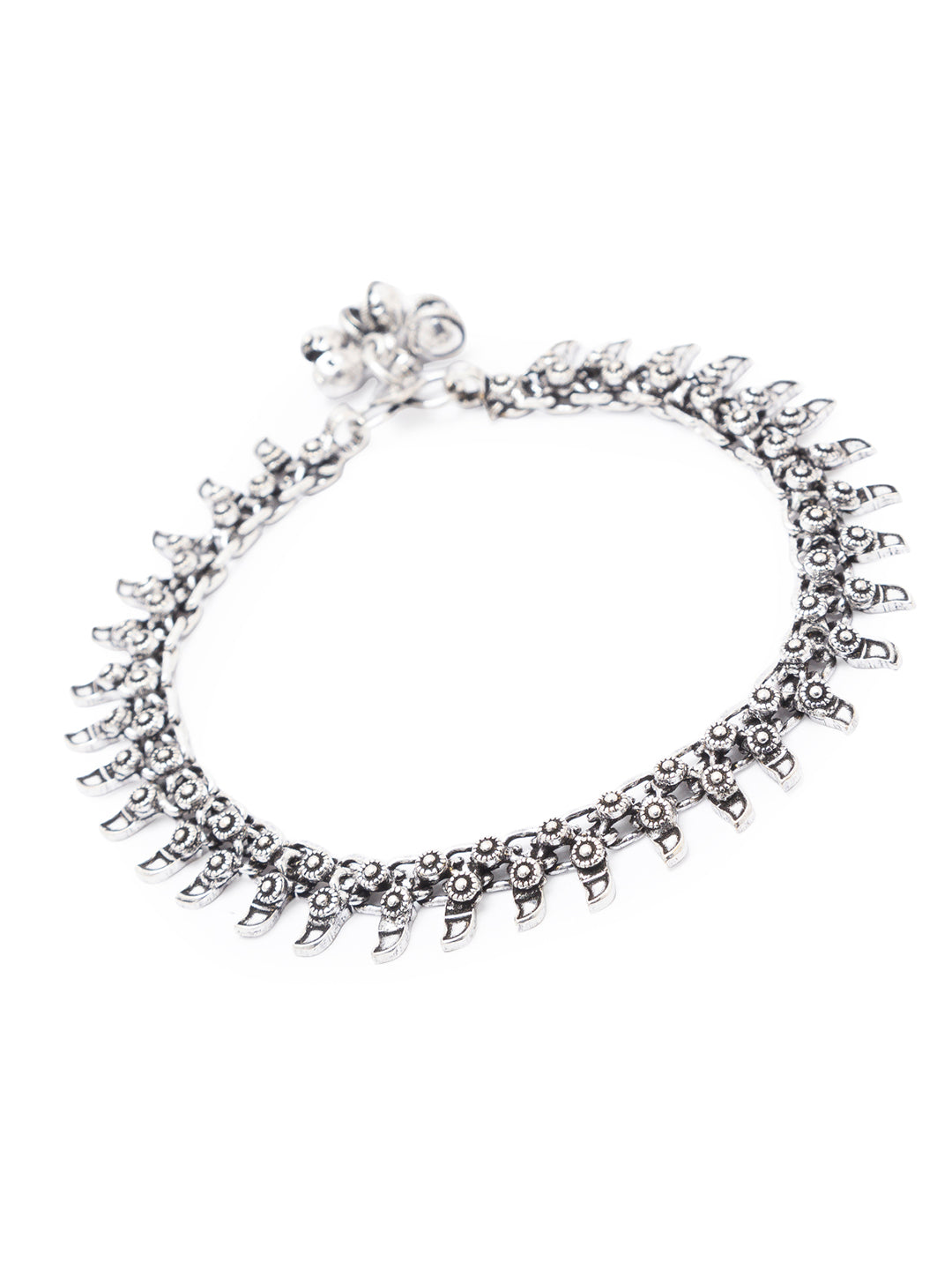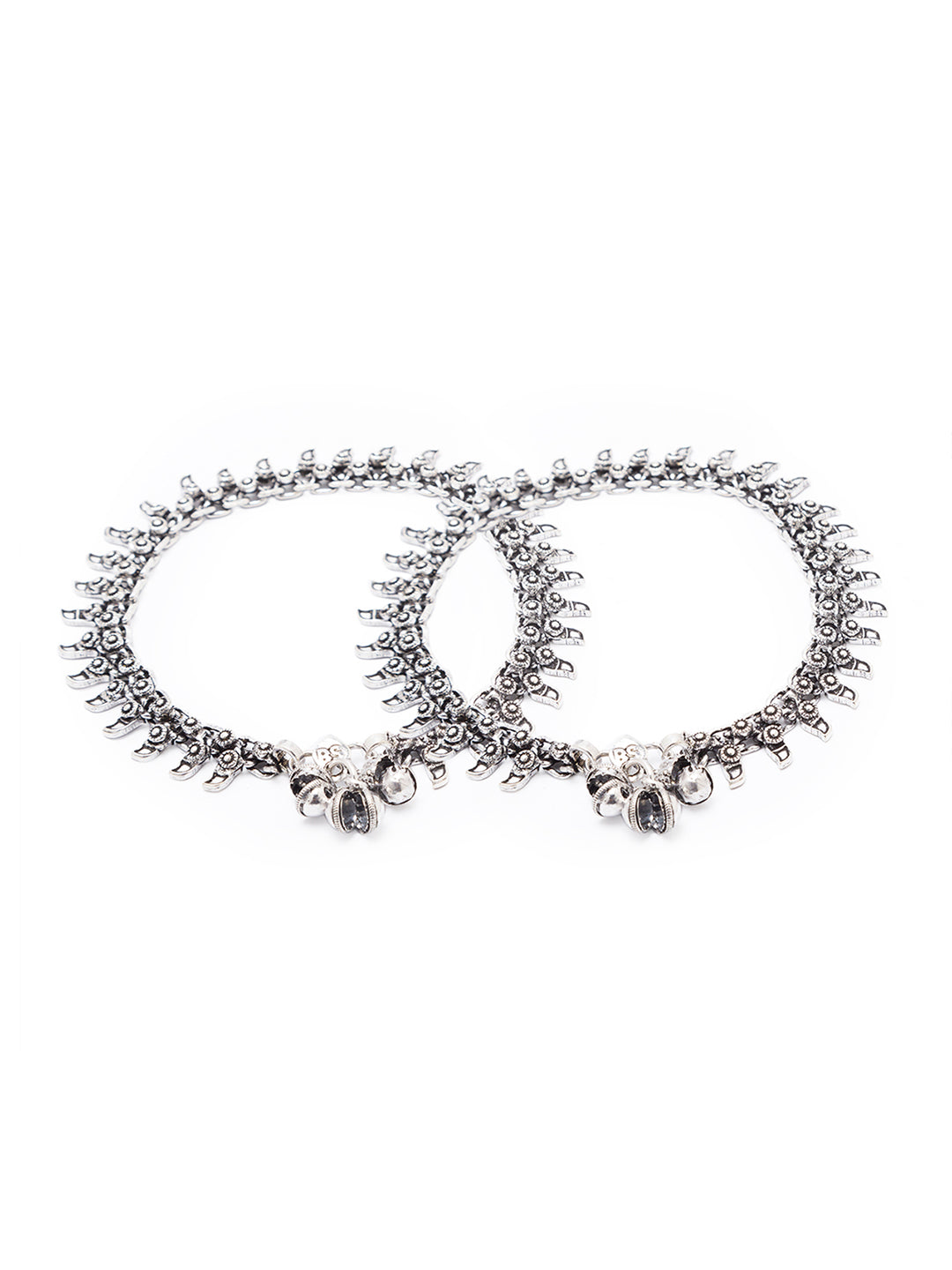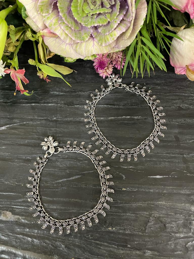 German Oxidised Silver Anklets Ethnic Floral/Leaf Design Payal Silver Plating Ghungroo Foot Jewellery