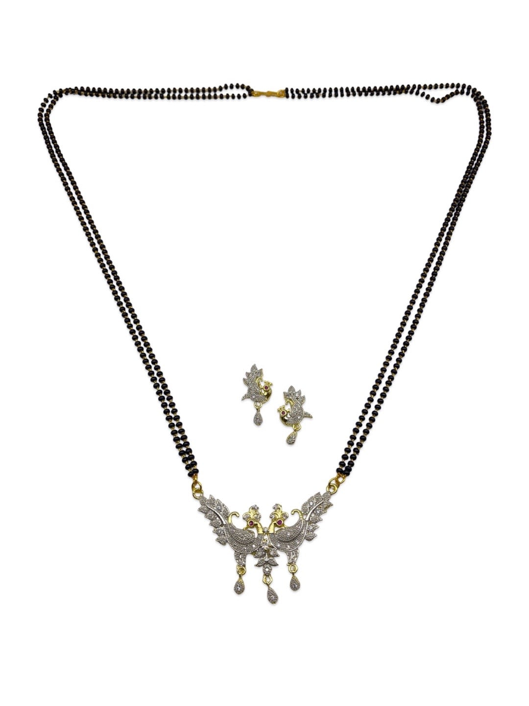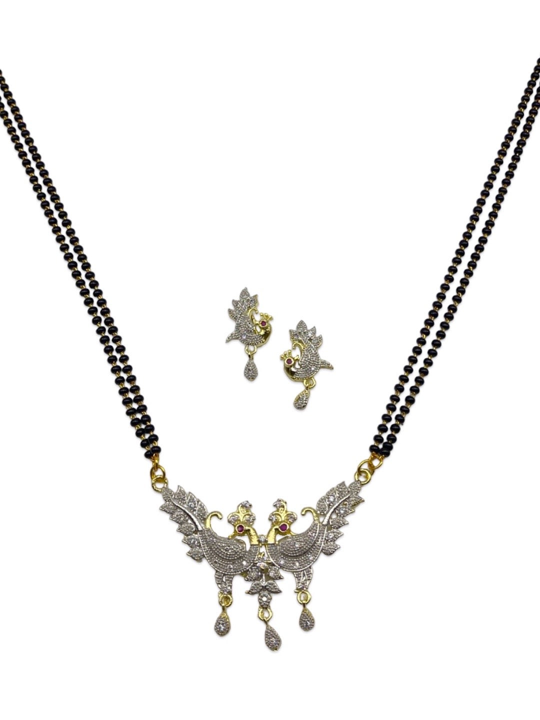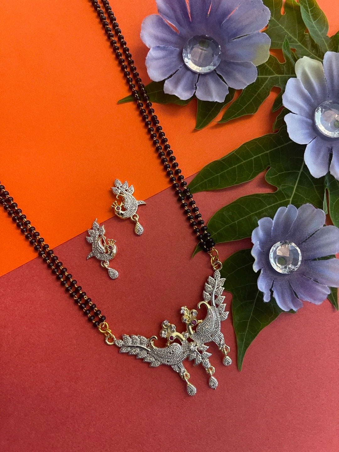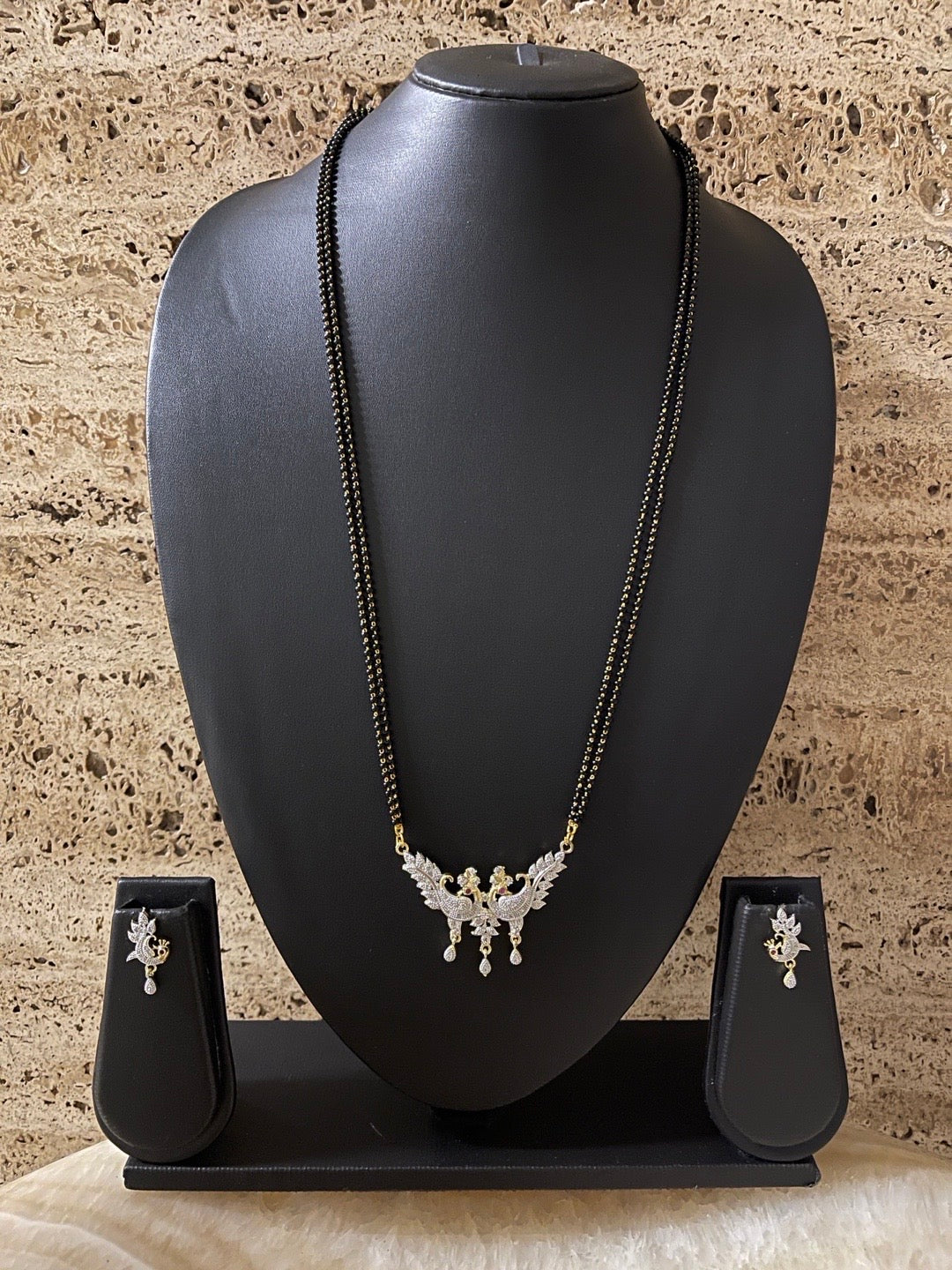 Peacock Pendant American Diamond Long Mangalsutra Design & Earring