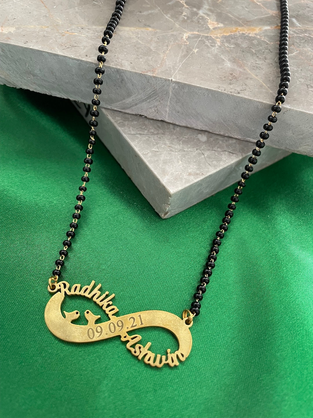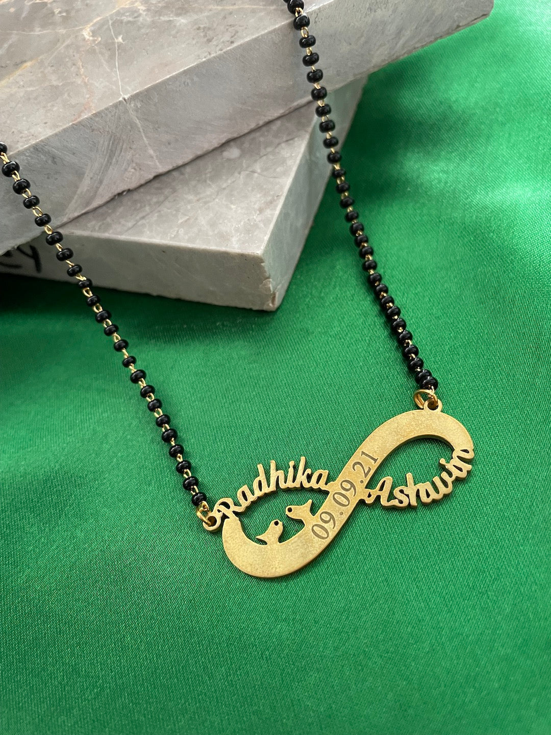 Personalized Infinity Short Mangalsutra With Two Names & Engraved Date