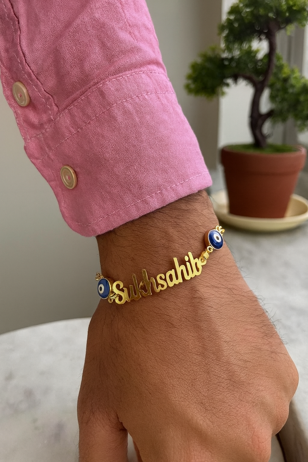 Personalized Name Bracelet in Gold Plated Chain with Evil Eye