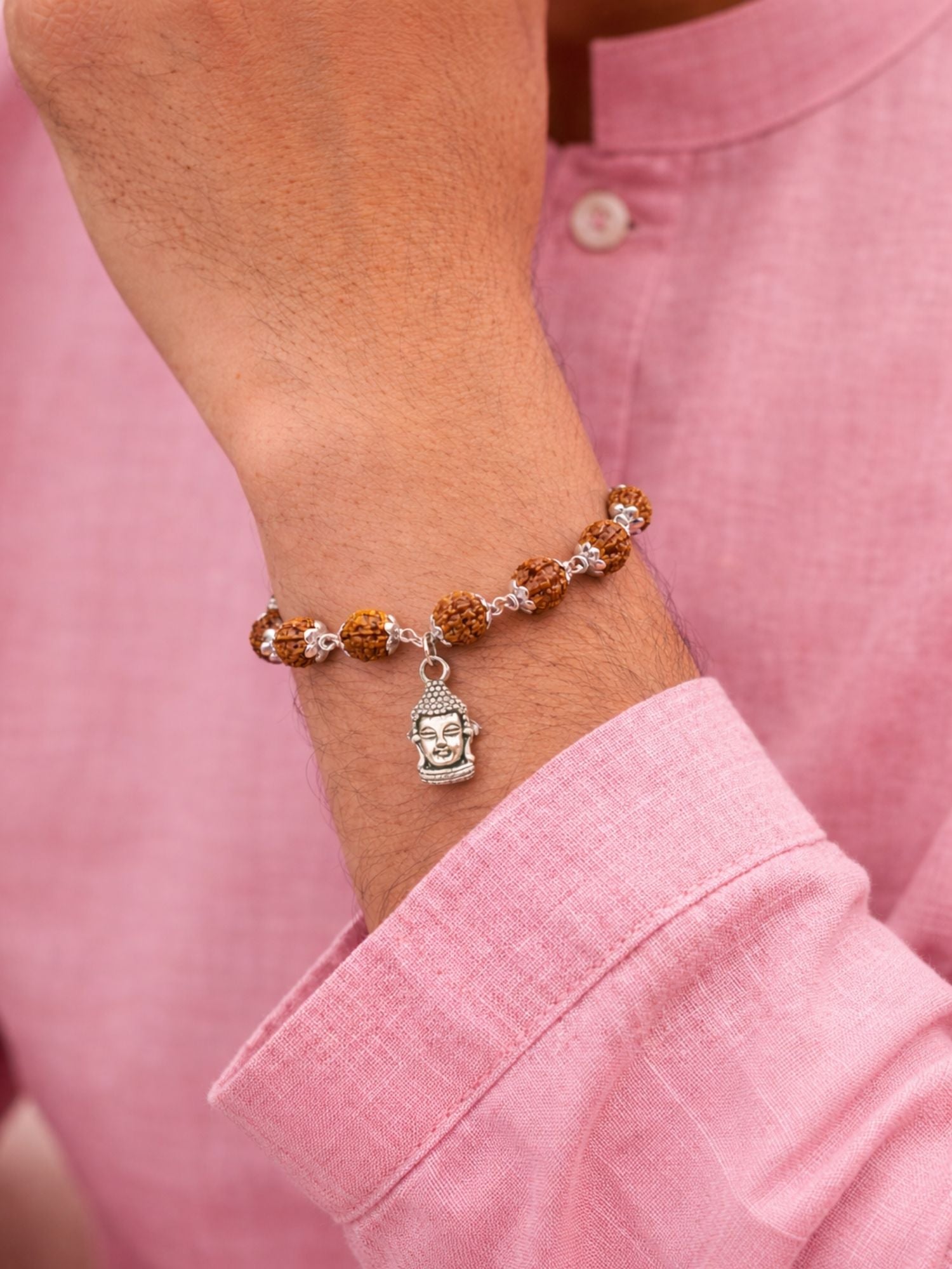 Rudraksha Rakhi Bracelet for Men with Buddha Charm