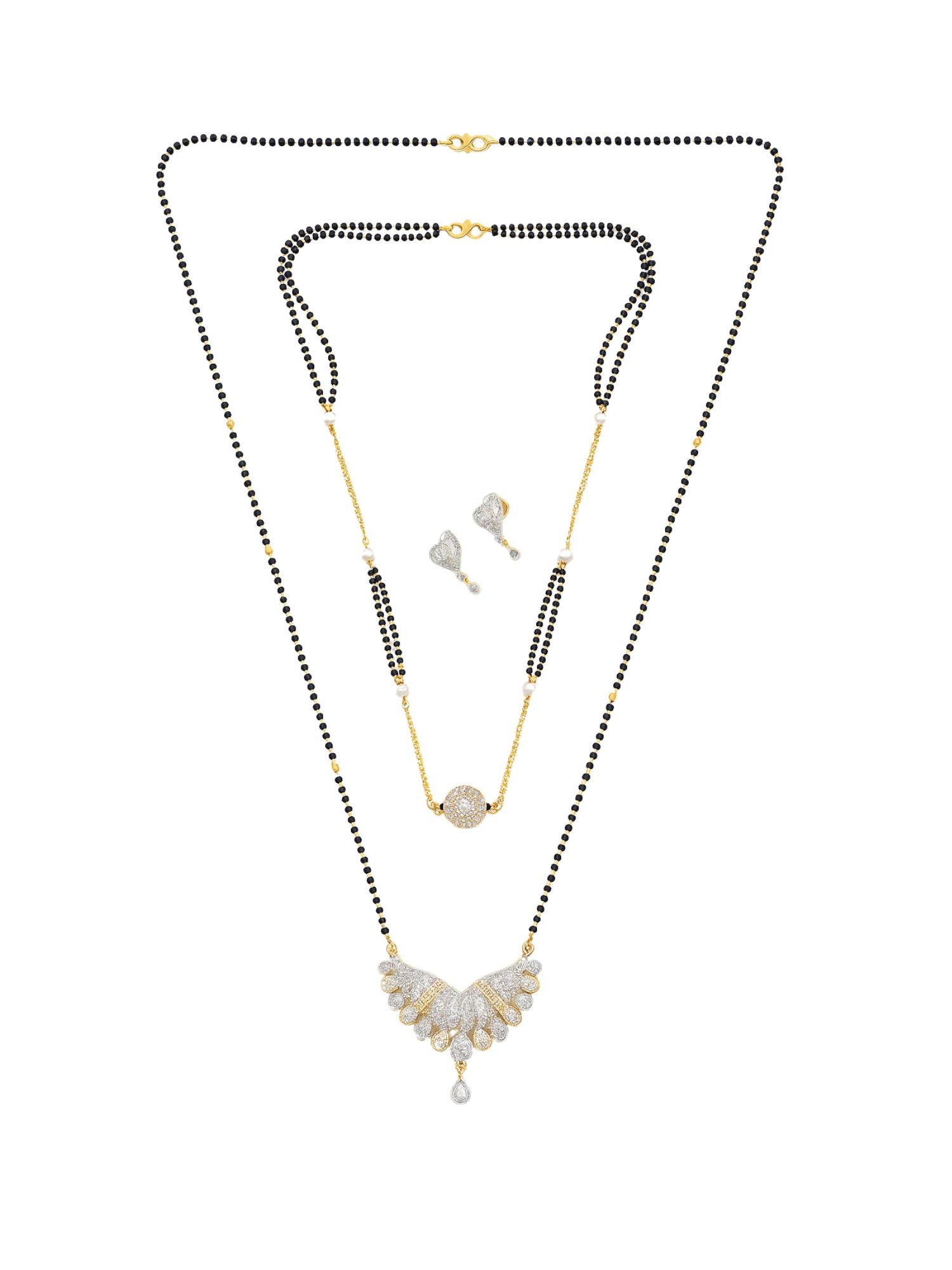 Set of 2 Gold Plated Long & Short Mangalsutra with Earrings
