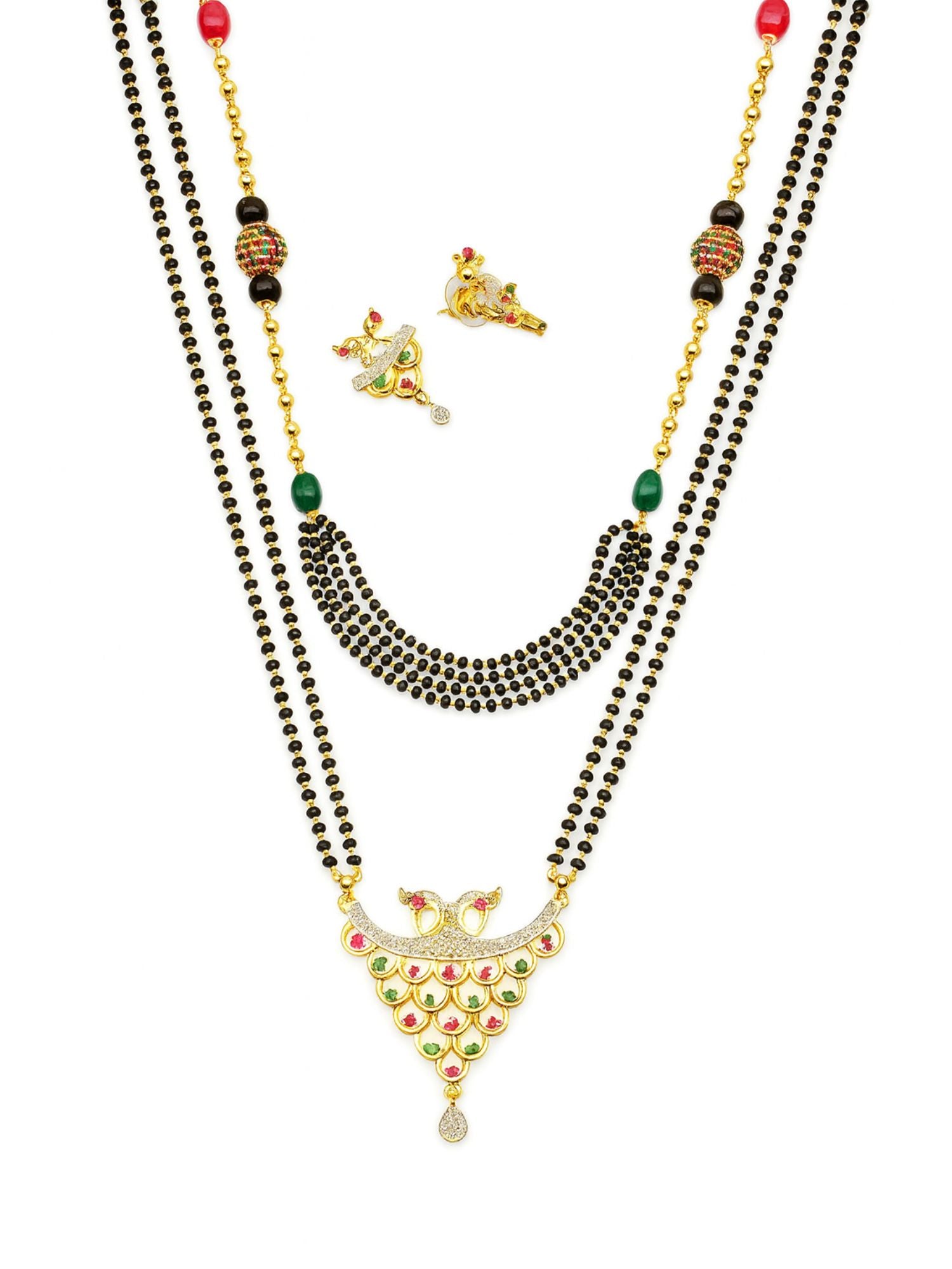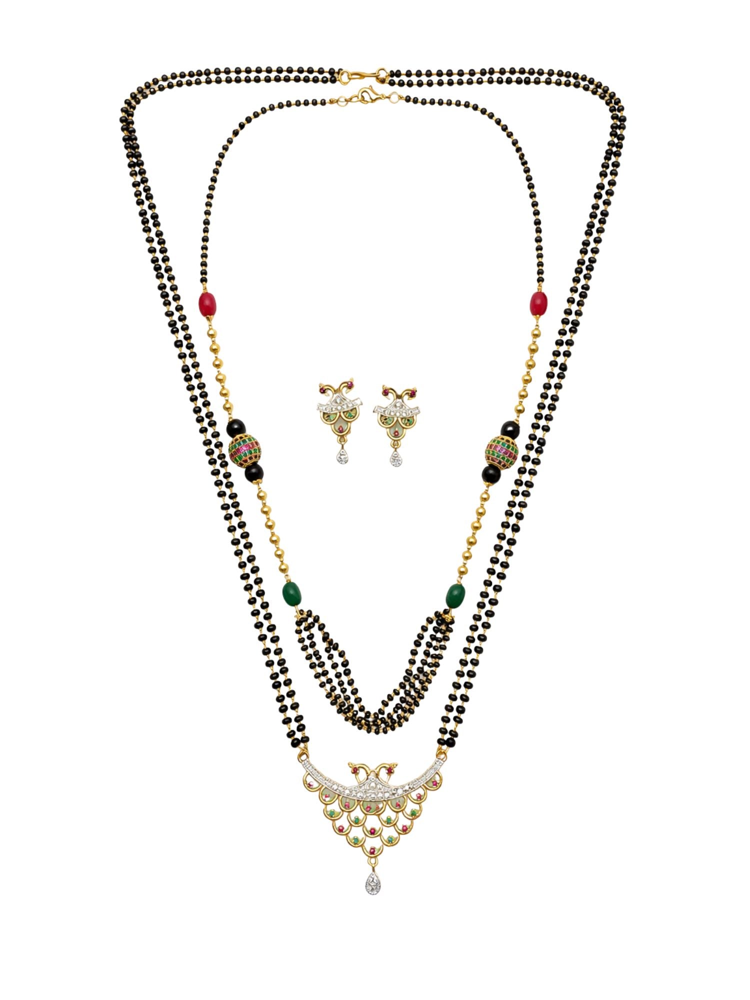 Set of 2 Gold Plated Long & Short Mangalsutra with Earrings