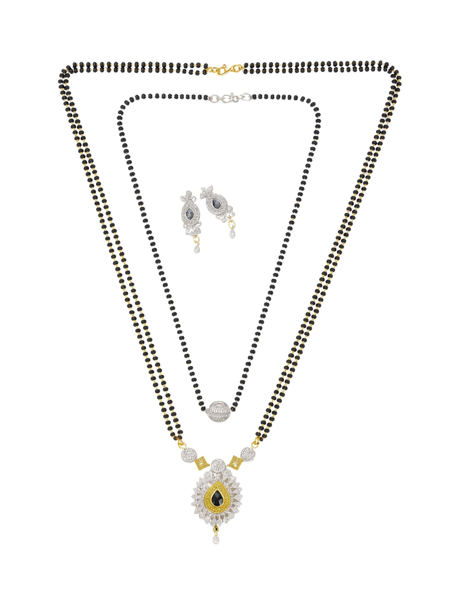 Set of 2 Gold Plated Long & Short Mangalsutra with Earrings
