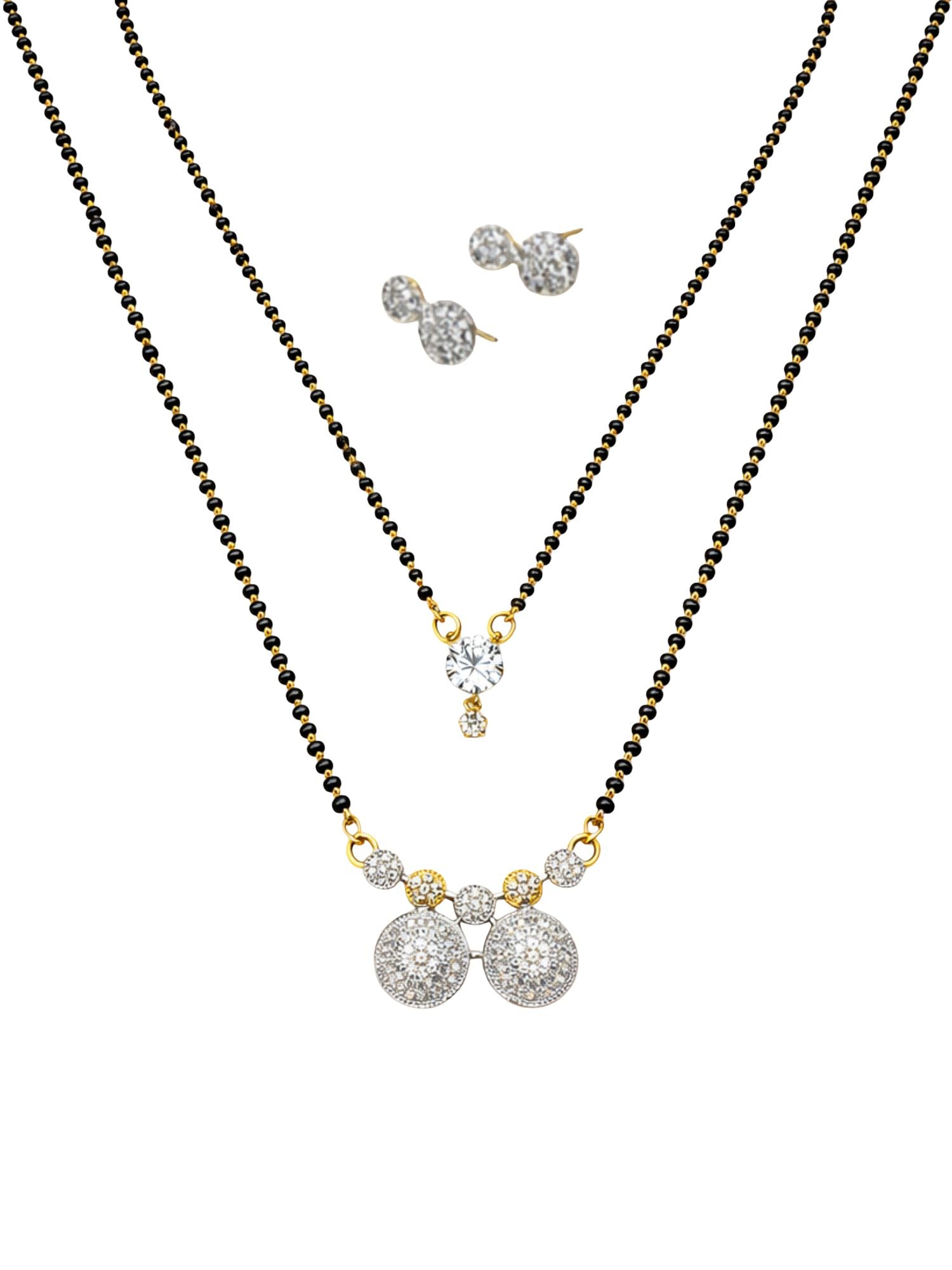 Set of 2 Long & Short Mangalsutra with Earrings