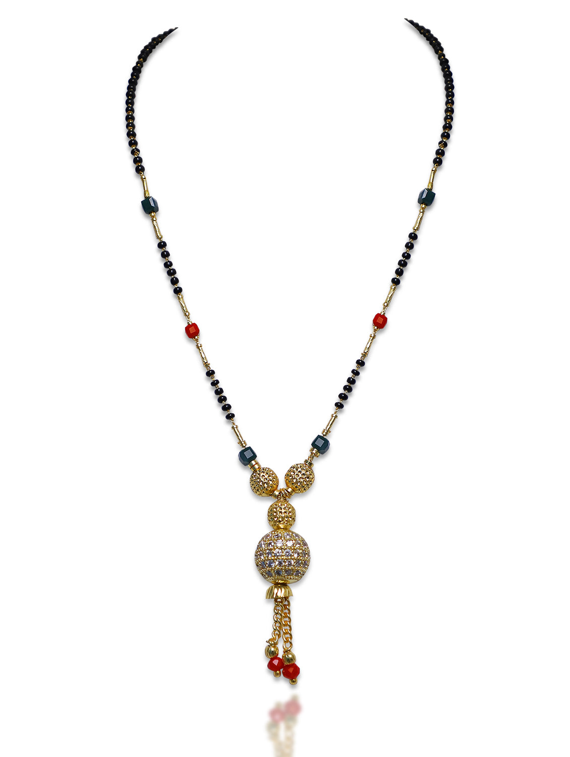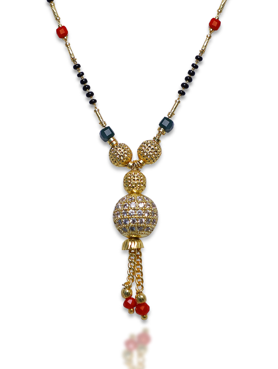 Short Mangalsutra Designs Gold Plated मंगळसूत्र Black Red Green Beads Latkan Pendant (20 Inches)