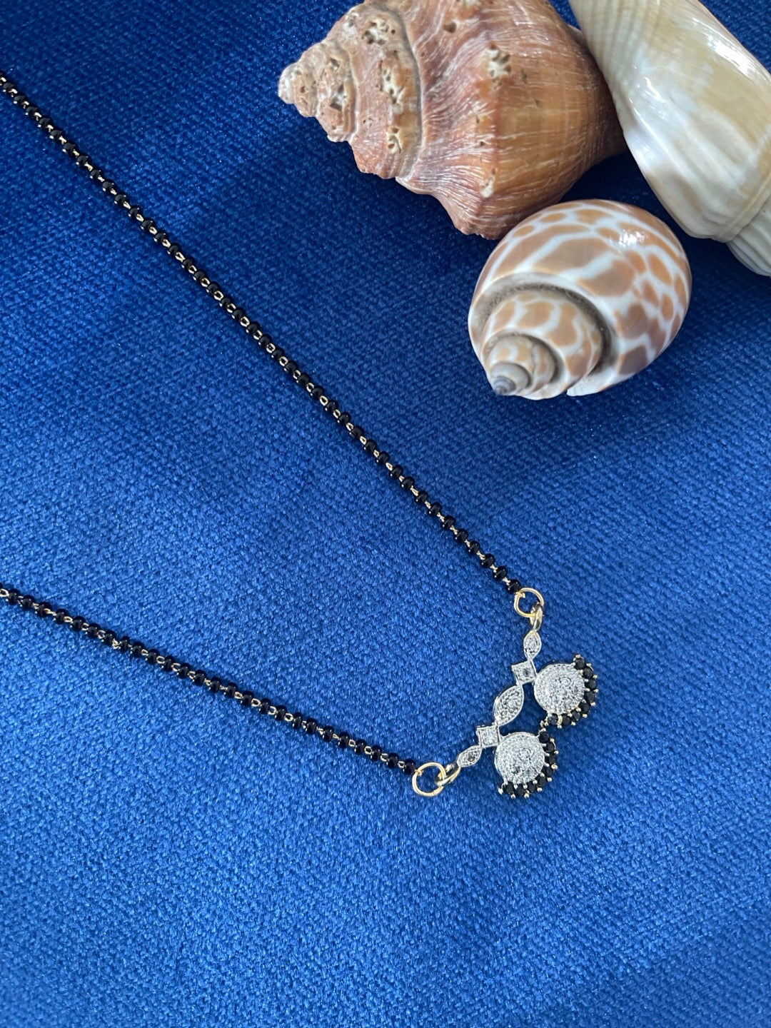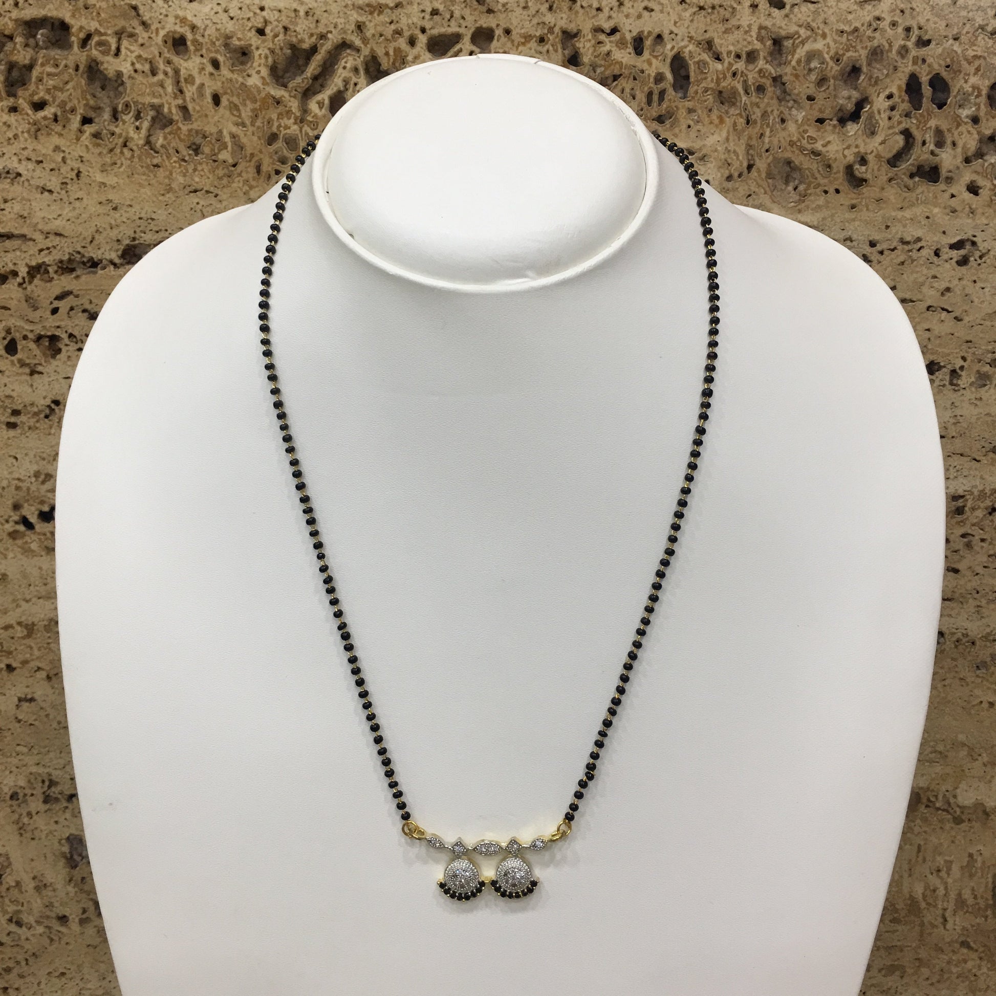 Short Mangalsutra Designs Gold Plated Latest American Diamond 2 Round Vati Pendant Mangalsutra