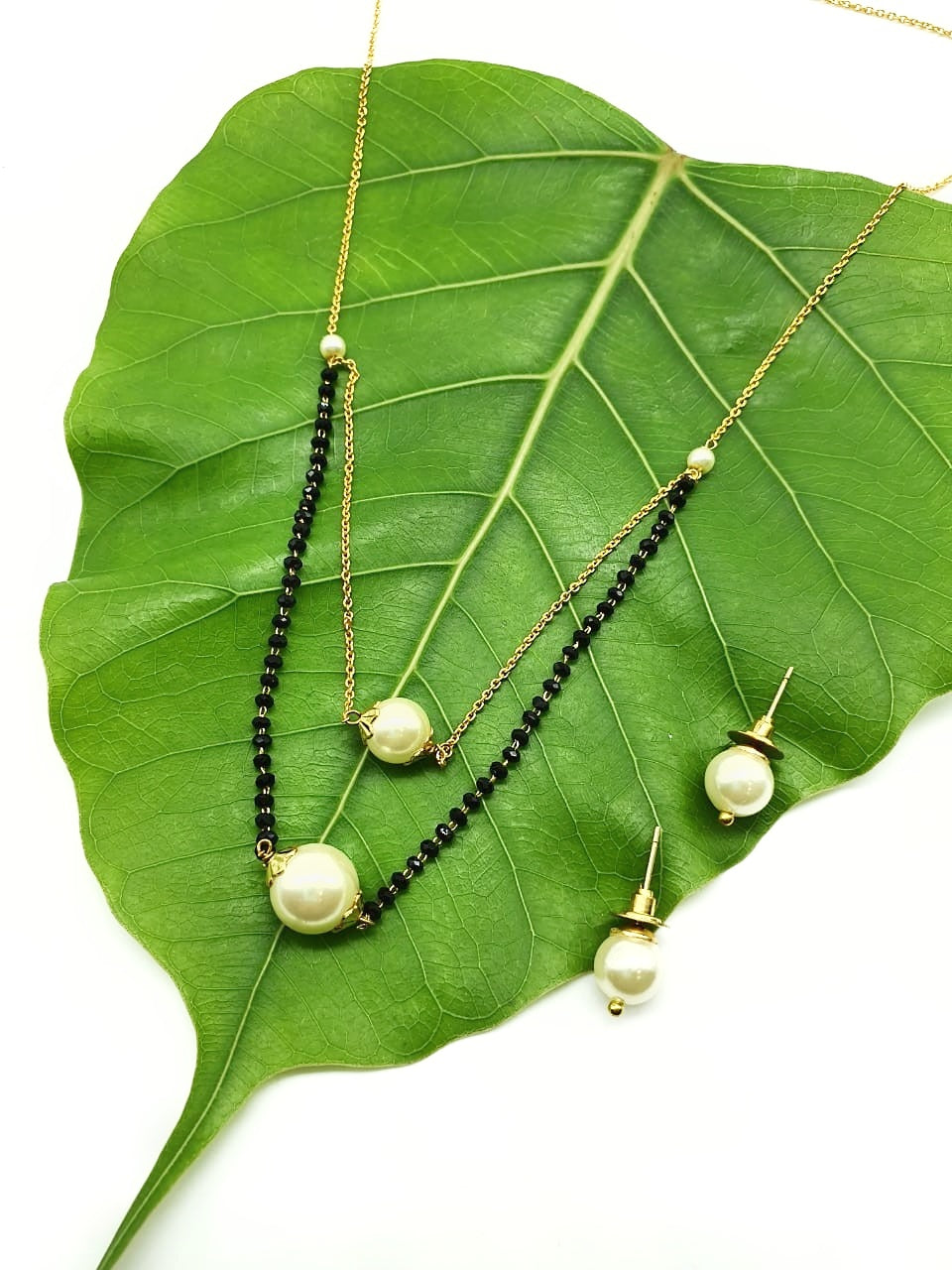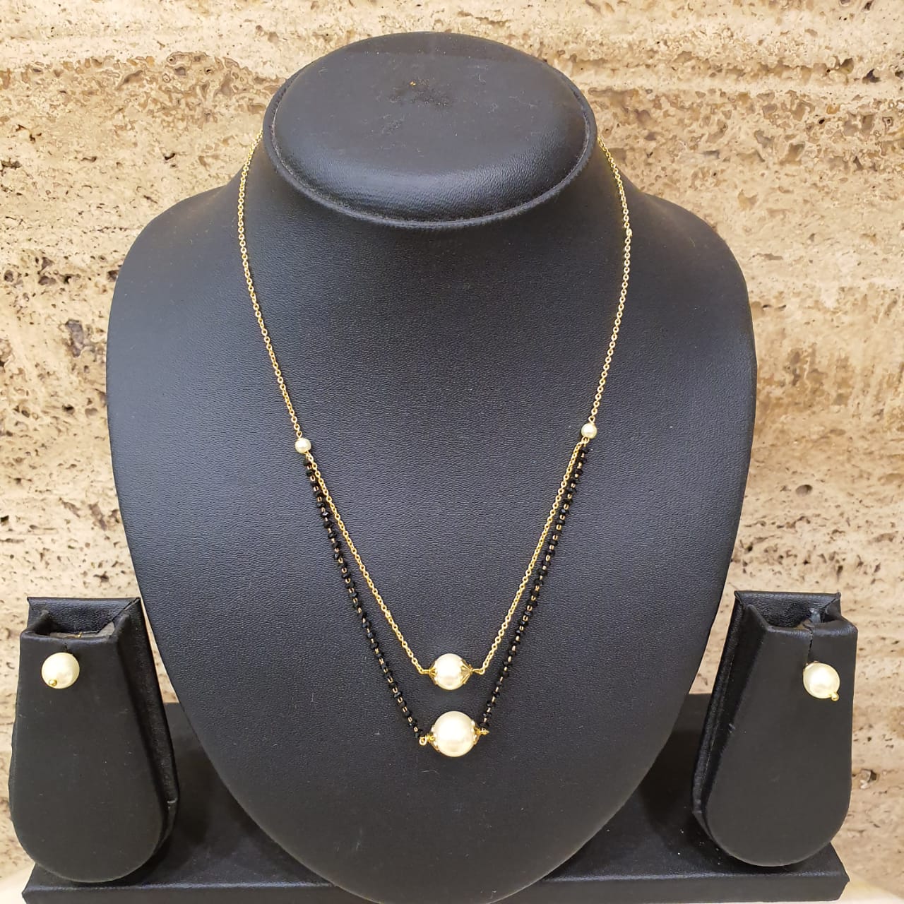 Short Mangalsutra Designs Gold Plated Latest White Pearl 2 Layer Mangalsutra & Earrings