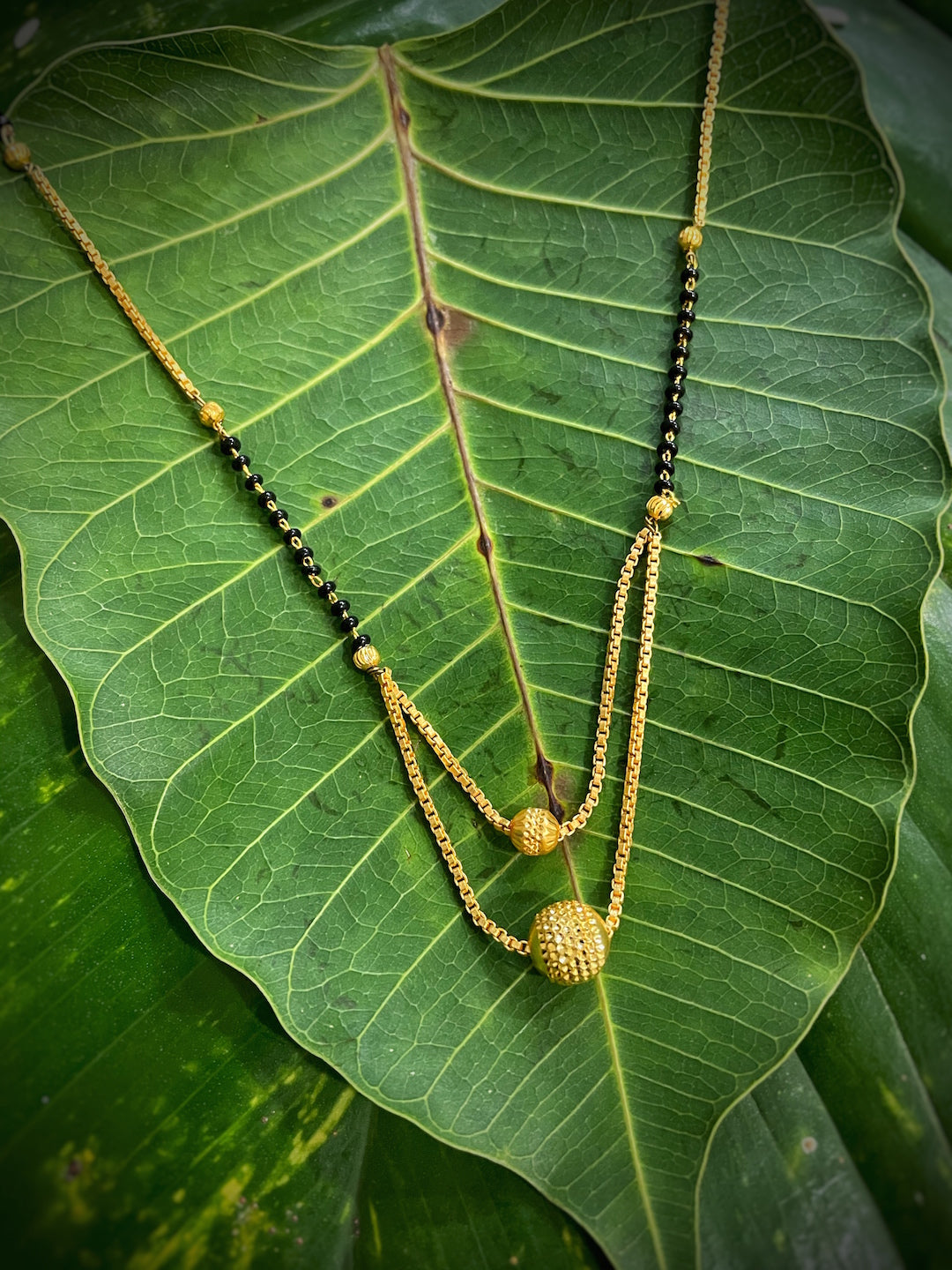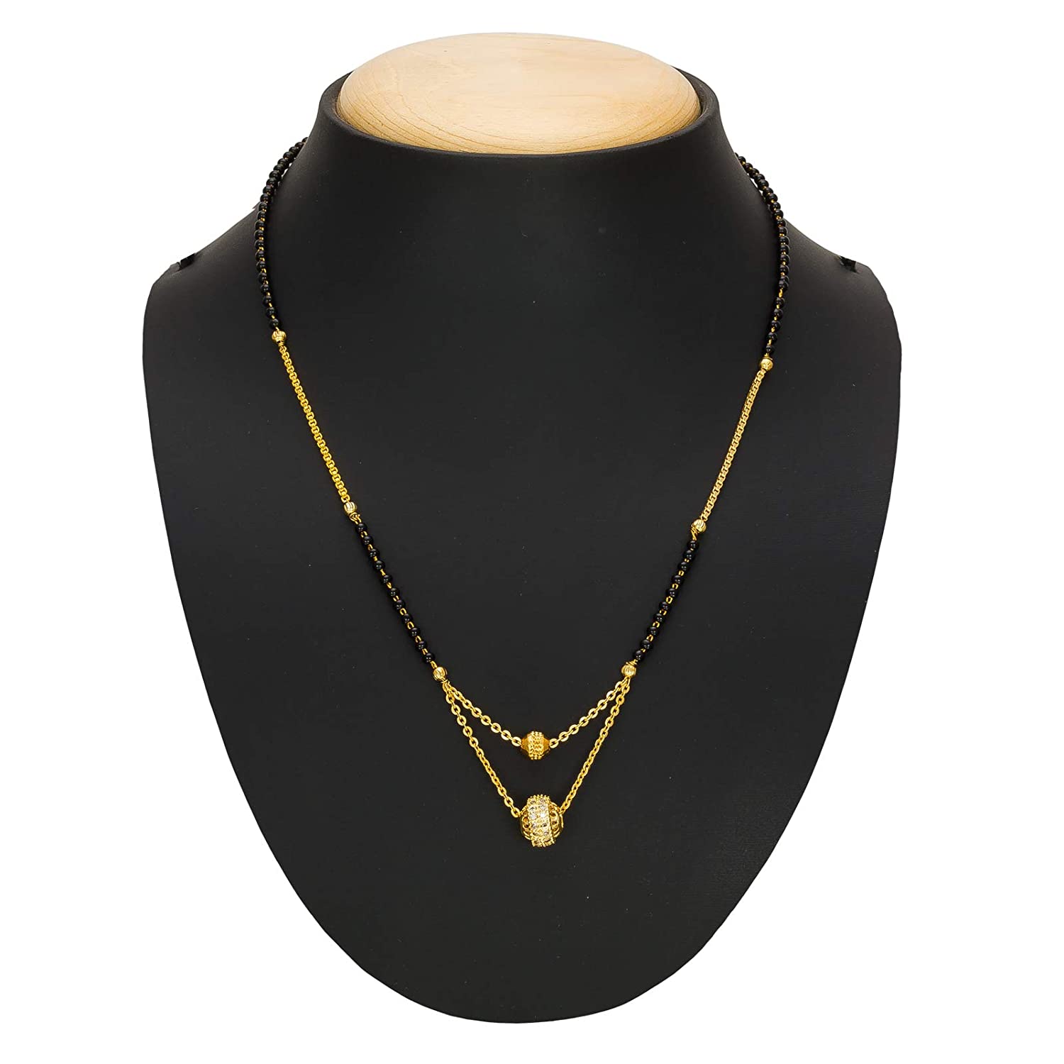 Short Mangalsutra Designs Sphere Shape Gold Plated with Double Strands Chain Pendant (18 Inches)