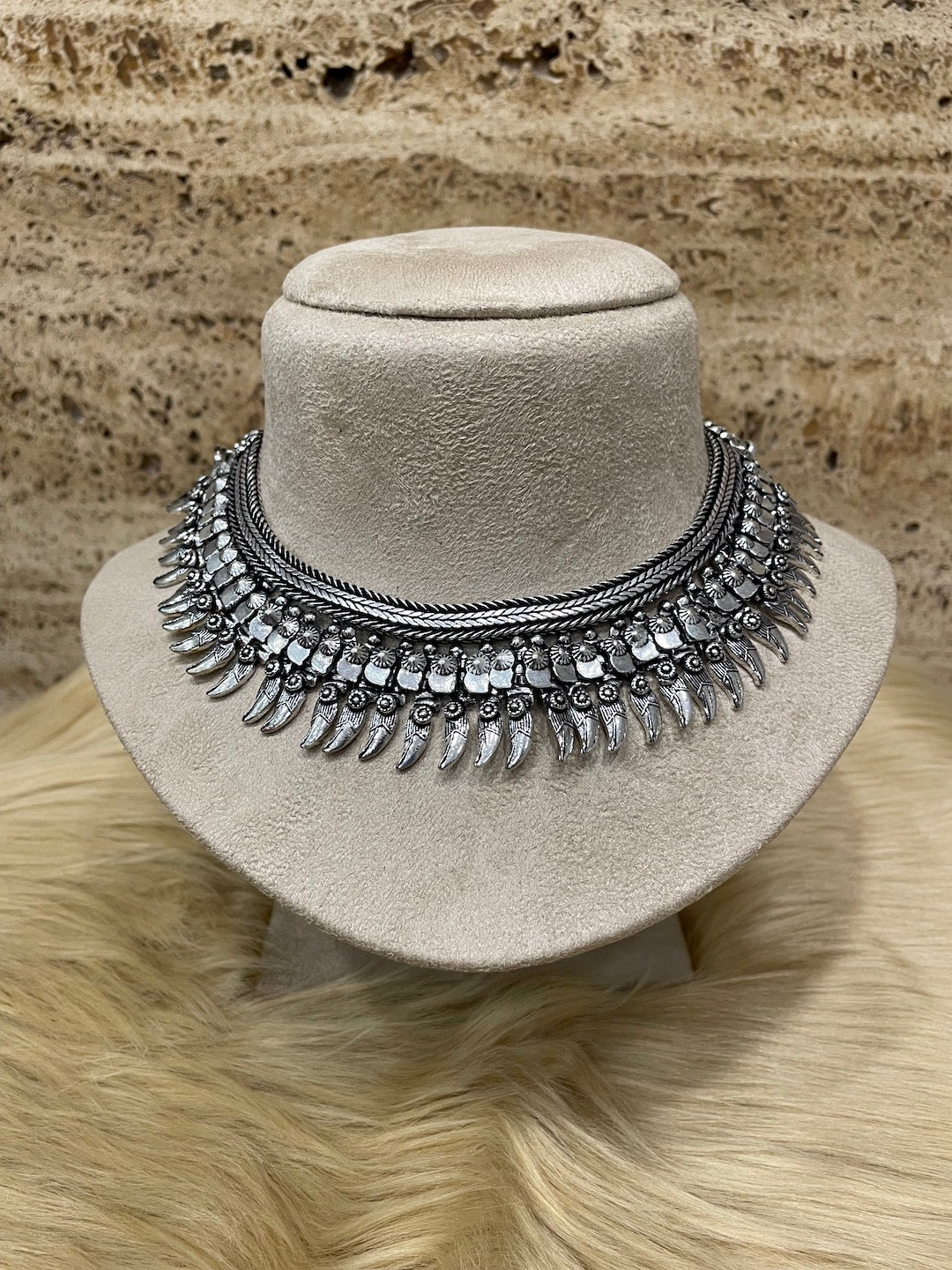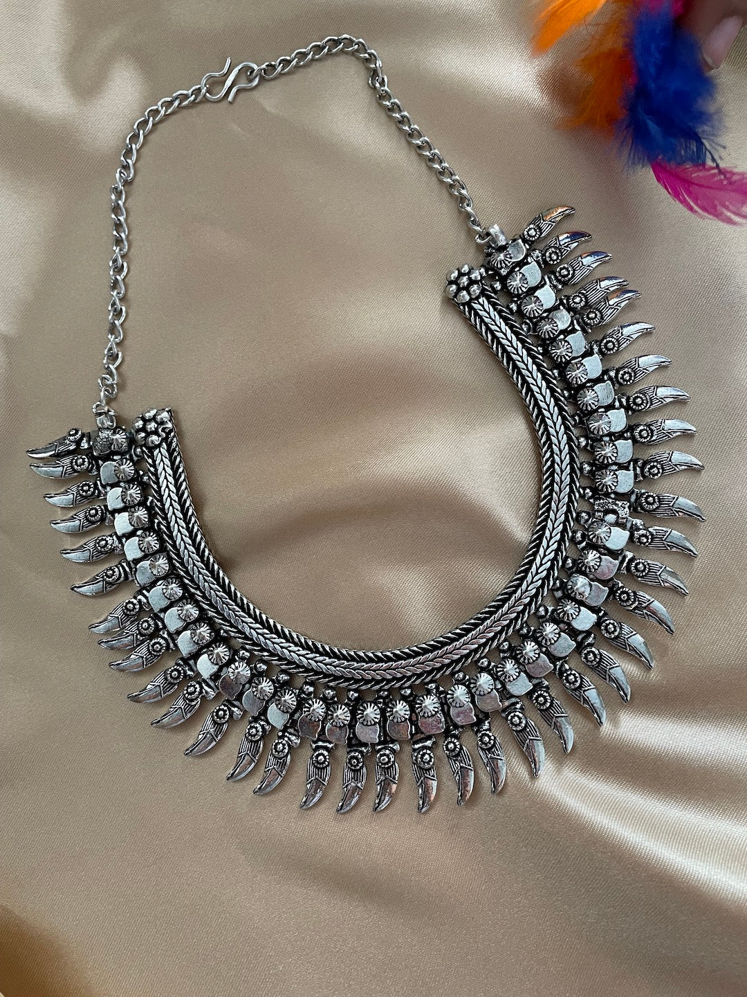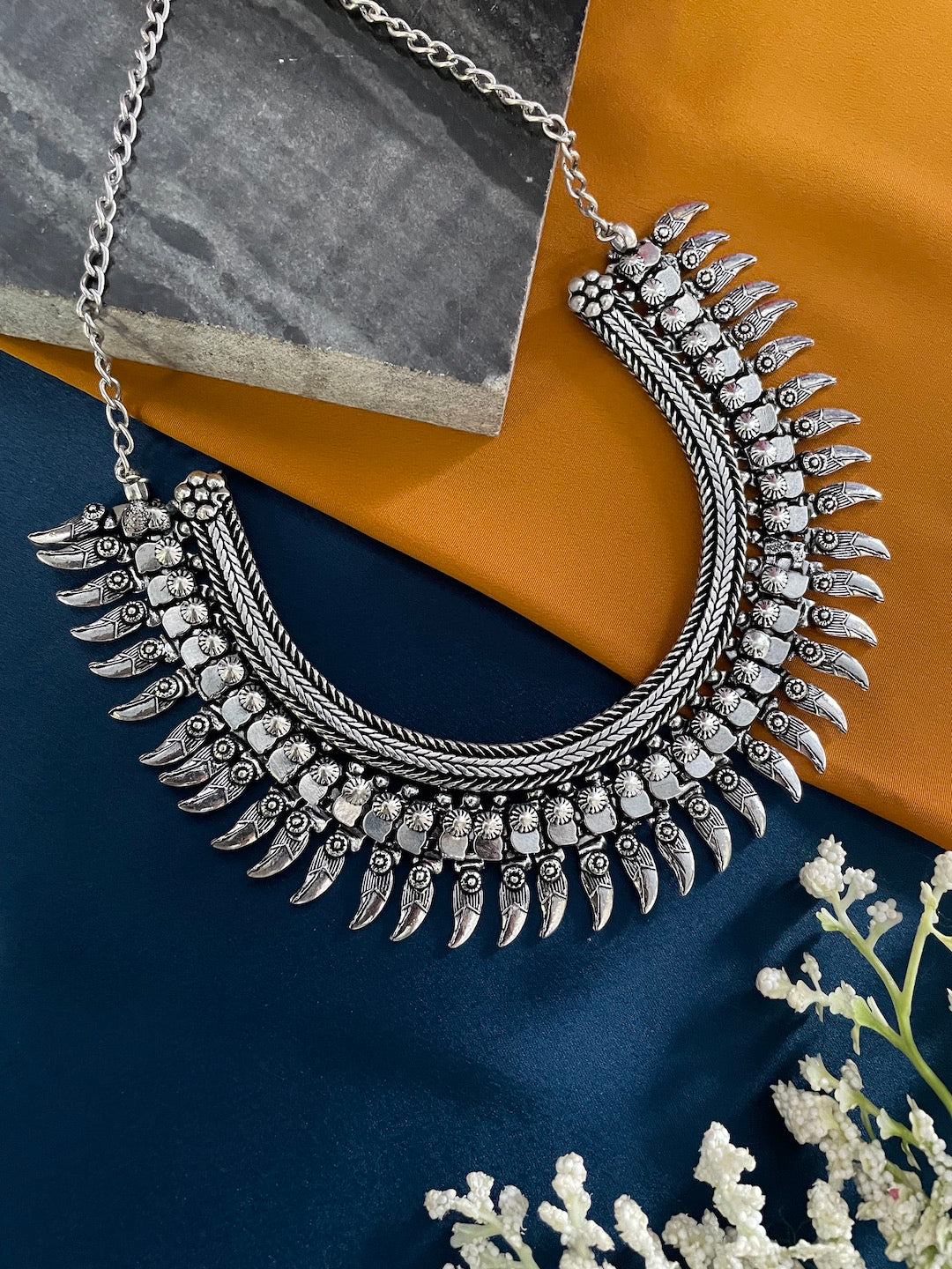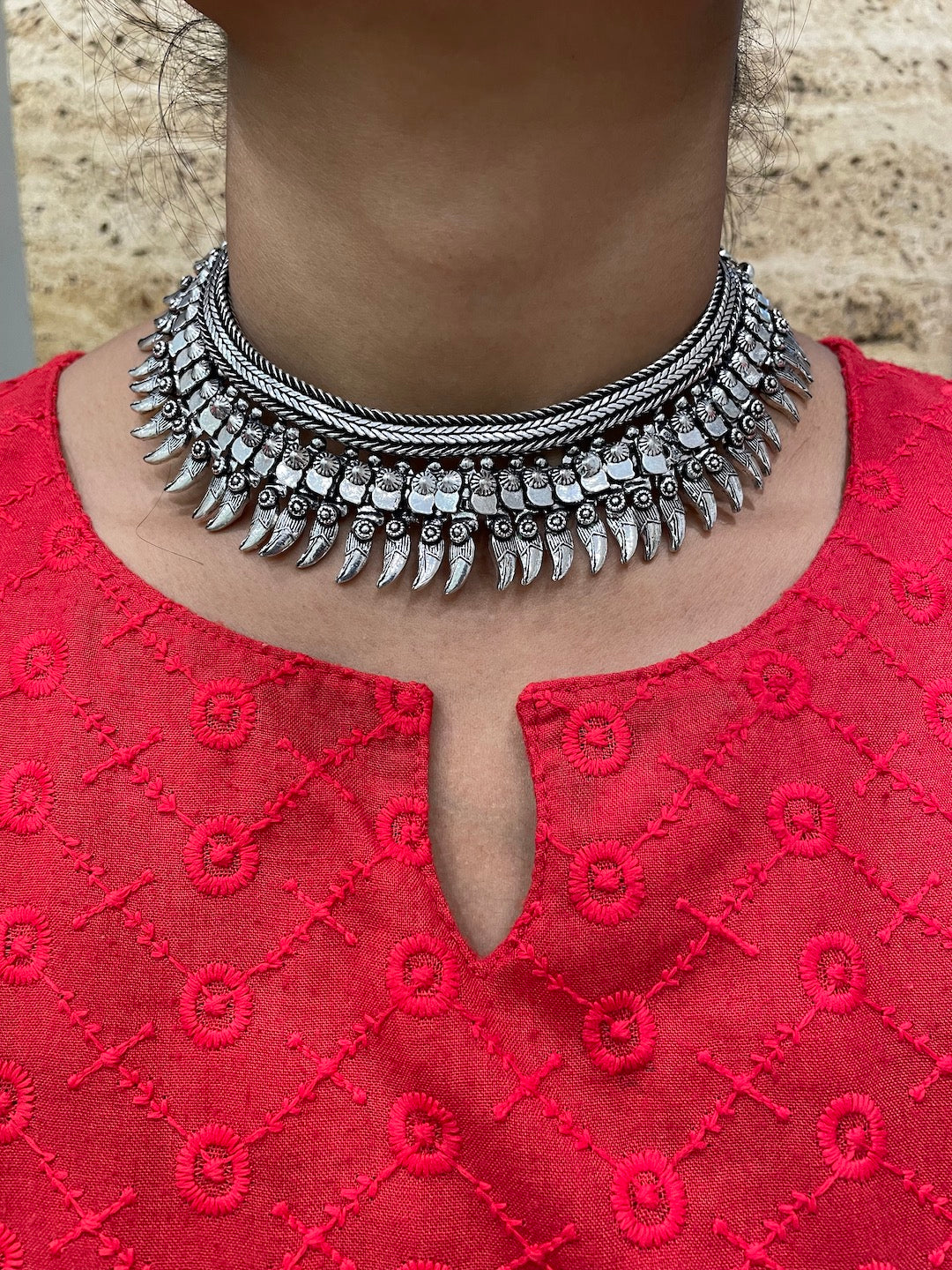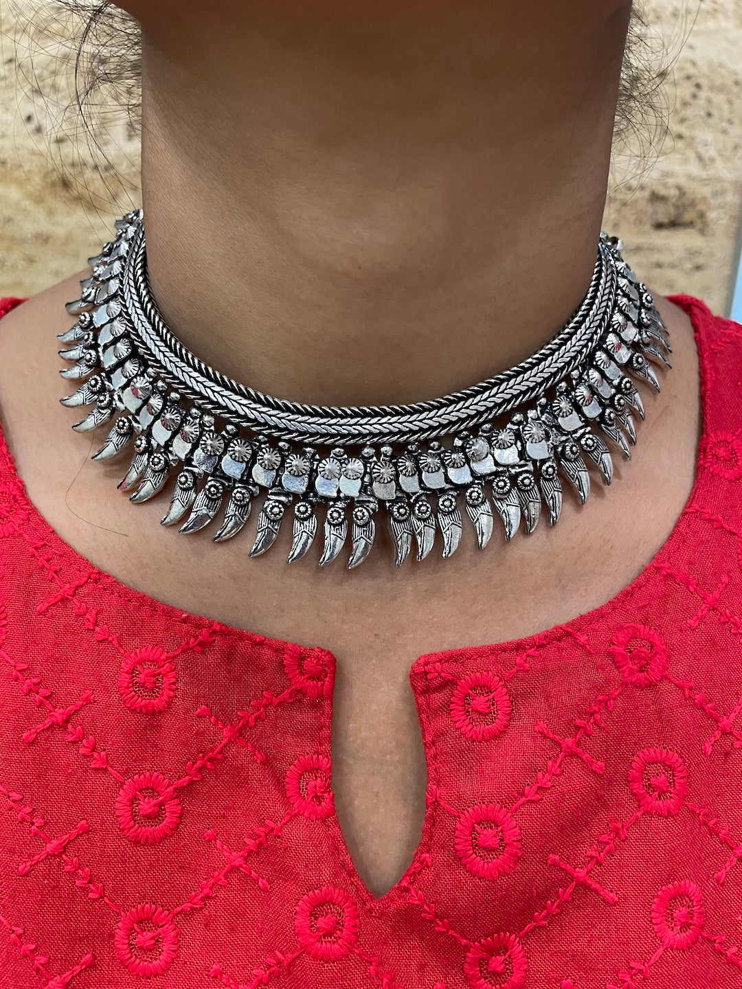 Silver Choker Necklace Leaf Design