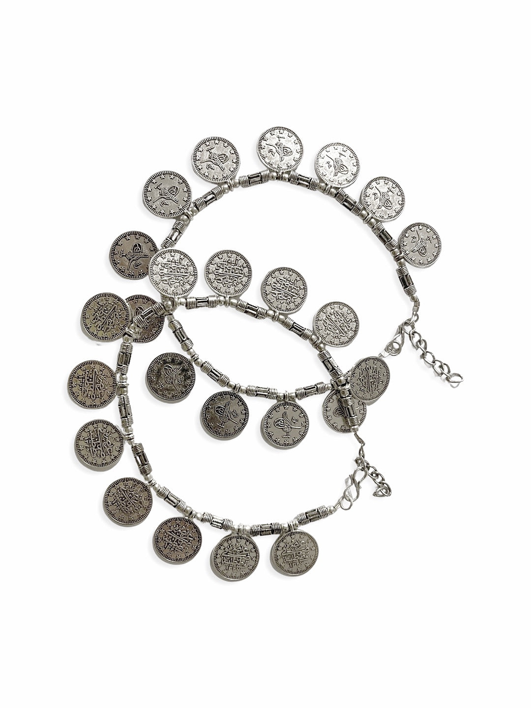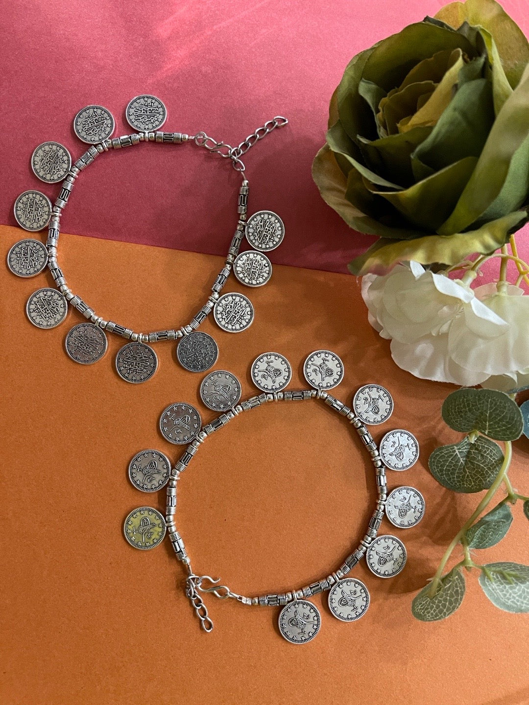 German Oxidised Silver Anklets Engraved Arabic Payal Design Silver Plating With Beads Foot Jewellery