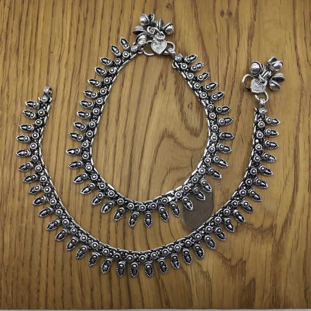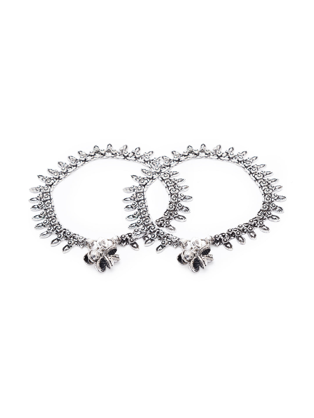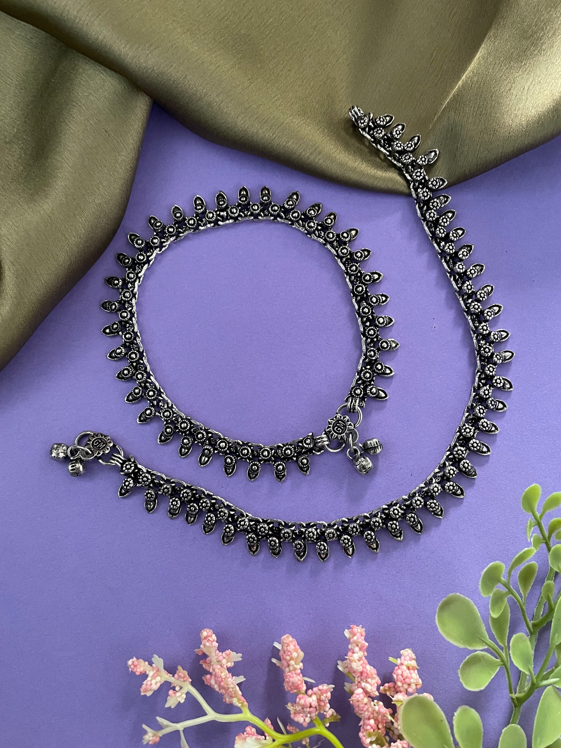 German Oxidised Silver Anklets Floral/Drop Leaf Design Payal Silver Plating Ghungroo Foot Jewellery