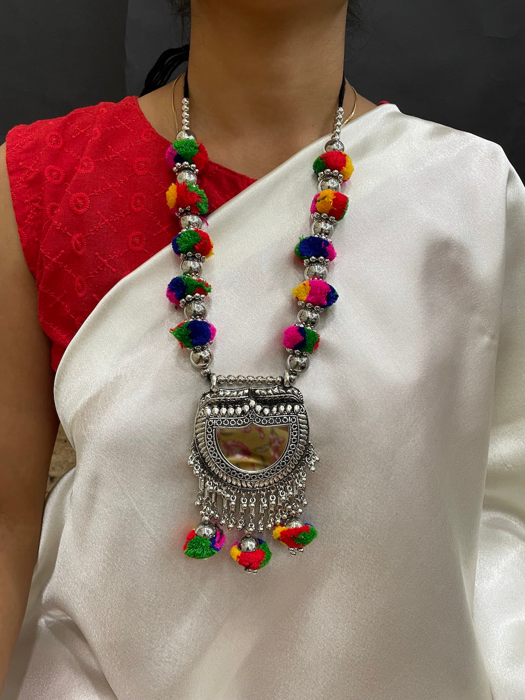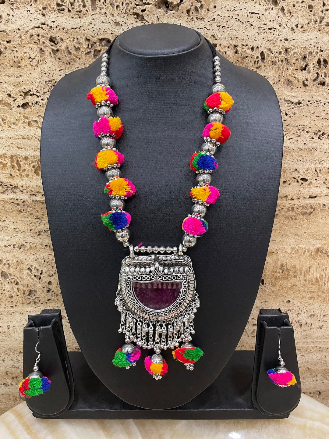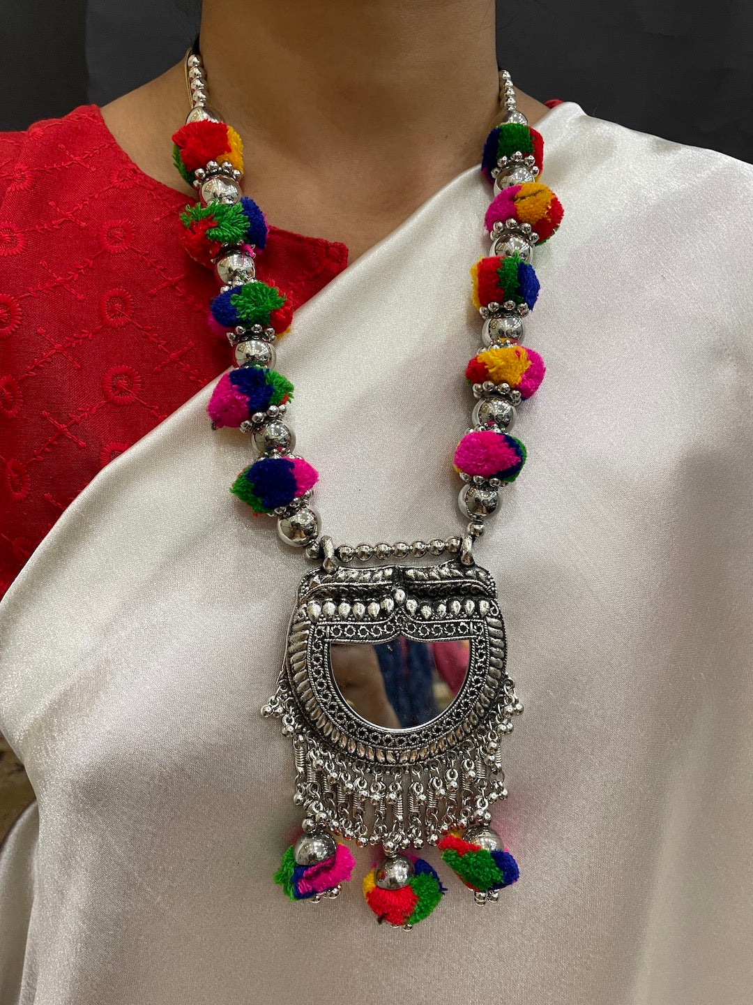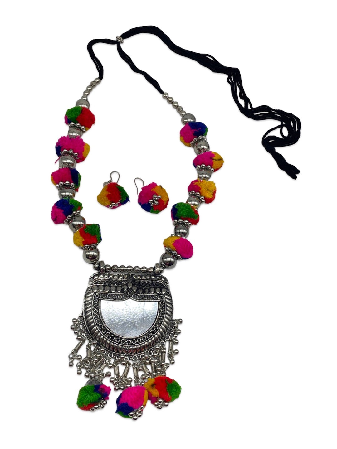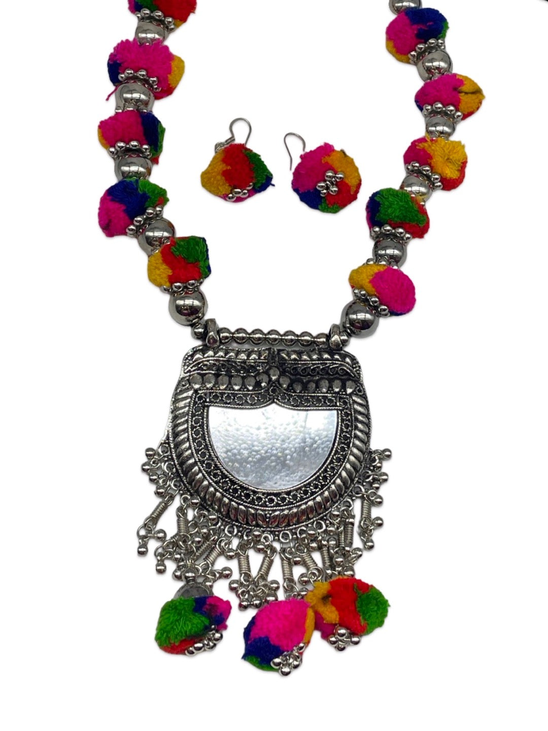 Silver Necklace Set Pom Pom Design