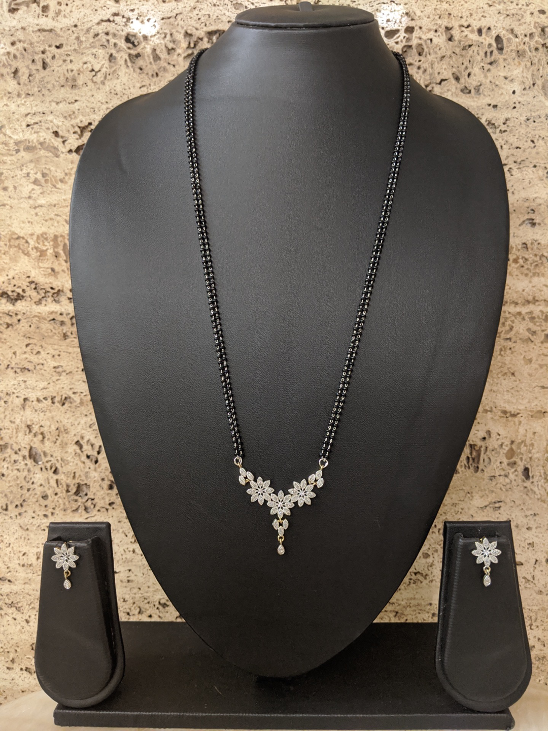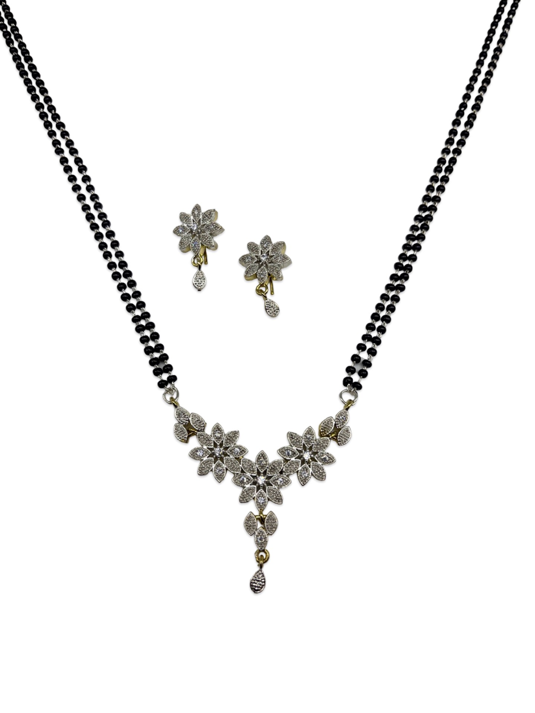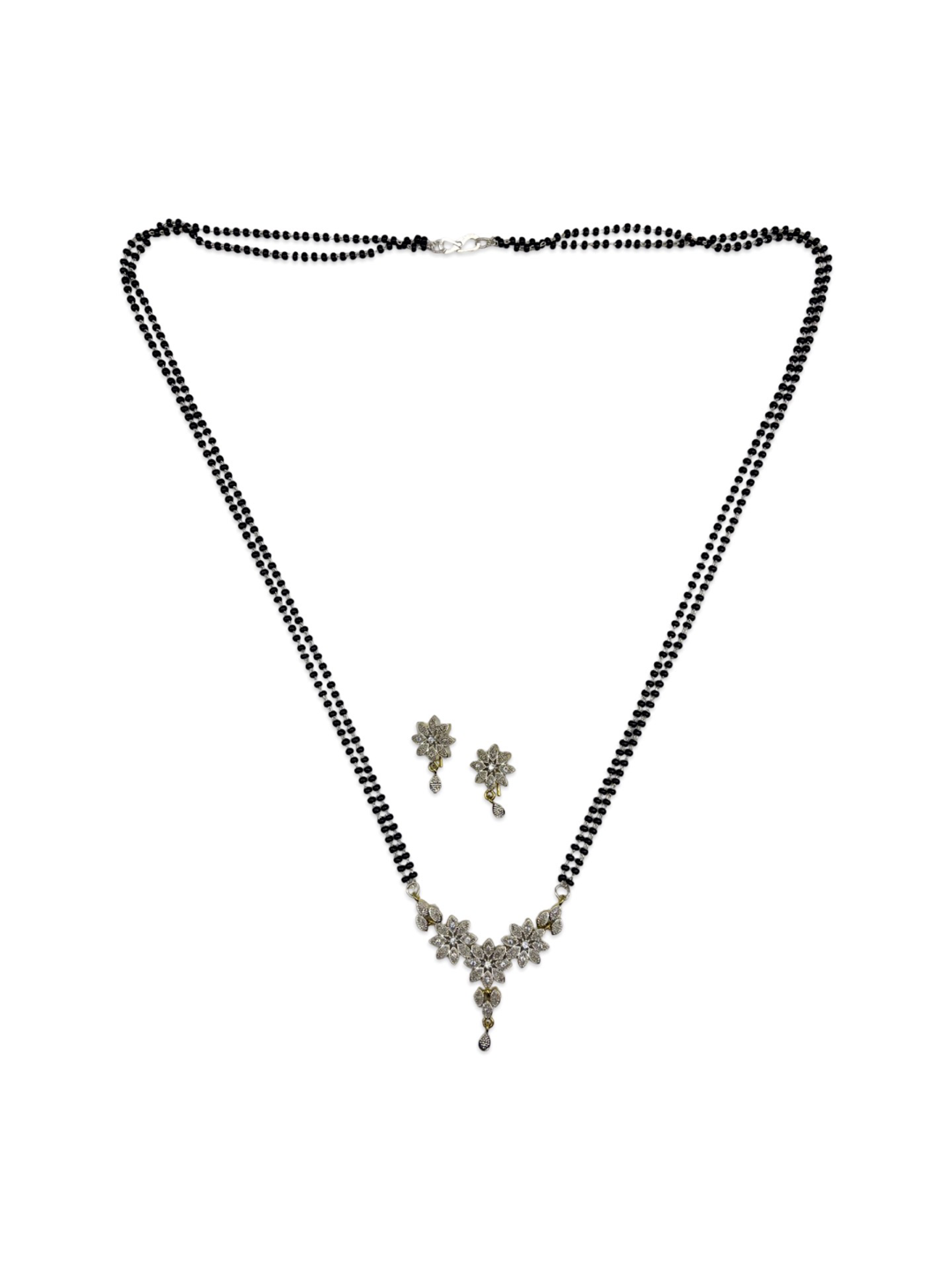 Silver Plated American Diamond Long Mangalsutra Set With Earrings