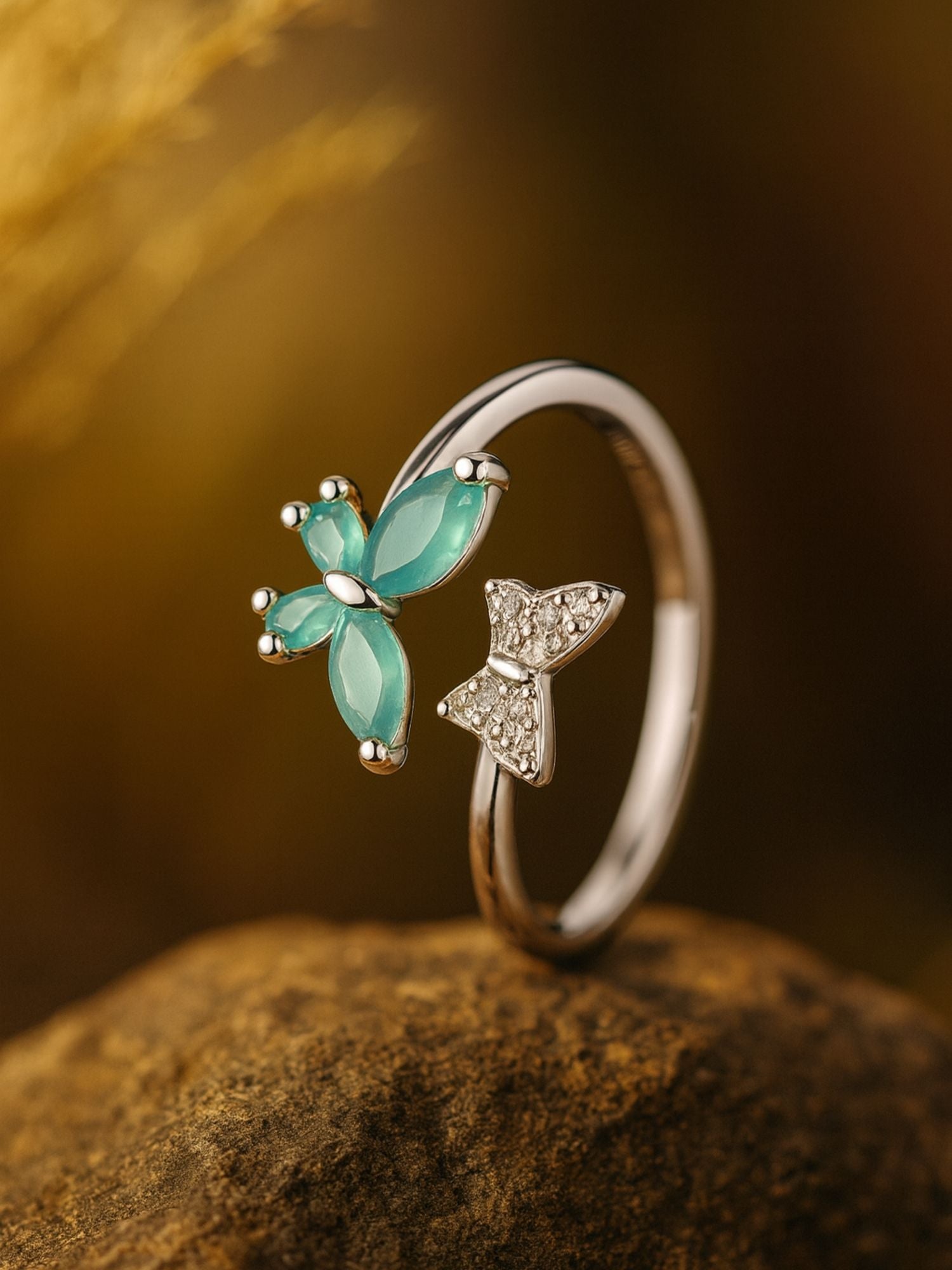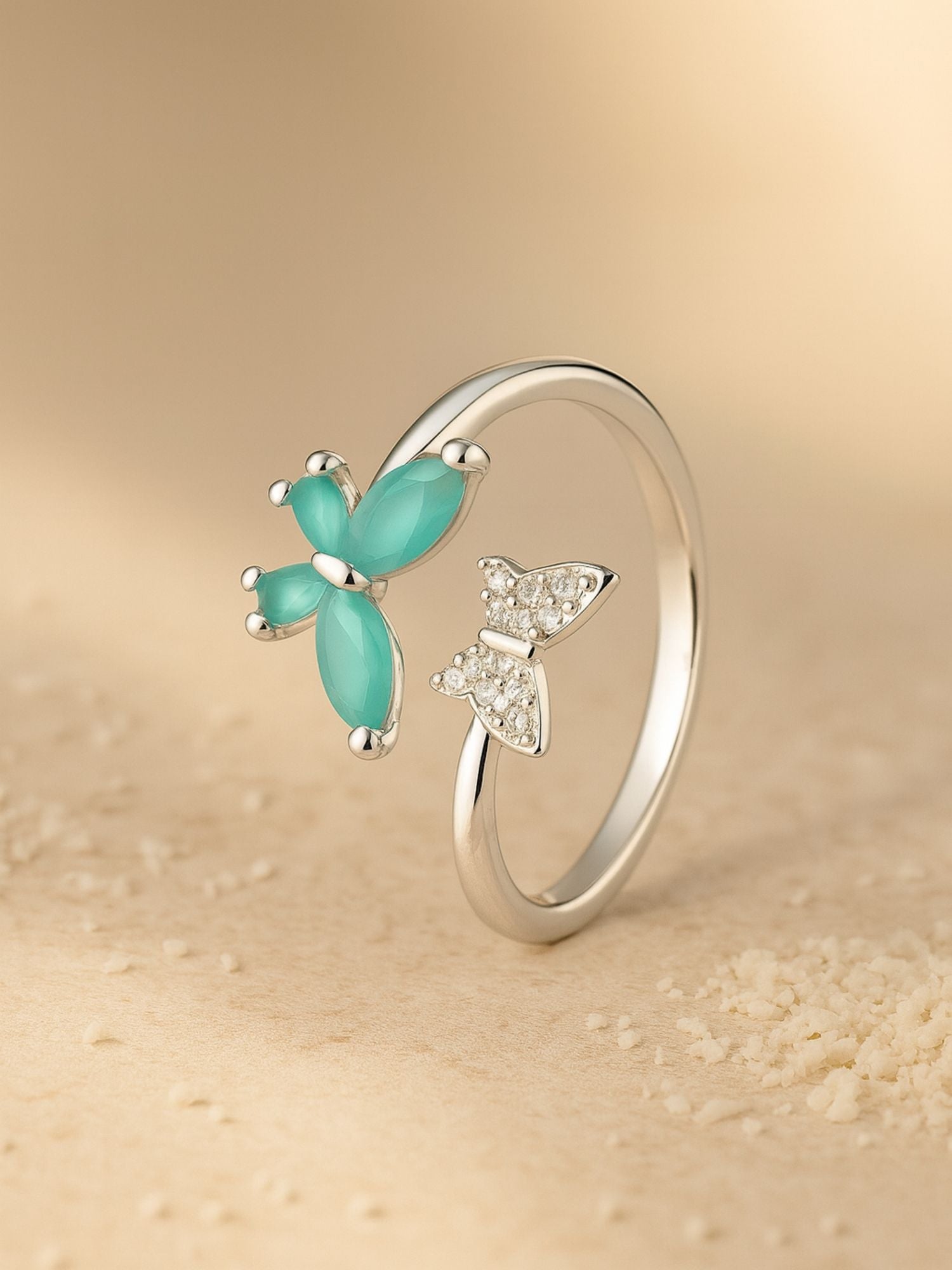 Silver-Plated Pista Butterfly Finger Ring