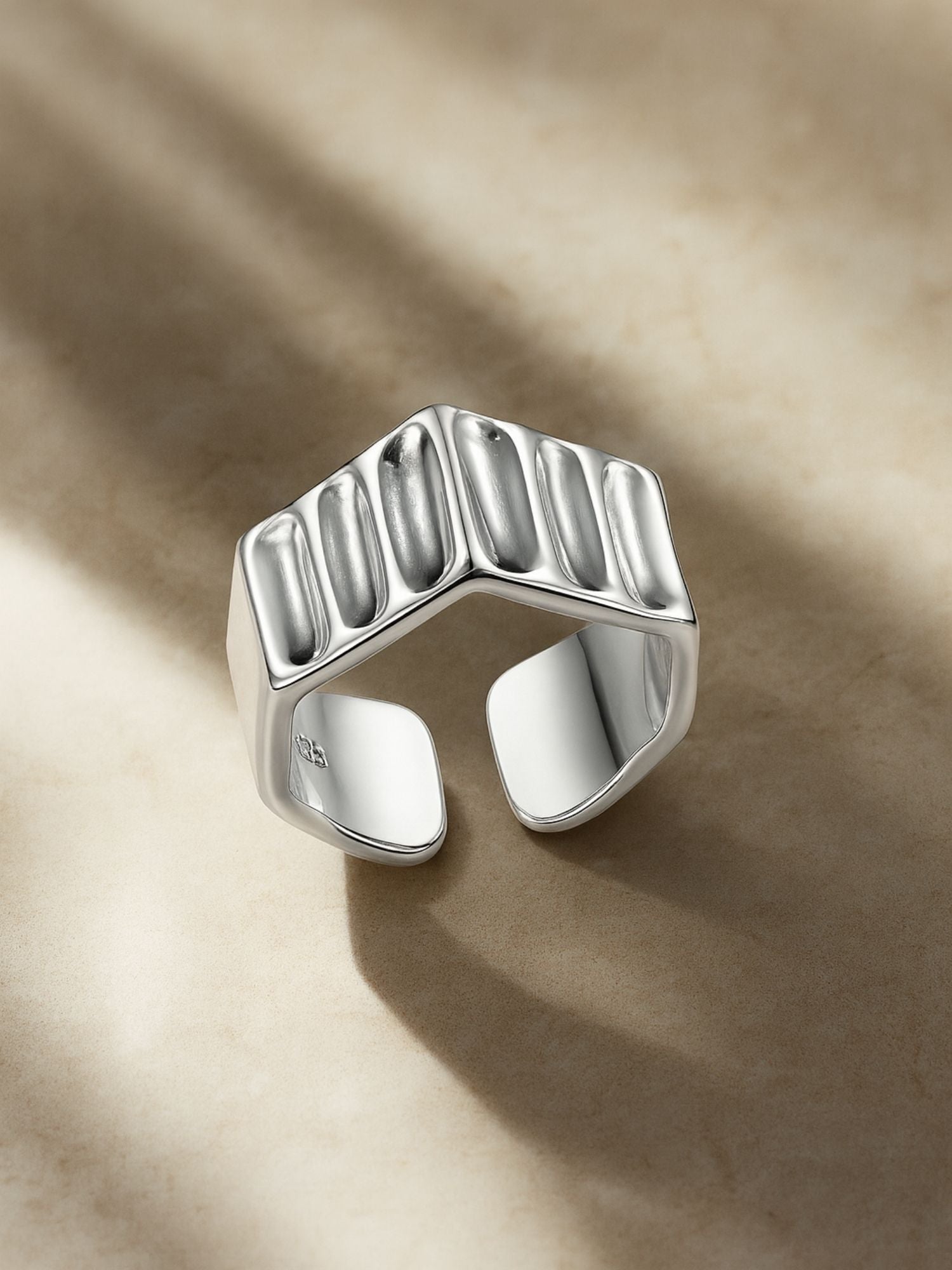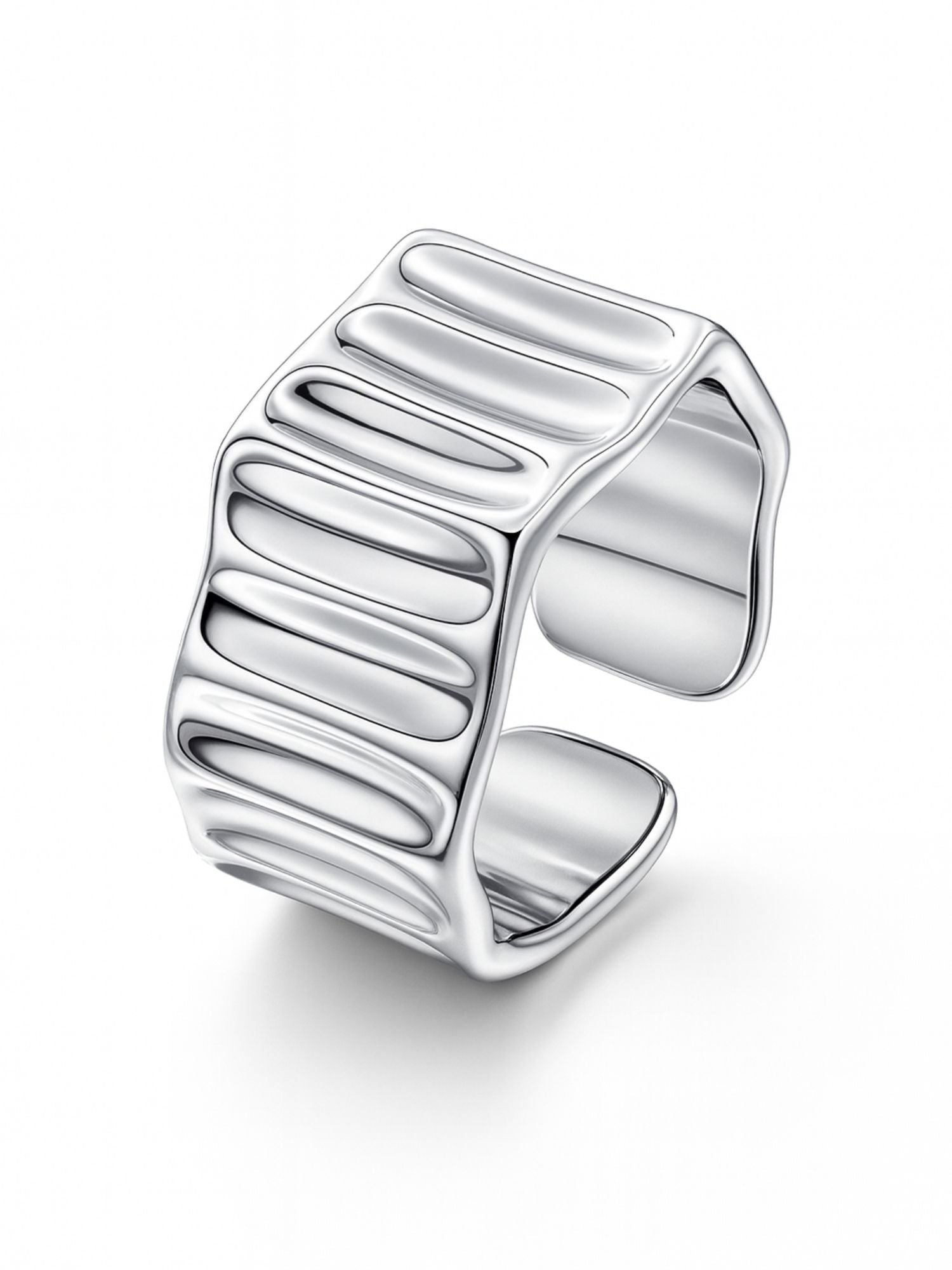 Silver-Plated Ripple Geometric Sterling Finger Ring