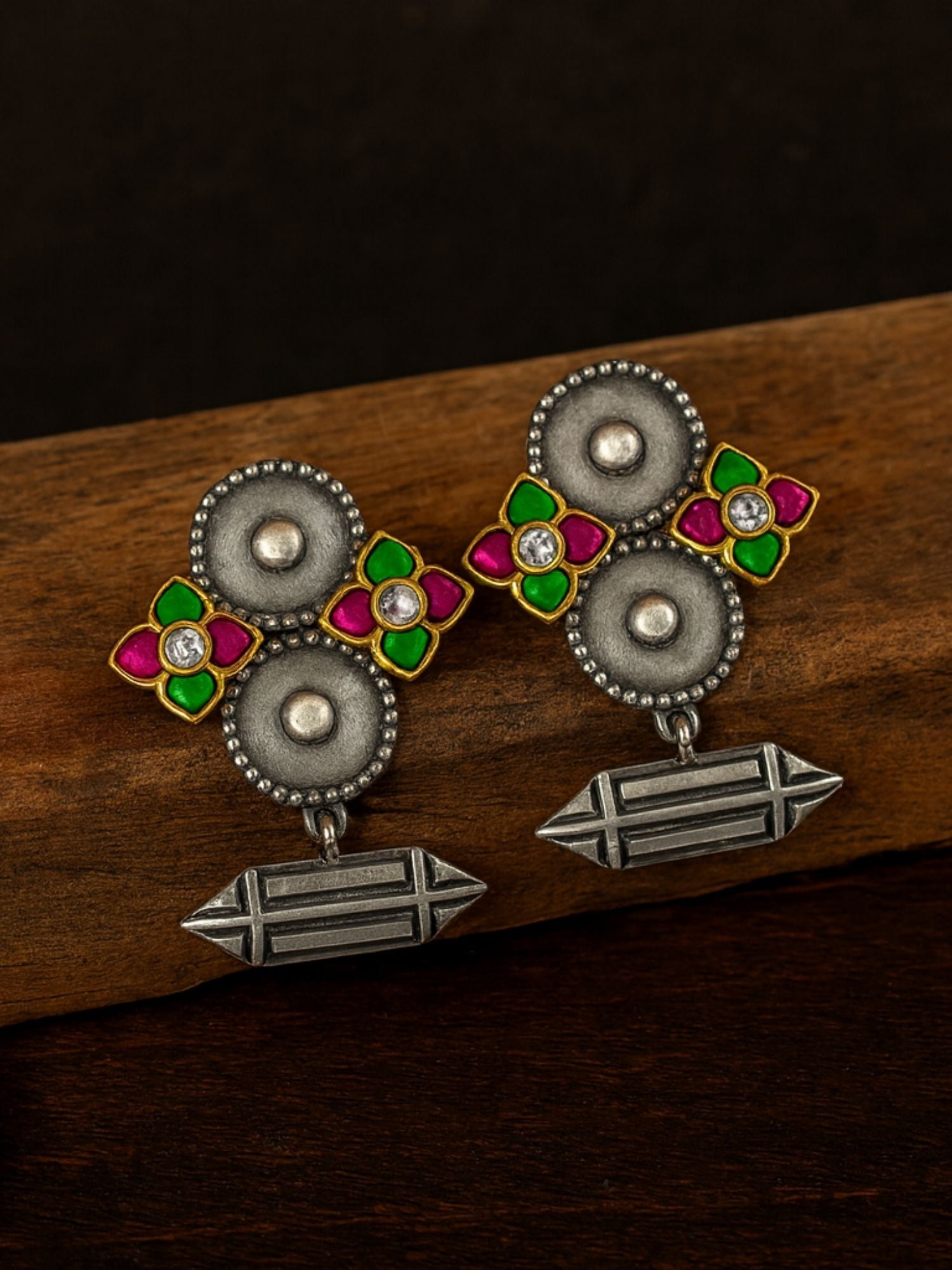 Stud Afghani Jhumka Earrings Tribal Designs With Enamel
